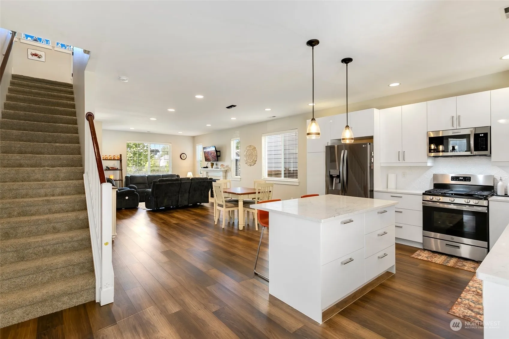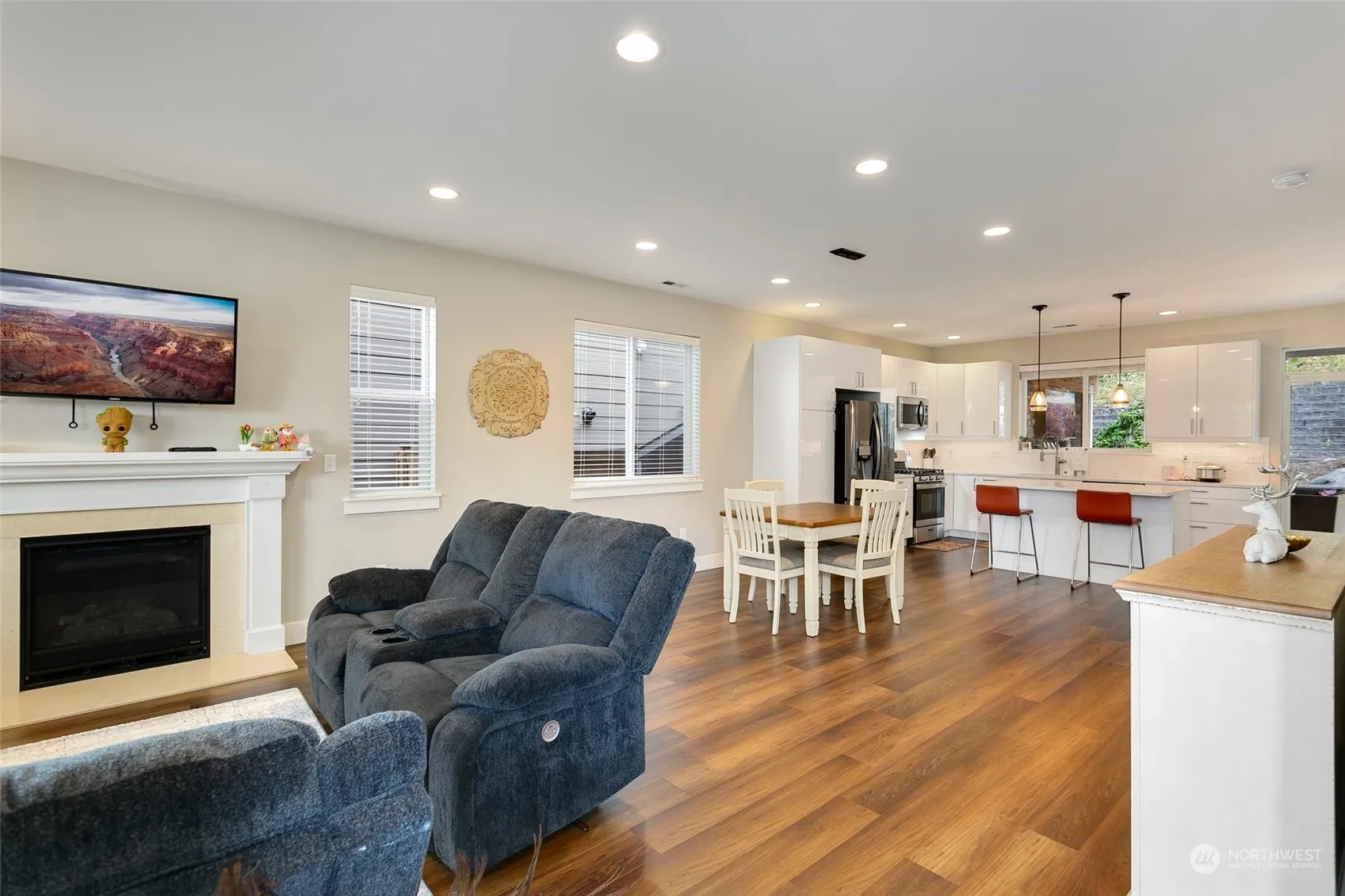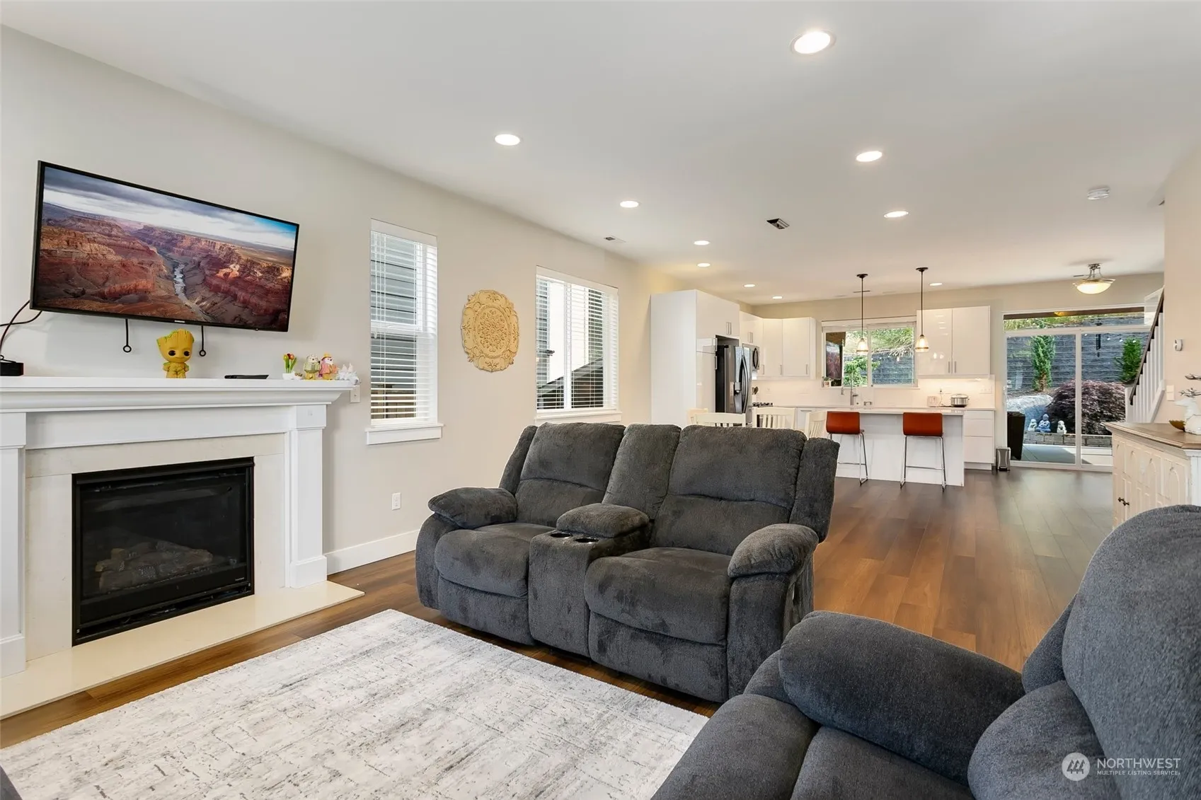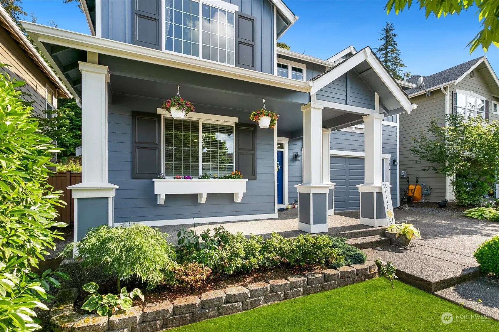 A gem in Snoqualmie Ridge! The large covered front porch welcomes you to beautiful hardwood floors & a comfortable flow throughout the open-concept main floor. The 2023 updated chefs kitchen w/quartz countertops & stainless steel appliances opens to an expansive ultimate outdoor living space w/gas fireplace, built-in infrared heat & bar fridge. Backyard is flat, fenced & facing a greenbelt for private entertaining. Come home to the perfect custom mud room adjacent to the half bathroom from the 2 car garage. 2nd floor offers flexible landing space perfect for a homework station & primary suite featuring a peaceful retreat with a walk-in closet & 5-piece bath. A/C, parks & trails plus a built in lovely community, what more could you ask for?