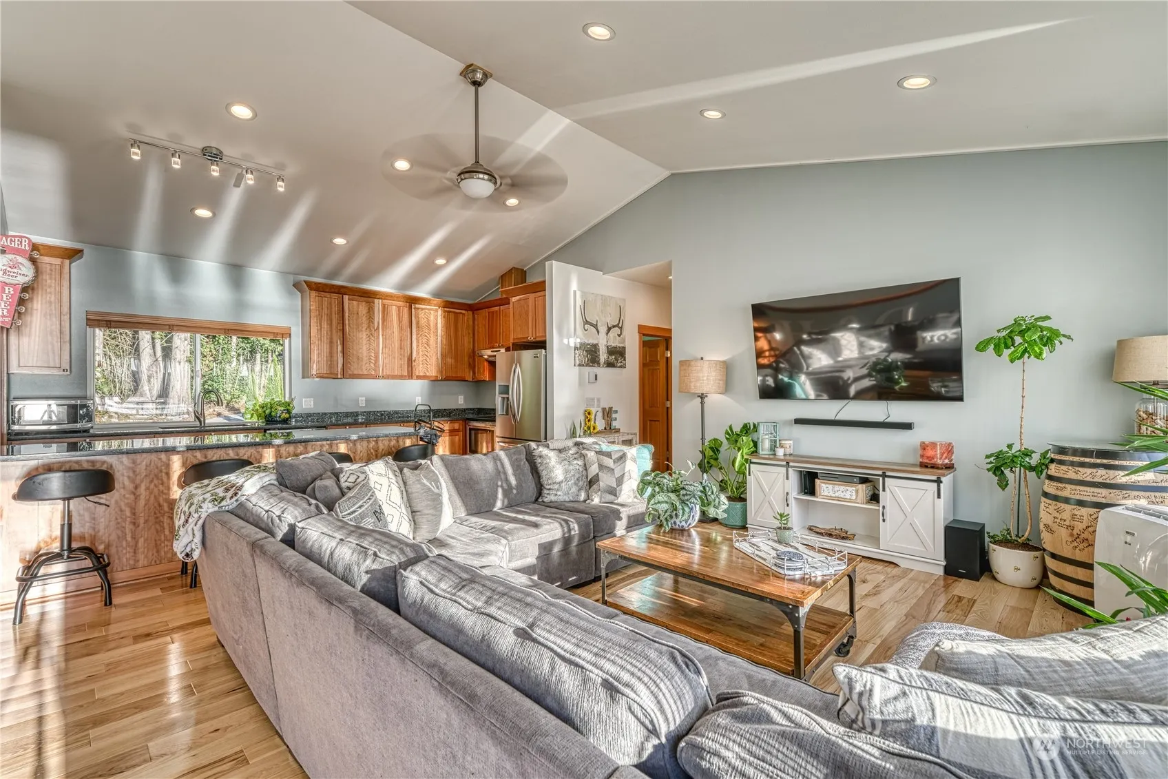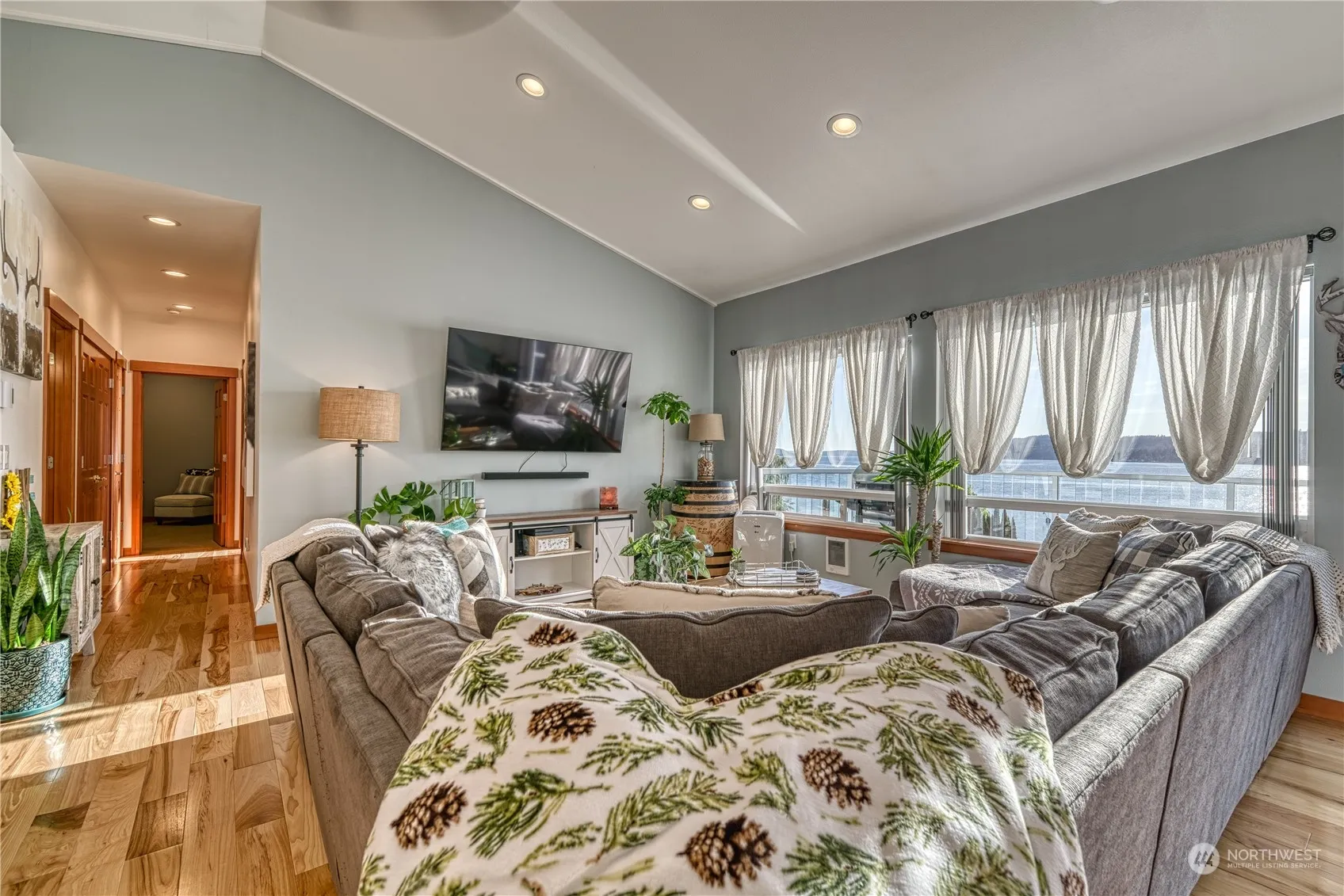 Come discover this rare opportunity to begin life anew at this beach front paradise offering SW Exposure and No Bank waterfront. The possibilities here will set your imagination into over drive. This charming 2 bed/2.5 bath living space is accentuated by over 1,900 square feet of shop/garage space that includes covered and enclosed RV Parking. You decide if you want to keep this wonderful package in its current arrangement or turn it into part of your mega beach estate by expanding or building a separate house. Other options include finishing out the lower space for one level living or creating a charming Nightly Rental offering. Either way, you can’t go wrong in a setting like this. Sunsets and sea breezes are waiting for you.