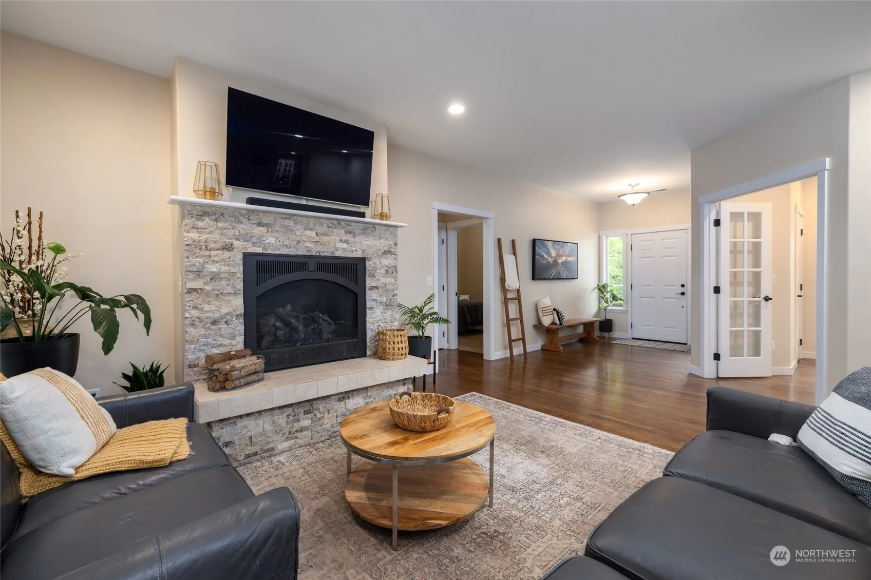 With nearly 2900/sf, this spacious home offers 3 beds/2.5 baths, office, plus huge bonus room above garage, on a level .60 acre lot w/RV parking & garden space. Country living close to town. Hardwood floors, open living area w/stylish kitchen. Light-filled office (w/closet, could be a 4th bedroom). French doors lead to covered back deck (plumbed for gas), & private, level yard. Main floor primary suite w/walk-in closet, 5pc tile & granite bath w/heated floor. Guest wing on the other side of the house w/2 beds, full bath. The bonus room upstairs offers a ton of extra finished space, plus a 1/2 bath & storage room – enough to create 2 living areas or extra bedrooms. Garden shed. Attached garage w/insulated storage room.