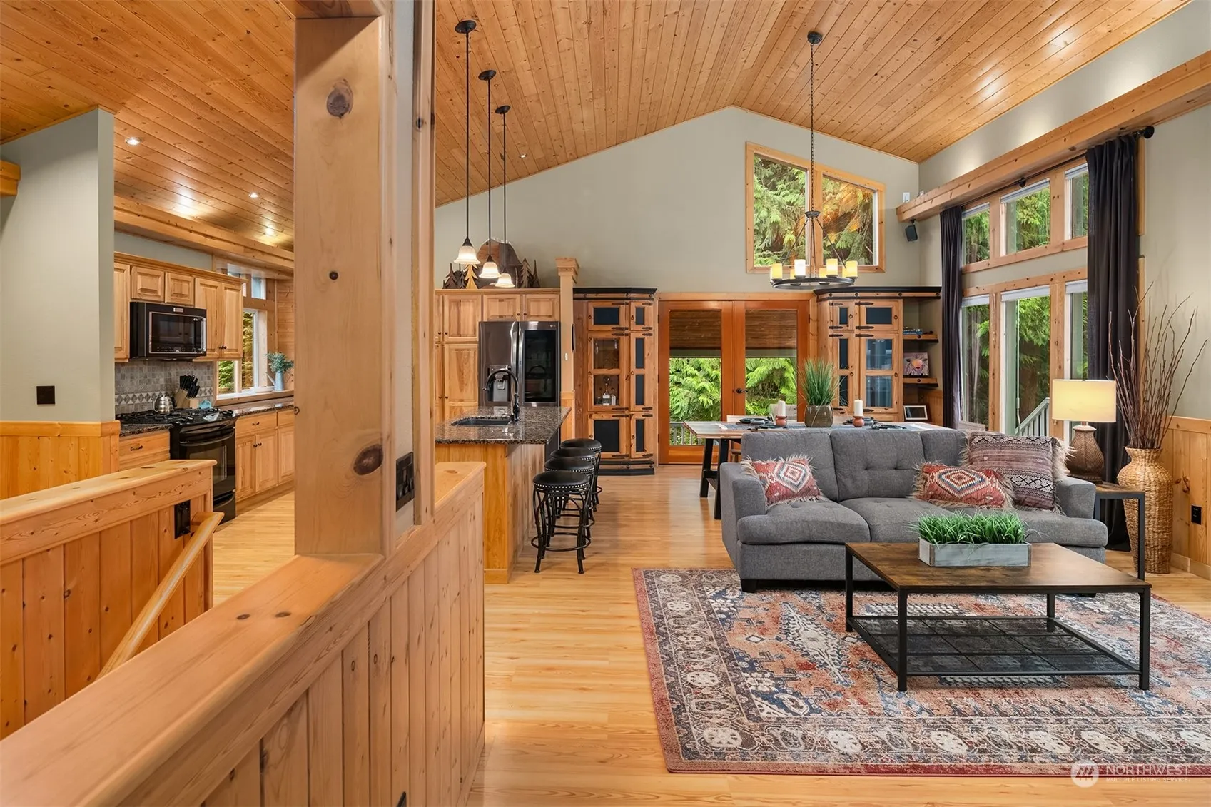 Northwest Lodge-Style home nestled on 1.9 scenic acres overlooking the Snoqualmie Valley with dramatic Mt Rainier views! This 2900SF beauty offers a Great-Room floorplan featuring vaulted wood-clad ceilings, wainscoting, river rock hearth & expansive windows to enjoy the scenic surroundings. Main floor: Great room, 3 BR, 1.75 BA, sitting area and mud room/laundry. The lower level is also open concept plan with TV viewing alcove, kitchenette, rec room, sitting area, office work-station & extra finished room. So many outdoor activities here with covered patio, deck, sport court (Pickle Ball anyone?), huge greenhouse w/gardens, pasture with loafing shed and separate driveway entrance for RV parking or large truck parking! Only minutes to town!