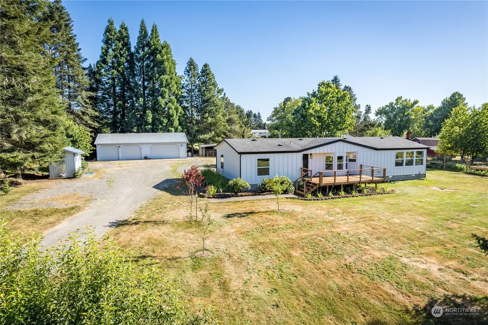 You don’t want to miss this opportunity! Updated 1710 sqft home 3 bed 2 bath on 1.5 usable acres! This property has so much to offer. Home features living room with fireplace, open bright kitchen w/ butcher block countertops, dining area and a bright living space. Updated primary with large bathroom, 2 additional good sized rooms and a full bath. Outside there are so many possibilities. Fully fenced property. One 4 car shop with power, second oversized 1 car shop, pole barn for your critters, rv parking with outlet, large fenced garden area, greenhouse, lots of fruit trees and so much more!