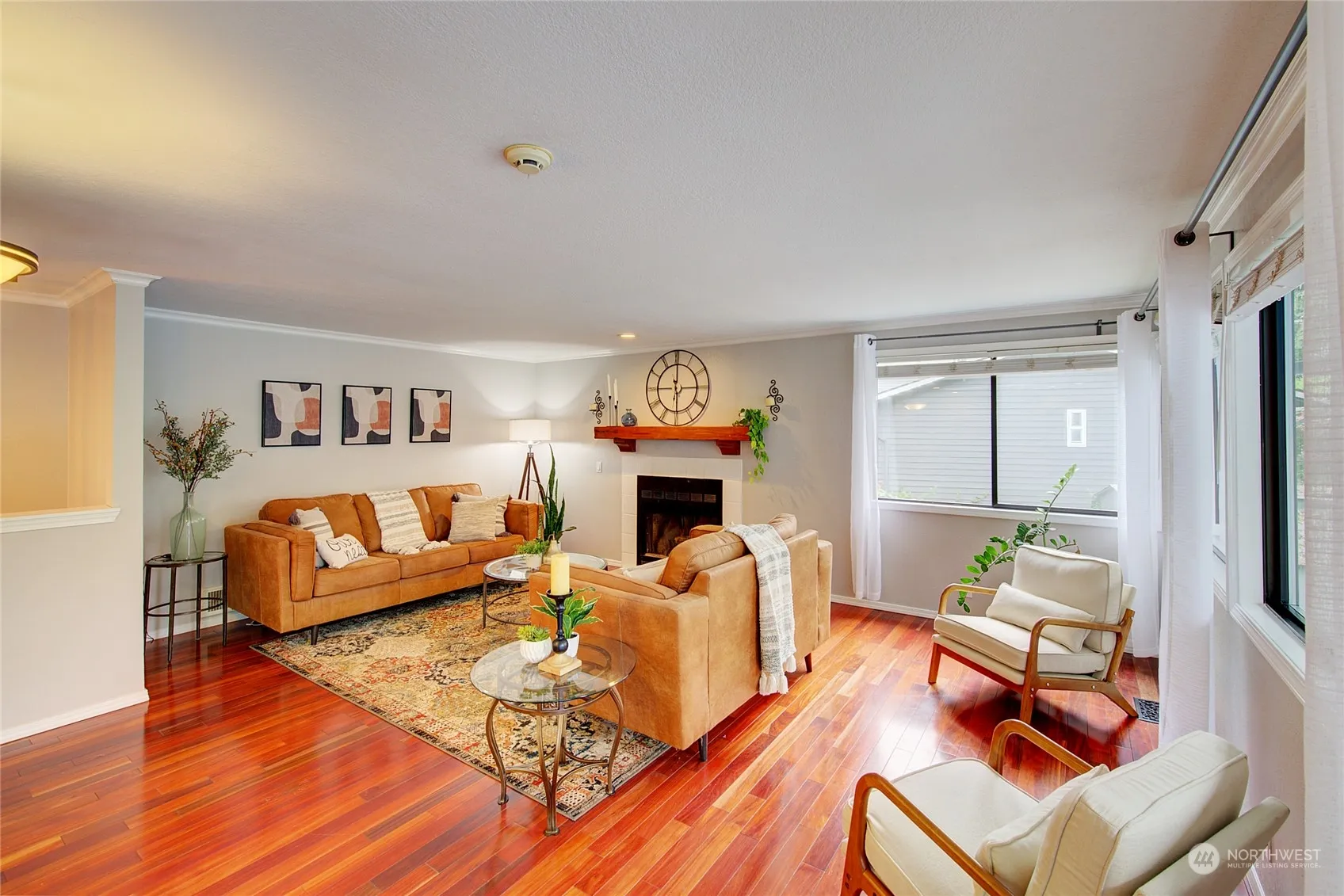 MILL CREEK ENTERTAINING DREAM! Hard to find 1-story w/daylight basement offers main floor living w/ spacious basement for entertaining or possible ADU! Enjoy main floor open concept kitchen, living room dining area w/wood burning FIREPLACE, HARDWOOD floors & access to a LARGE UPPER DECK for additional entertainment space! Furnished w/ a natural gas fire pit, eating & cooking area, perfect for gatherings. The deck faces South and overlooks a community park. A spacious primary bedroom is located on the main floor w/ attached NEWLY REMODELED BATHROOM! Lower-level boast NEW CARPET & PAINT w/ large family room, adjacent bonus room for possible gym, office or game room! Don’t miss the MULTI LEVELED PATIOS w/ 2nd natural gas fire pit! A MUST SEE!