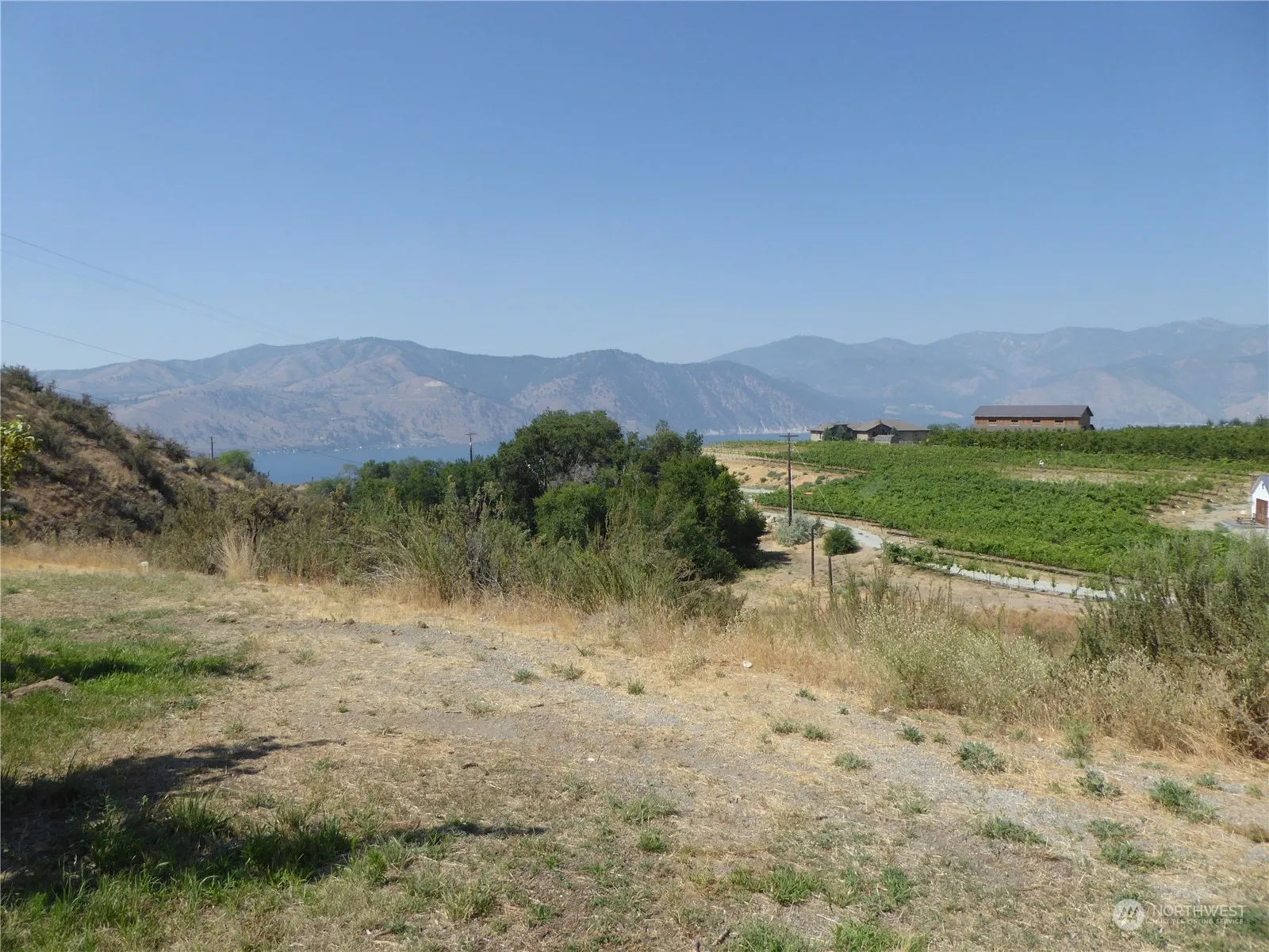 Fantastic 7.38 acre Winesap Ridge building site. Power, domestic water via a shared well in place. There is also 3 acres of LCRD irrigation water for agricultural activities and landscaping. Currently the level portion of the parcel is planted Honeycrisp orchard on a V trellis. Excellent building sites for either a level building site or a huge Lake Chelan view.