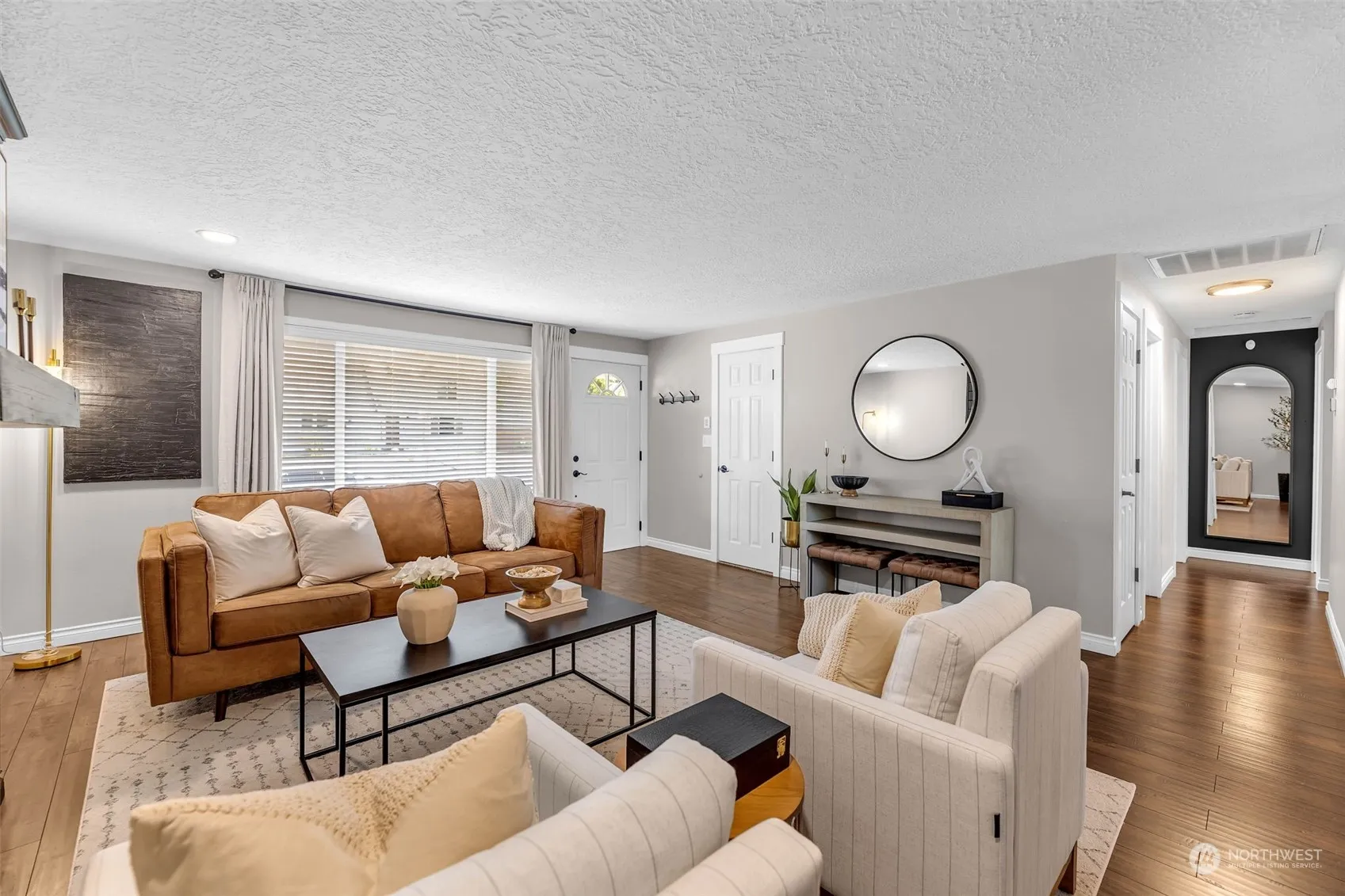 Updated ONE-level 3 bedrooms + OFFICE home with an open layout. Enjoy the second living room with a modern shiplap fireplace. The spacious kitchen offers granite countertops, stainless steel appliances, an eating area, and a walk-in pantry. The property includes a 2-car garage, attic storage, a large patio, a covered front deck, and comes with a washer & dryer! Peaceful water features with fish, great curve appeal, and well-maintained landscaping. Located in a highly desirable neighborhood, this move-in ready home is close to freeway access, Riverside Park, and minutes from Longview shopping. A must-see, call to schedule your showing!