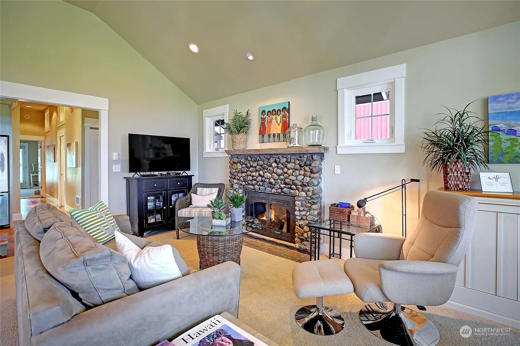 Your Island retreat awaits! Enchanting furnished waterfront cutie in highly desirable Juniper Beach. Original 1932 cabin has been completely remodeled to Pottery Barn perfection. Spacious kitchen, living room with vaulted ceilings, primary bedroom, guest bedroom with loft and a Jack & Jill bath. Sunny South facing covered deck expands your living space in all seasons. Impeccably landscaped yard with container gardens, beautiful flowers and room to play. Relax around the fire-pit overlooking your own private beach with epic views of the Olympics/Cascade Mountains & all day sun and fun. Mooring buoy for your toys. Soak in the sunrise & sunset, enjoy water skiing, jet skiing, crabbing, swimming and beach walks. No ferries to deal with!