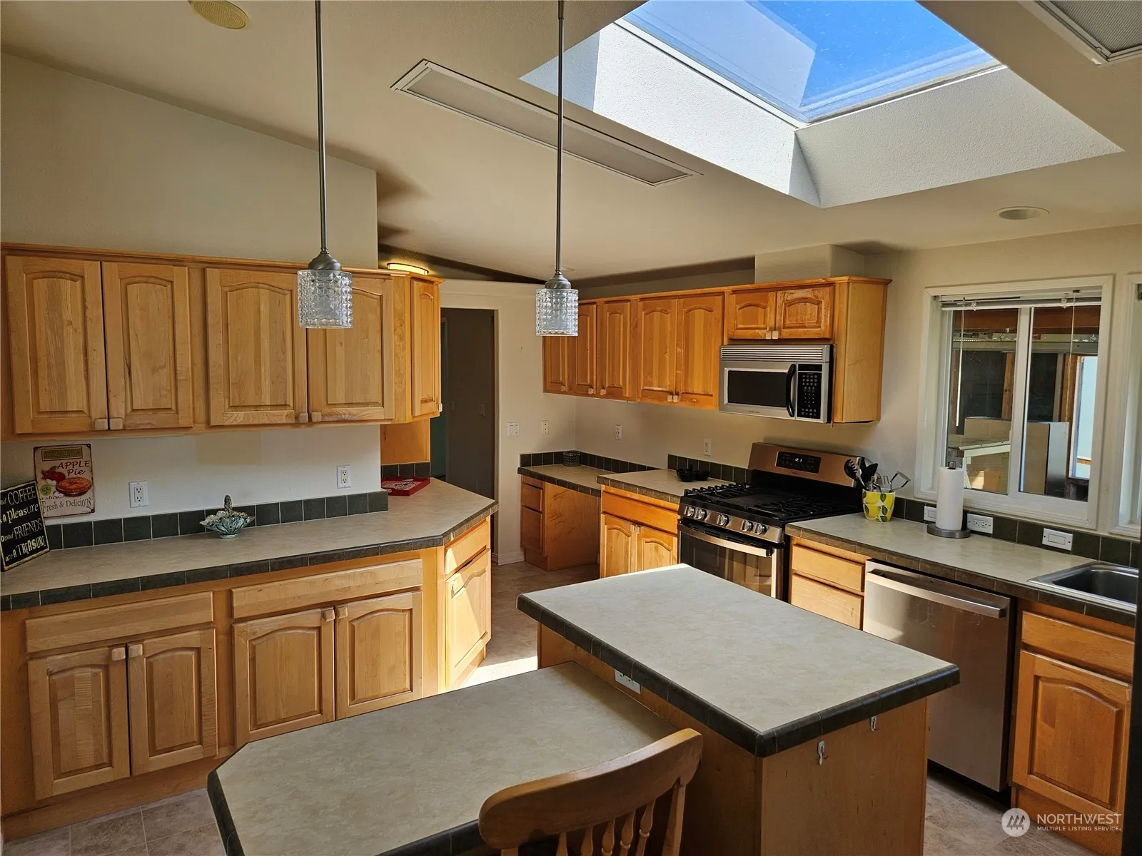 Spacious(1714 S.F.) and updated triple wide manufactured home in a very peaceful and quiet 55+ park. 2 bed 2 bath open floor plan with plenty of windows and cathedral ceilings allow for abundant natural light. Large kitchen with loads of storage space and featuring stainless steel appliances. Formal living and dining areas, office or craft room, 2nd bed includes a murphy bed and access to private bath for guests. Primary bedroom has huge walk in closet, oversize bath with step in shower and room for a king bed or additional sitting area. Work shop, small enclosed garage. Raised garden area. Plenty of off street parking.