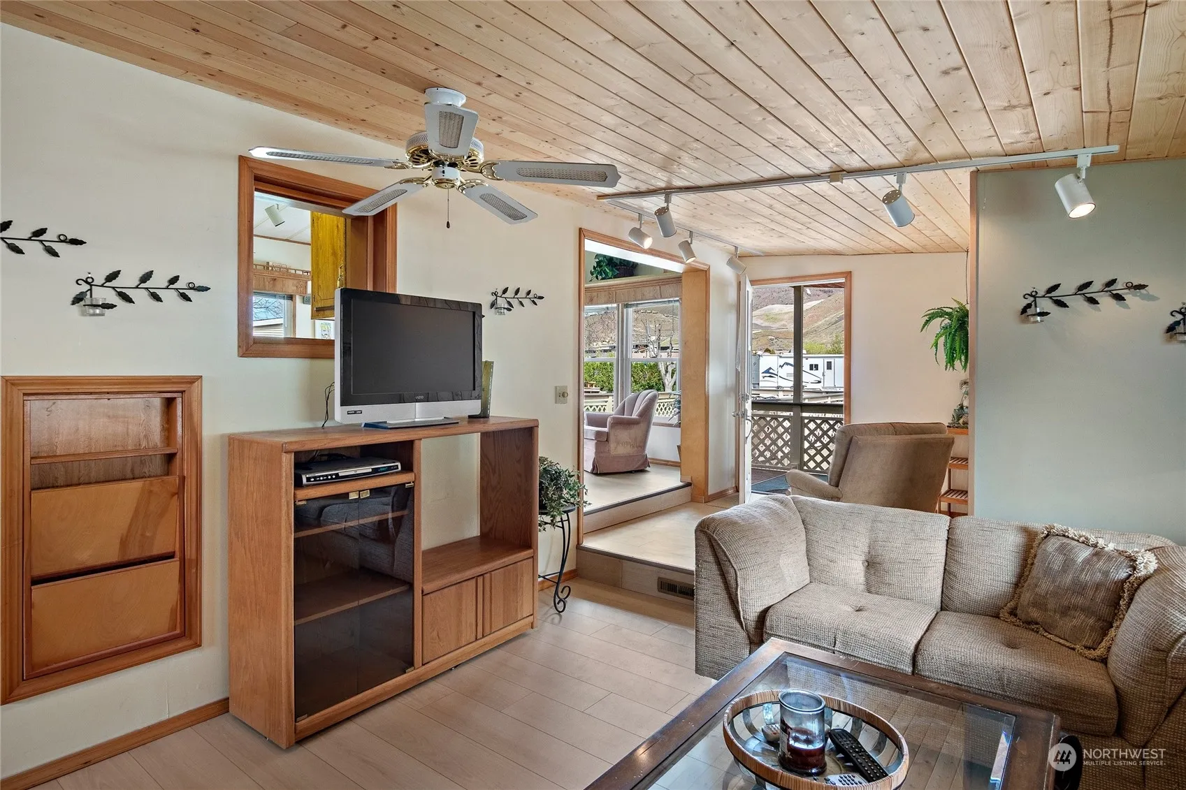 Sought after Crescent Bar North Park view property on quiet dead end street with view of the majestic basalt cliffs, just steps from the commnity pool with bathhouse and showers (for guest overflow!). 901 ft, fully furnished 2 bedroom, 1 bath, with open dining/kitchen area and living area with knotted pine accent walls. Sq footage includes outdoor Arizona kitchen/bar with new hot water tank. Home boasts ceiling fans, skylight, double paned windows, new roof, laundry in shed, and large deck for outdoor entertaining. Crescent Bar Resort community features year around recreation with boat marina with 2 boat launches, golf course, 2 restaurants and a new Beamont Cellars wine tasting bar with a music venue, river walking trail and much more!