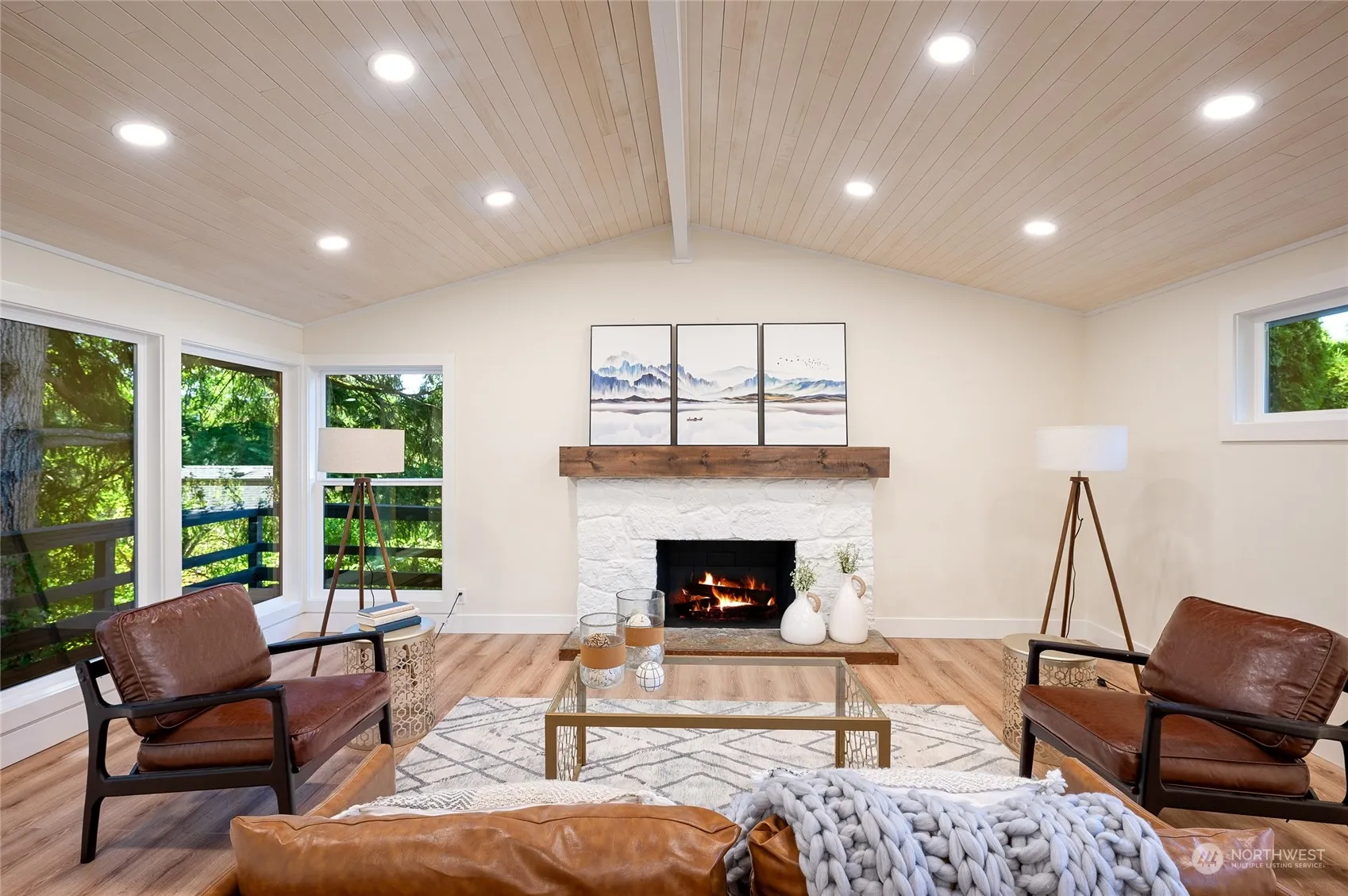 Welcome Home to this updated, light and bright treasure on a quiet street with very short walk to Lake Forest Park Elementary. This home has deeded access to LFP Civic Club w/beach, boat launch, dock, clubhouse, special events & more. Great room w/vaulted ceiling & FP. Huge walk-in pantry/extra kit space. Double ovens, new fridge w/ice+water, Bosch DW. Fantastic entertaining deck overlooks big backyard. Primary w/en-suite, walk-in closet & beautiful gas FP. Huge lower rec room opens to BY. Office w/bonus space & separate entrance, could be fifth bedroom. Downstairs also has bed/bath w/walk-in, big utility room. Central AC! Easy access to I-5, light rail, Kirkland & Eastside commutes. Close-in shopping/dining in LFP center. Tons of parking.