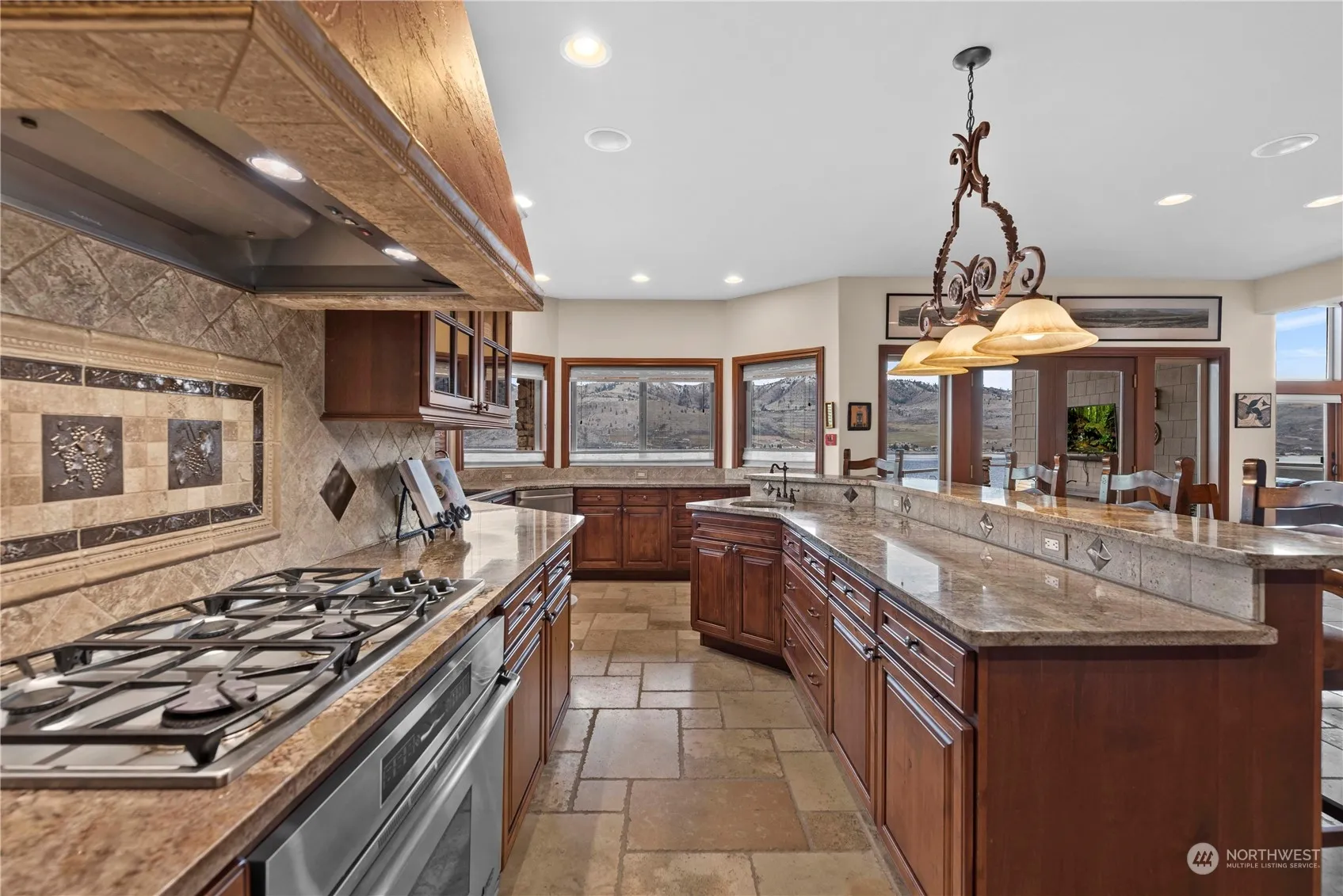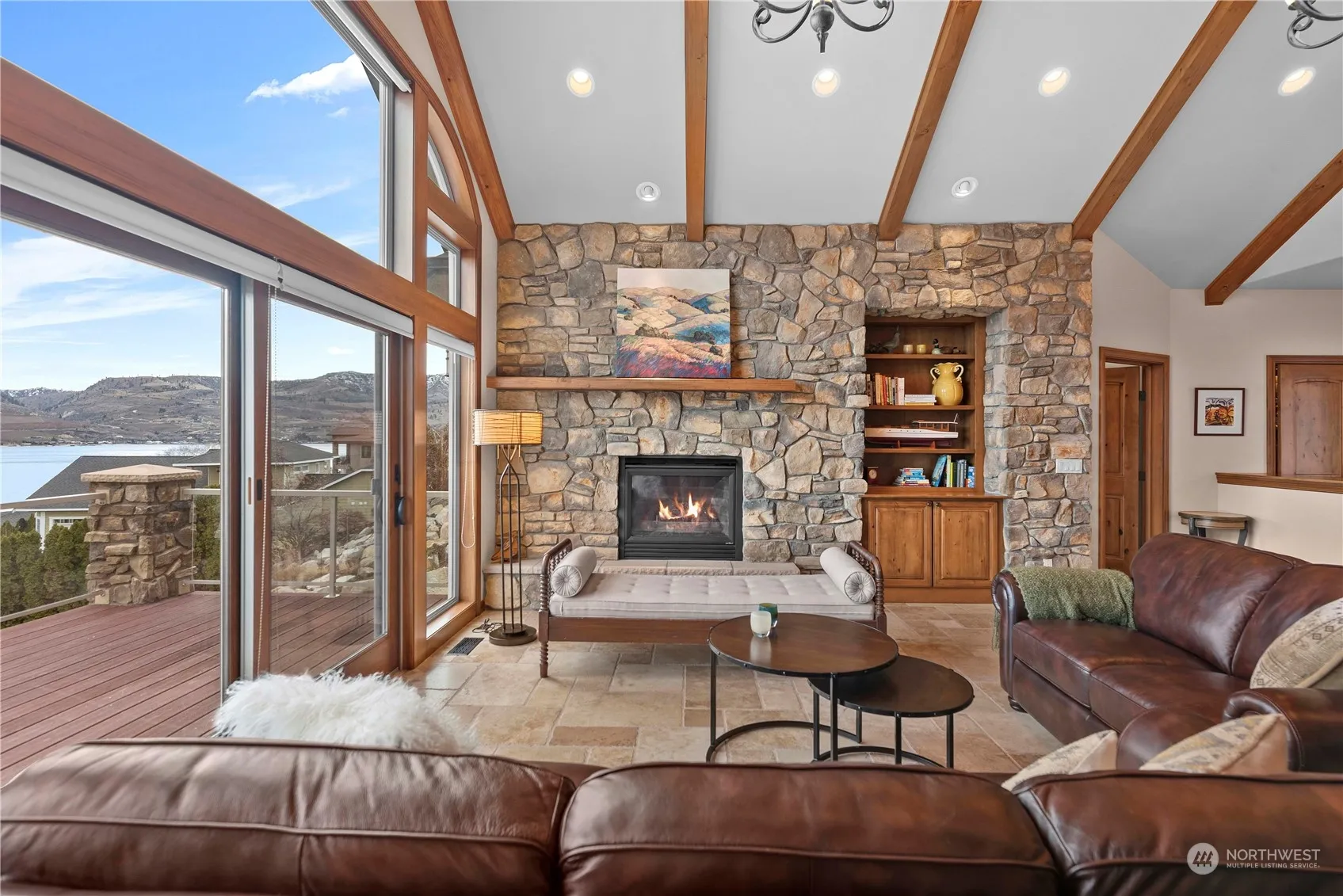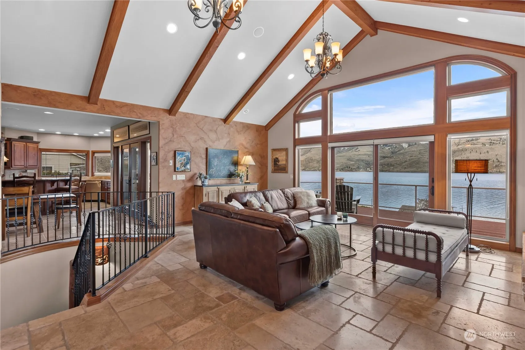 Discover serenity in this exquisite Tuscan-style home nestled on Crystal View Estate’s most secluded lot. Enjoy private ambiance thanks to a lush expansive greenbelt bordering the lot. Indulge in resort-style living via access to 2 pools, tennis/sports courts & a waterfront swimming dock. Luxury abounds w/high-end finishes including elegant travertine tile, huge kitchen with custom cabinets & top-of-the-line appliances. The large view windows frame breathtaking vistas of Lake Chelan & the mountains. Enjoy entertaining on the large covered deck as you watch all of the activity on the lake, or in the cool shade of the covered patio. Additional highlights include 2 bedroom suites on the lower level, ensuring comfort and privacy for all.