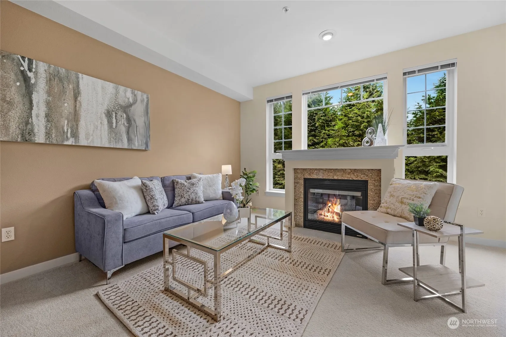 Welcome to the sought-after FIRST GREEN CONDOS located on Harbour Pointe GOLF COURSE! Nestled in the trees is this beautiful third floor condo featuring 1 Bdrm + DEN (use as 2nd bdrm/office/etc). SOARING 9ft ceilings with large windows bringing an abundance of natural light, spacious primary retreat w/walk-in closet all within a PRIVATE & SECURED building. Enjoy the outdoors from your personal covered balcony. Gas fireplace to stay warm & cozy during those winter months. All appliances stay incl. full-size washer & dryer. Add’l STORAGE unit & Community Room. Well-run HOA w/LOW dues. ELEVATOR services all floors & lower garage. Tucked away on a quiet cul-de-sac. Located near restaurants, Paine Field Airport, Boeing & Puget Sound.