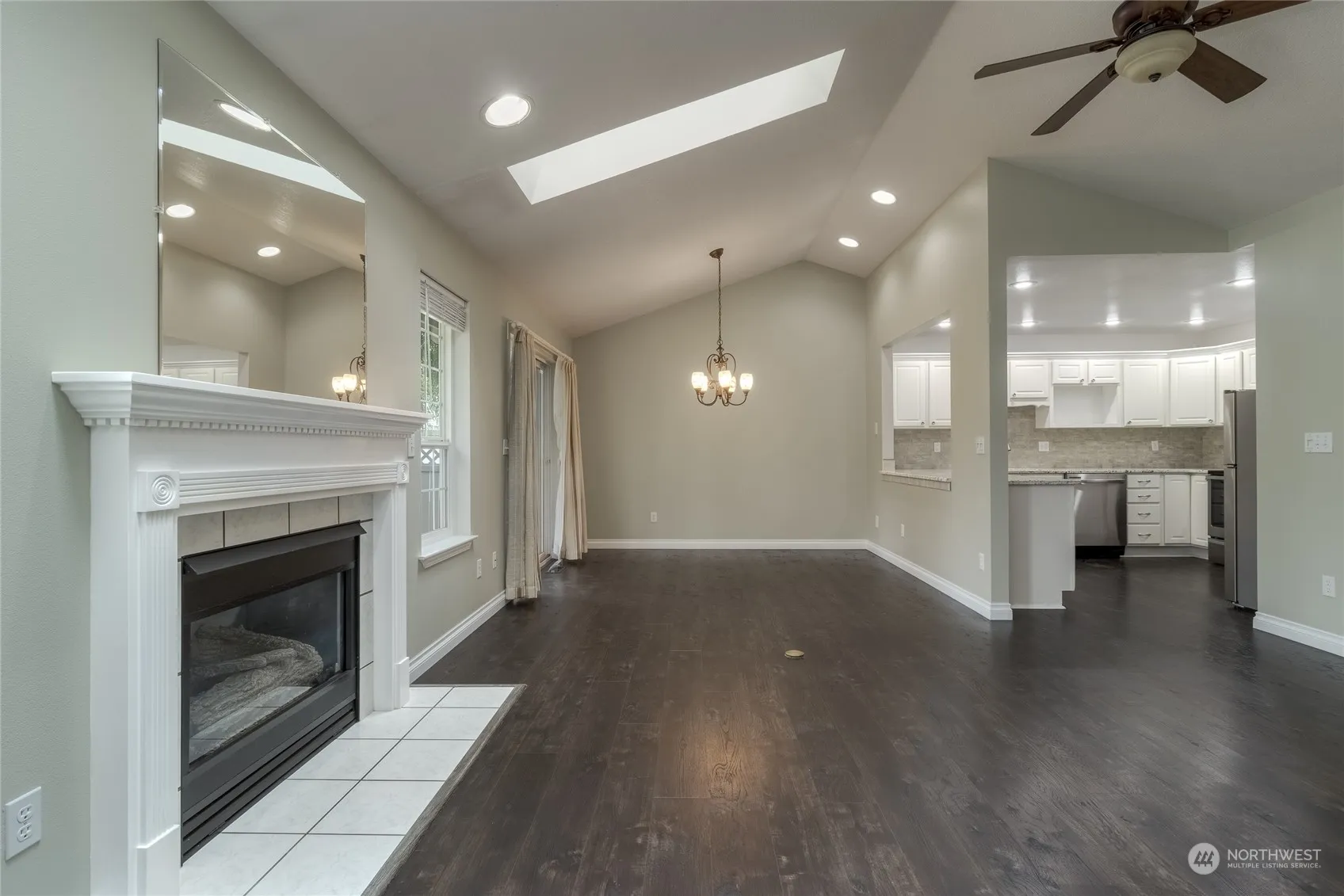 Easy carefree living awaits! This beautiful 2 bedroom condo features espresso laminate floors through the main level with a spacious great room. Vaulted ceilings, skylights, and gas fireplace set the stage for the main living area. Modern kitchen with stainless steel appliances, tile backsplash, quartz counters, and breakfast bar. The large primary bedroom is sure to impress with an attached en-suite bath and walk in closet. Enjoy quiet evenings in the private backyard complete with patio space for entertaining, underground sprinklers, and hot tub hook up.