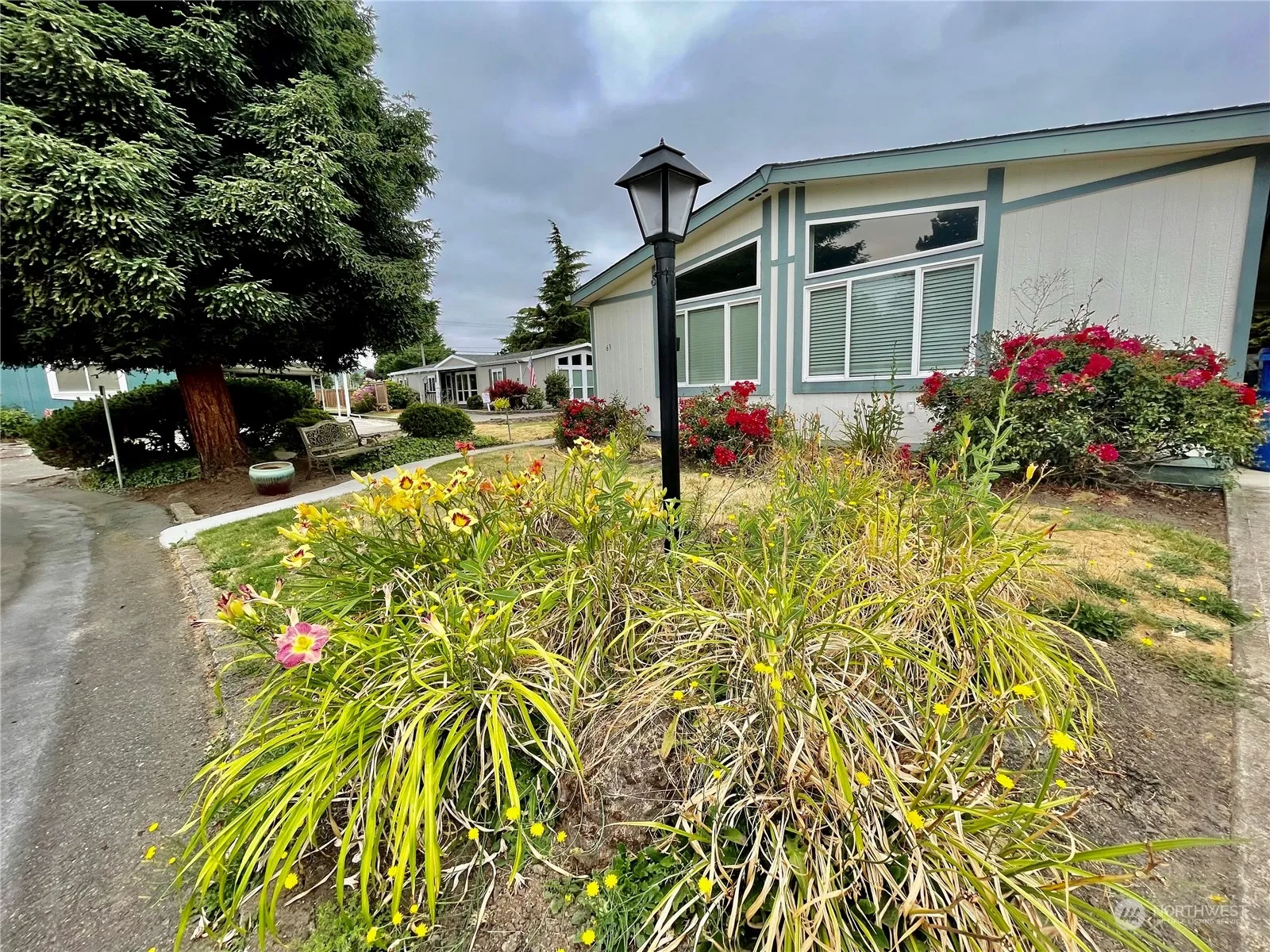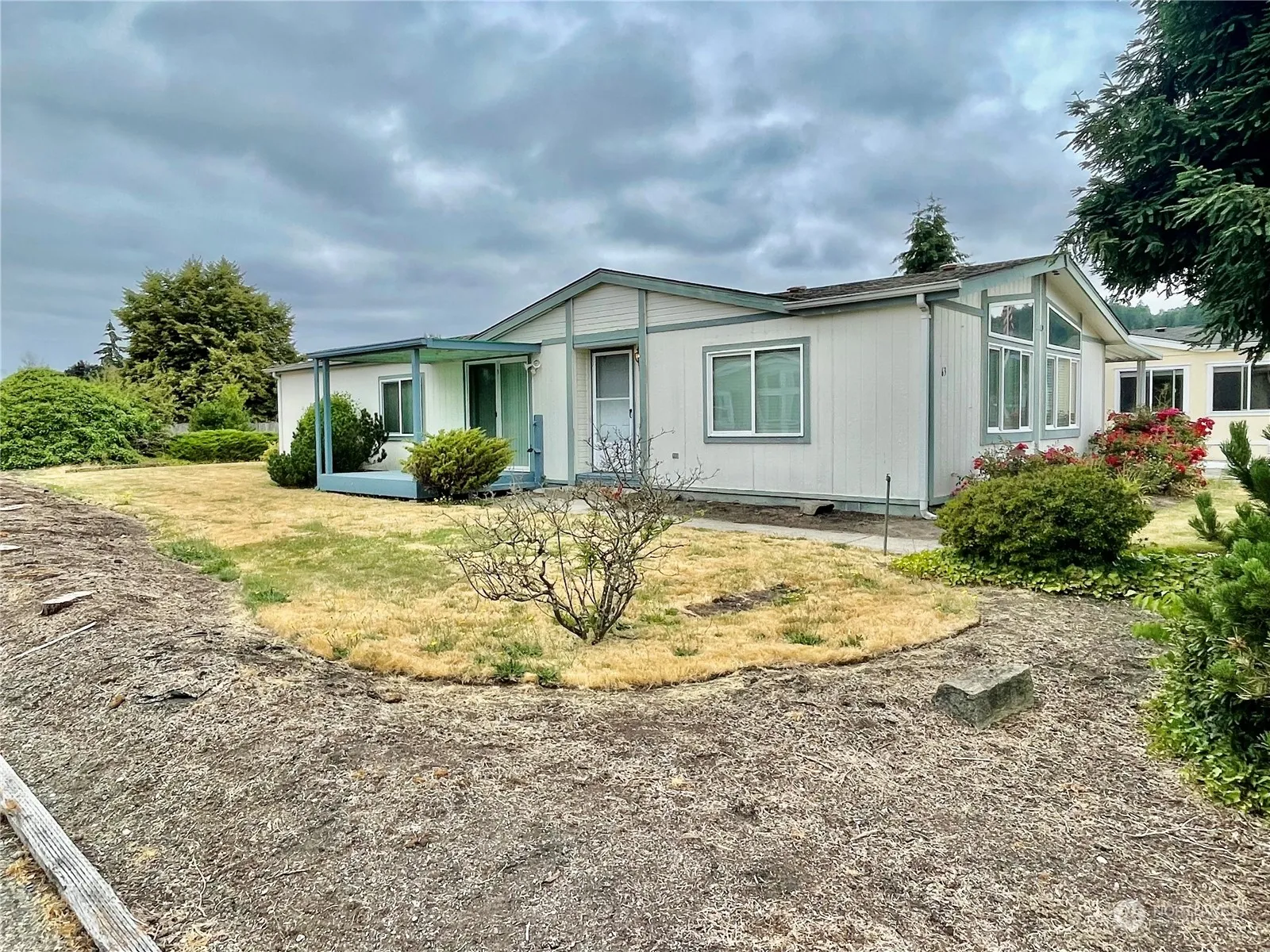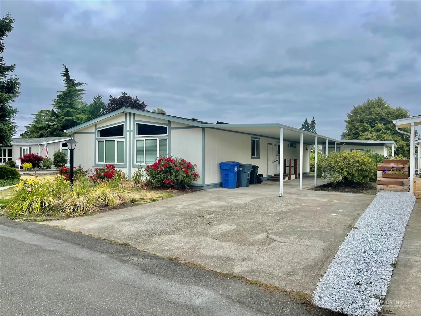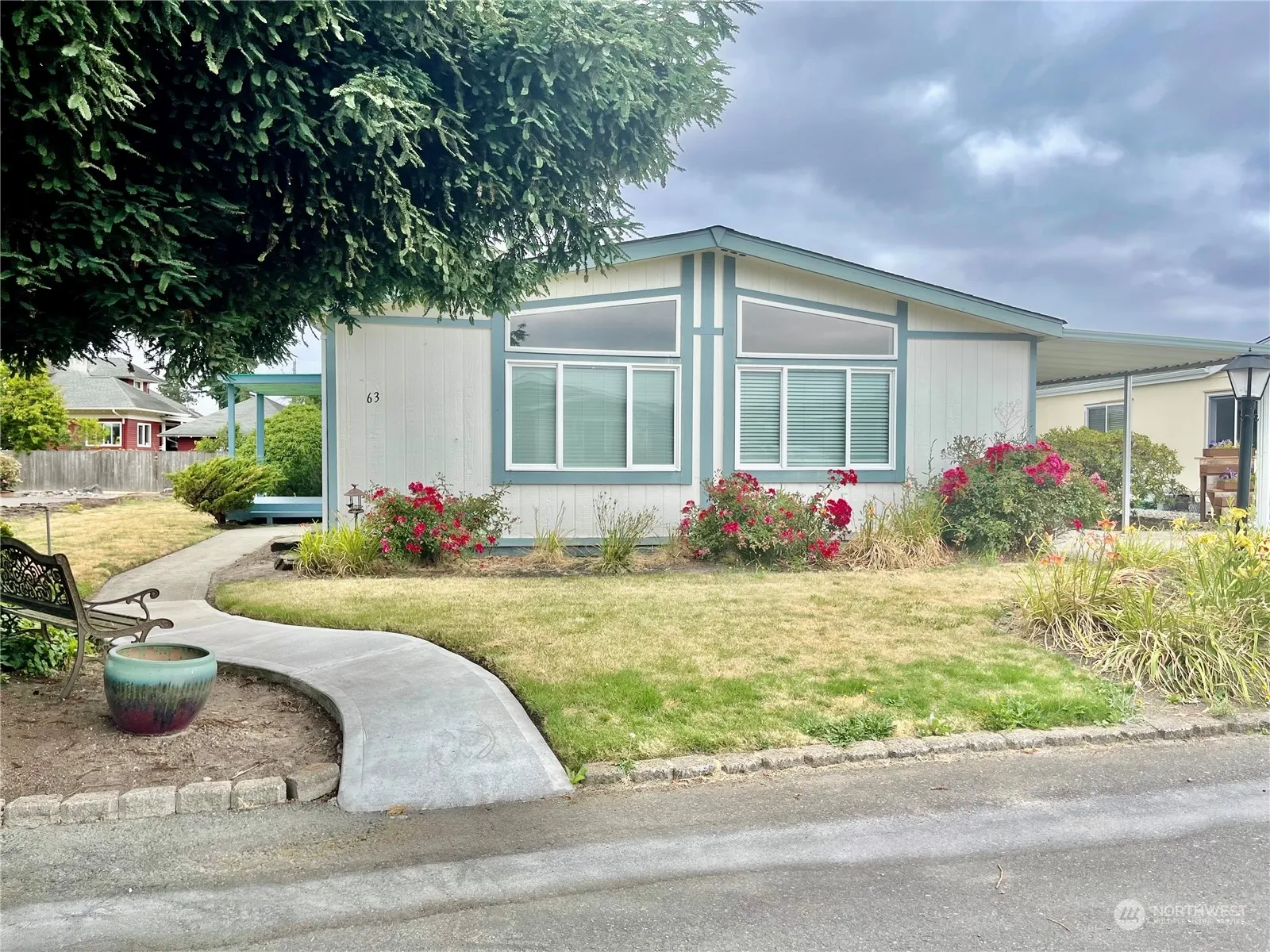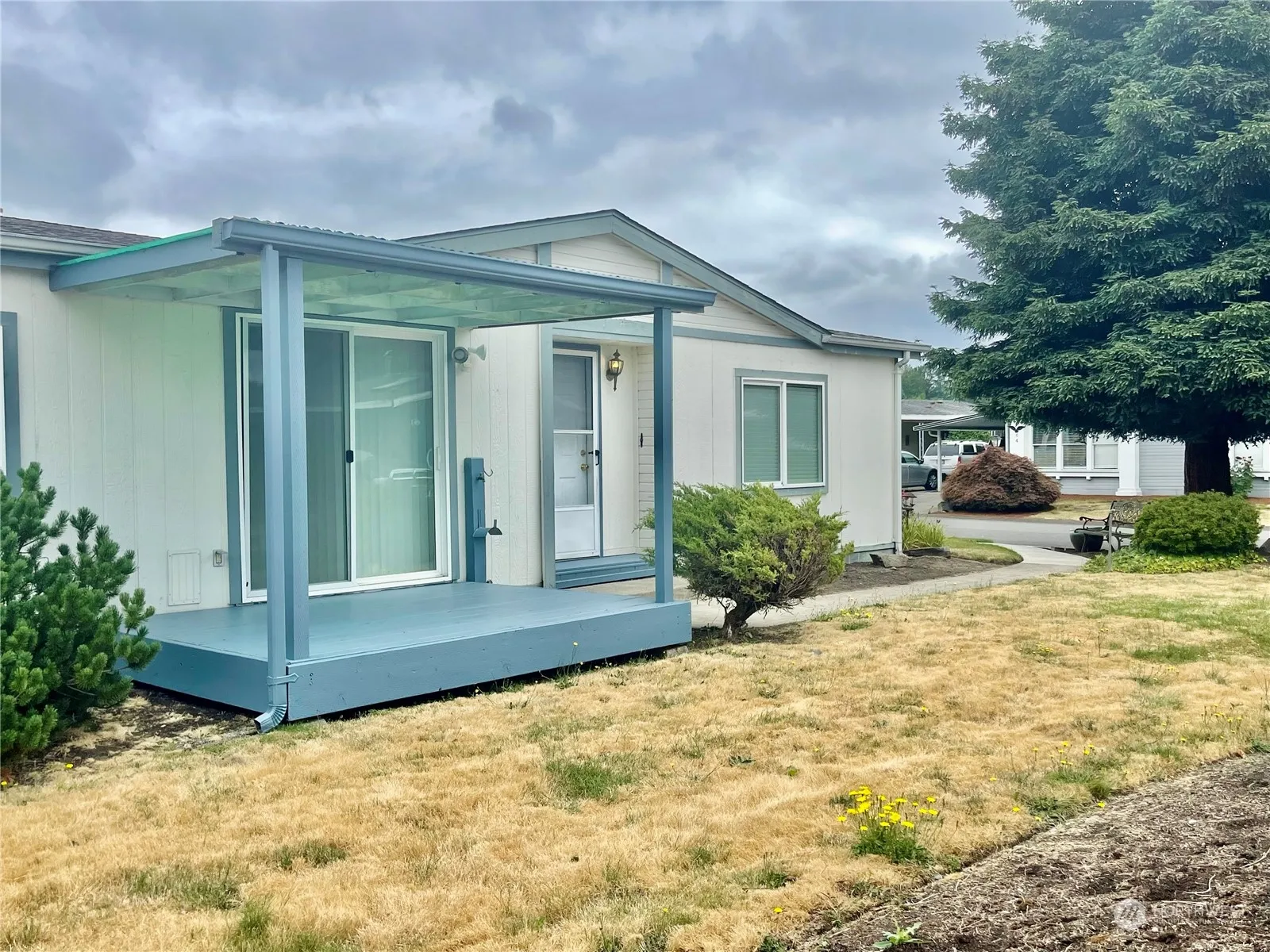 2 BR/2 bath home – very spacious & on double “end” Lot. Very large primary suite with an XL primary bathroom, a ton of storage space. 2nd bedroom is a nice size as well & across from a nice sized bathroom. Large dining room, huge living area. Desk in Kitchen, room for a 2nd dining space or separate sitting area. Spacious kitchen, large utility room W/additional storage. Separate exterior & large storage area. Everything is very clean & ready to go with the exception of the carpet which needs to be replaced & the seller took that into consideration already in pricing this home correctly. At this price, home will not last long. Desirable 55 & older community that backs up to the walking trail & GORGEOUS view of the Mountain from Living Space.
