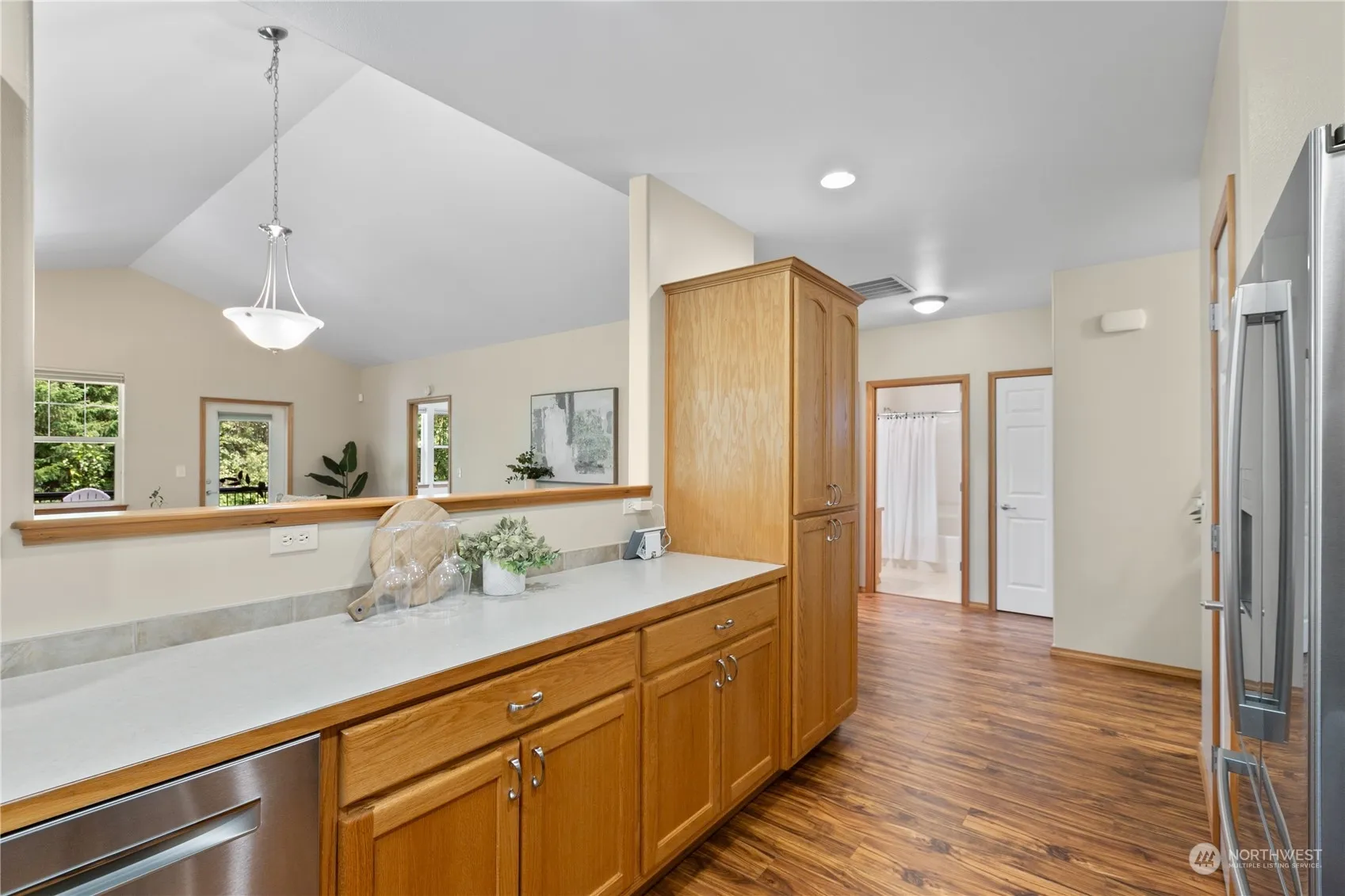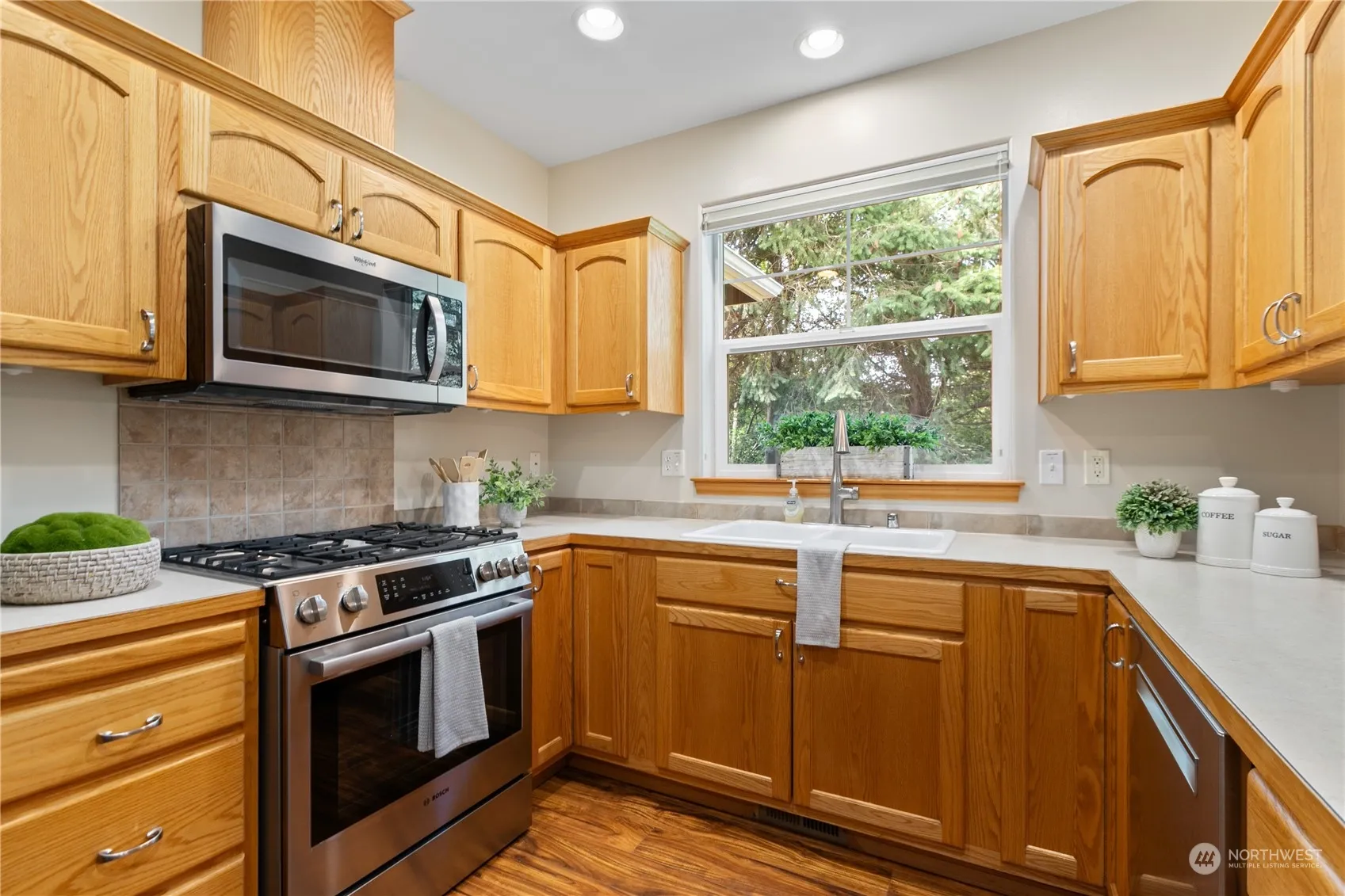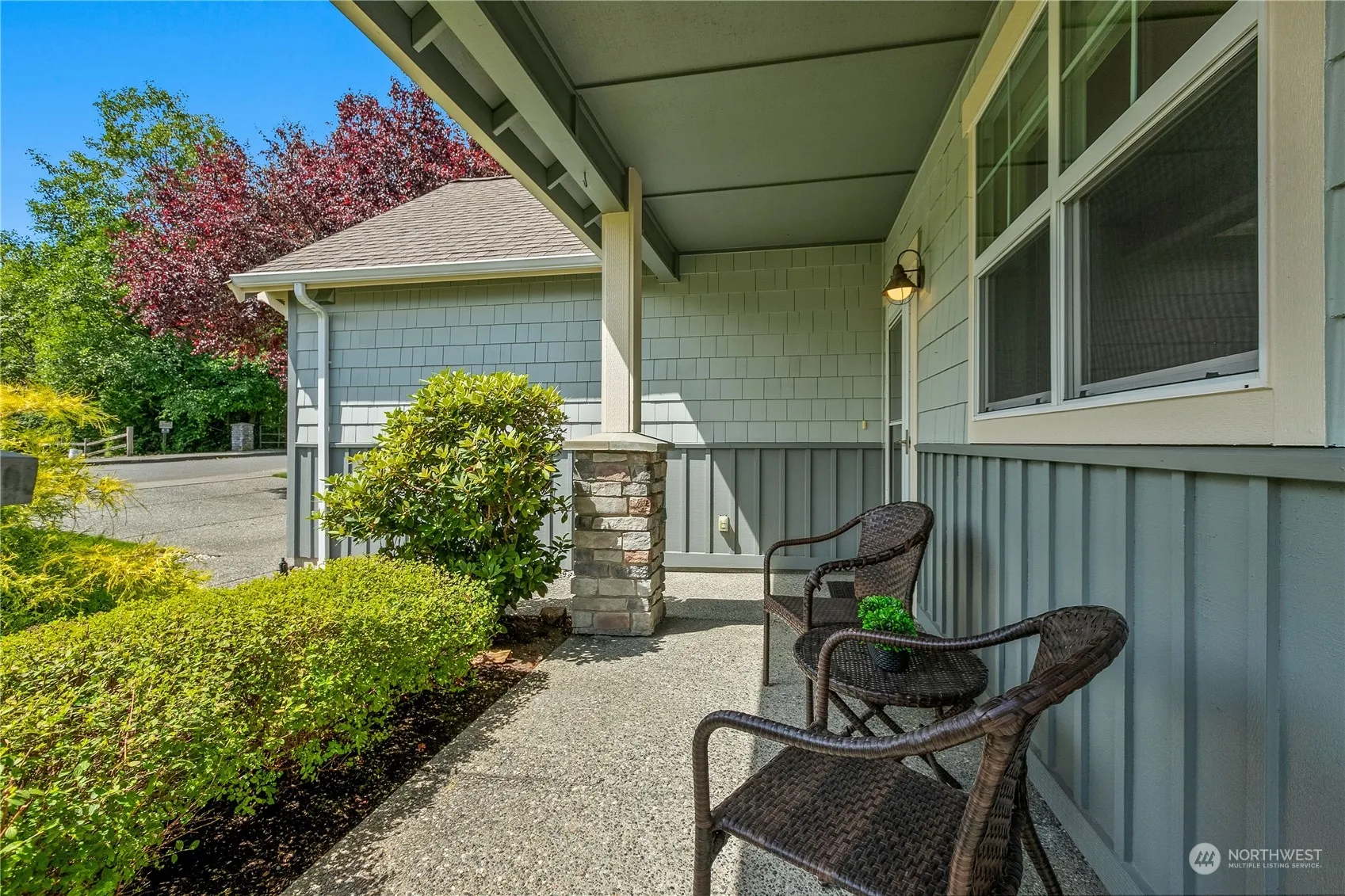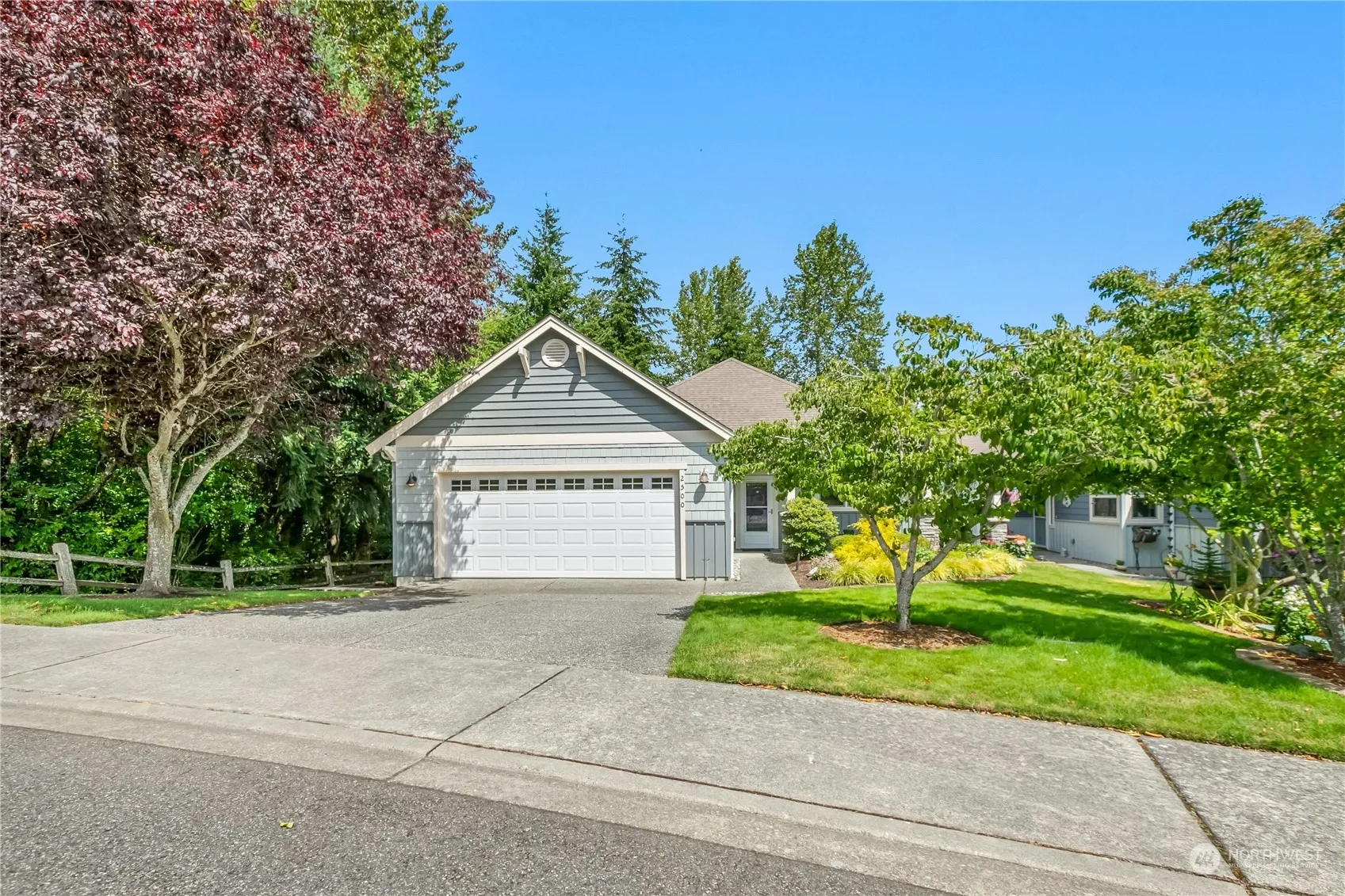Beautiful 2BR, 1.75BA condo in lovely 55 & Better community offers the very best in serene living! So many features to love – new vinyl plank floors, heat pump for cooling, single-level layout w/vaulted ceilings in the living rm and cozy gas fireplace. Your primary suite with attached bath features a spacious walk-in closet + an extra private feel with views of the trees & greenbelt behind. The front porch & partially covered back deck are the best seats in the house for enjoying the surrounding nature, the neighboring creek and water feature views. 2-car garage offers plenty of storage space for hobbies. Great location near medical and shopping yet private and quiet – there’s even a community trail with private gate leading to Haggen.