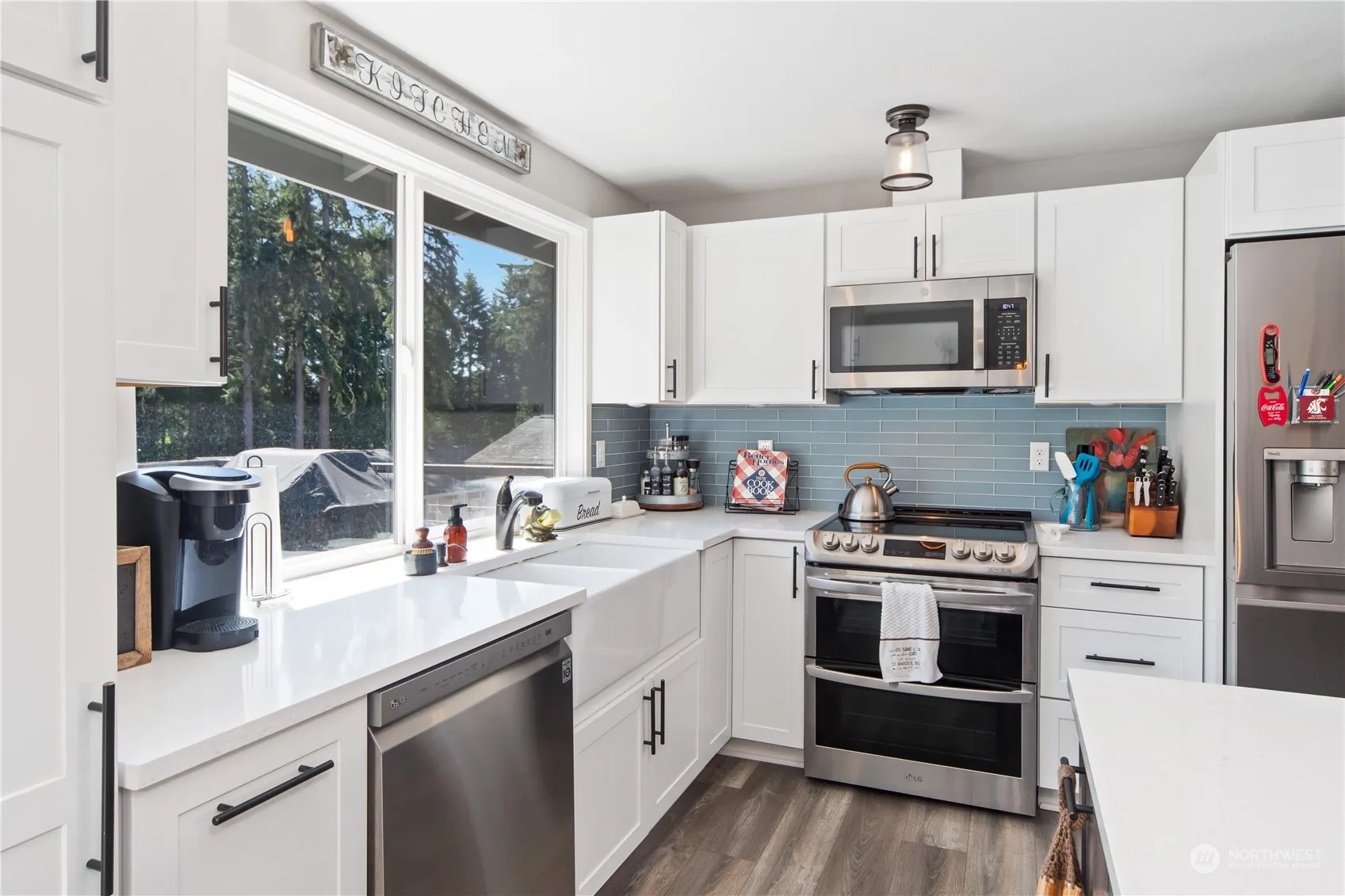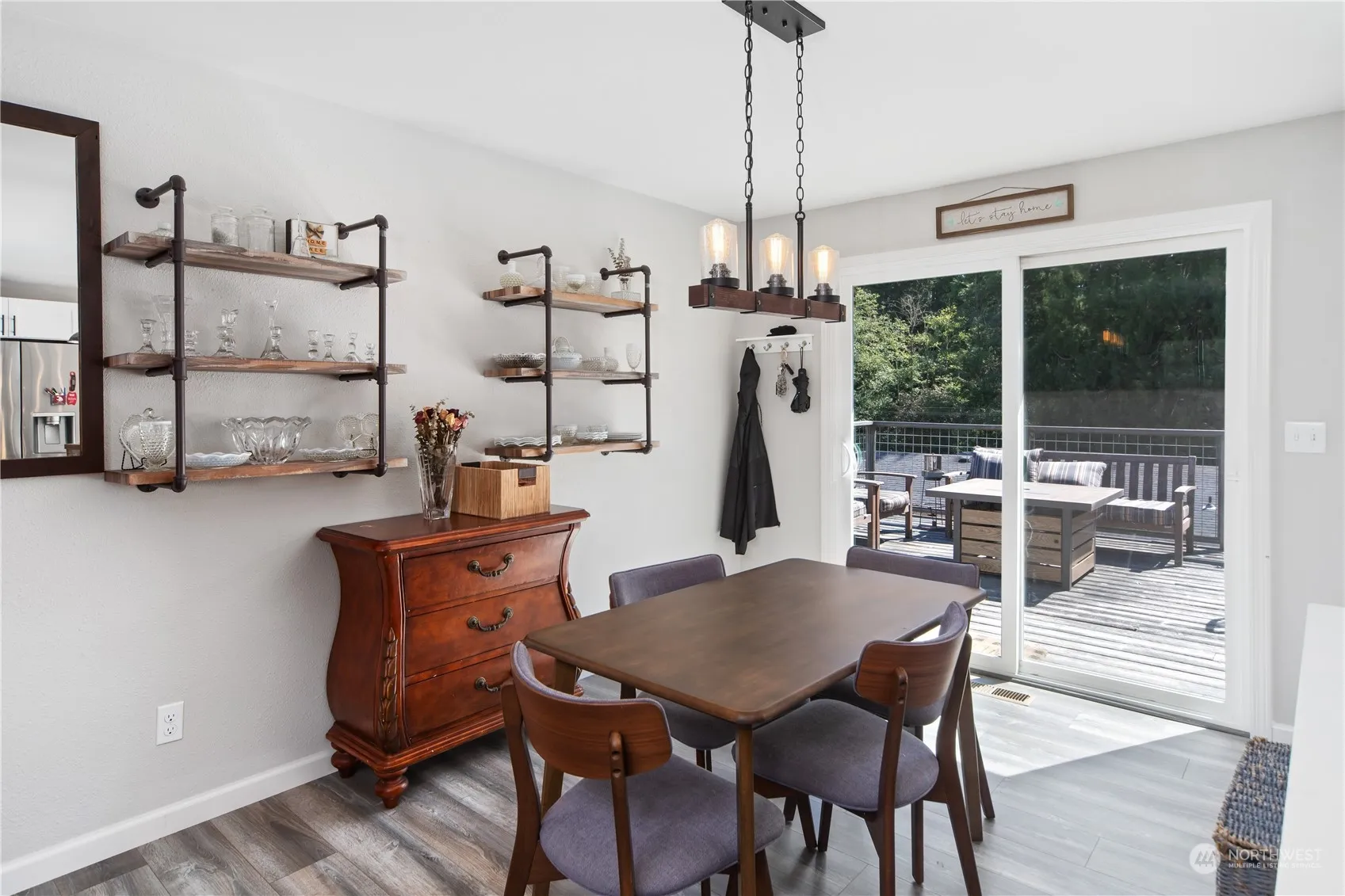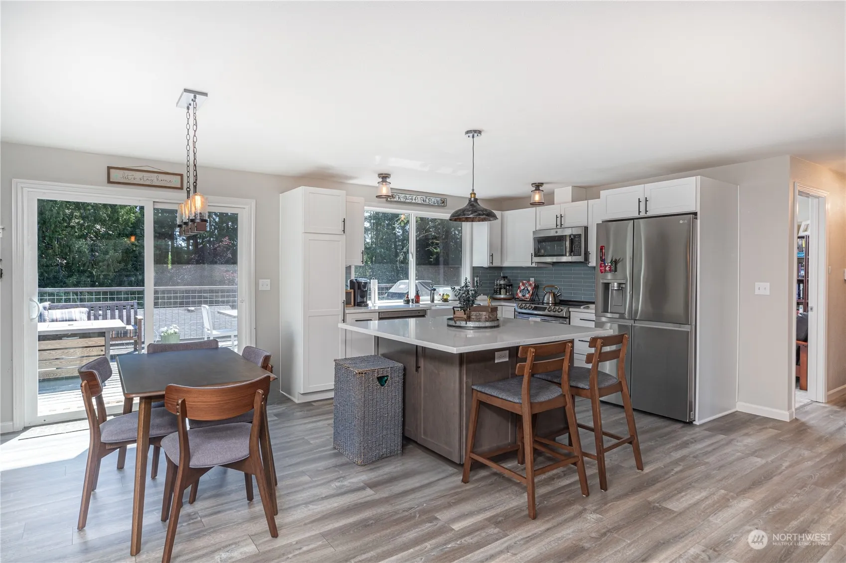 Welcome to this stunning open-concept split-level home in the heart of Poulsbo, WA. Boasting 3 bedrooms and 1.75 baths, this residence offers modern living with new appliances and flooring throughout. The spacious living area flows seamlessly into the updated kitchen, perfect for entertaining. Enjoy year-round comfort with a heat pump, A/C and 2 fireplaces for the cold winter nights. Step outside to the large back deck with stairs down to the oversized and fenced backyard featuring a relaxing hot tub, ideal for unwinding after a long day. Plenty of room for parking including a 220V RV hookup. This home combines style, comfort, and convenience in a sought-after location. Don’t miss out on this gem—schedule your showing today!