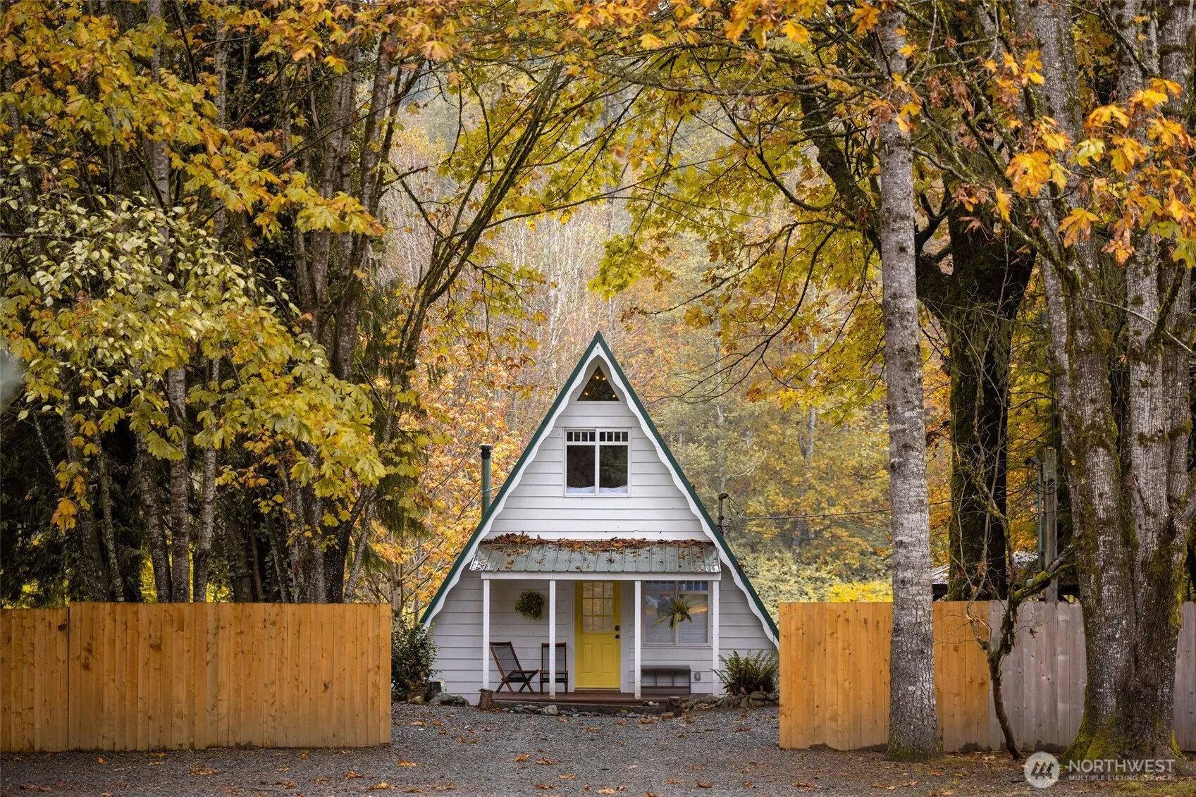 A true storybook riverfront A-frame! Set on a private half acre with direct riverfront access, this remodeled cabin is as charming as it is profitable. Inside, modern details, open layout, and updated kitchen & bath create the perfect getaway feel. Outside, unwind on the new deck or in the custom cedar hot tub with the river as your backdrop. This has been a successful short-term rental for years and comes fully furnished, ready to continue operating. From your own private beach to nearby hiking, fishing, Index climbing, and Stevens Pass skiing—this iconic A-frame delivers the quintessential PNW lifestyle and investment in one. Financials available upon request.