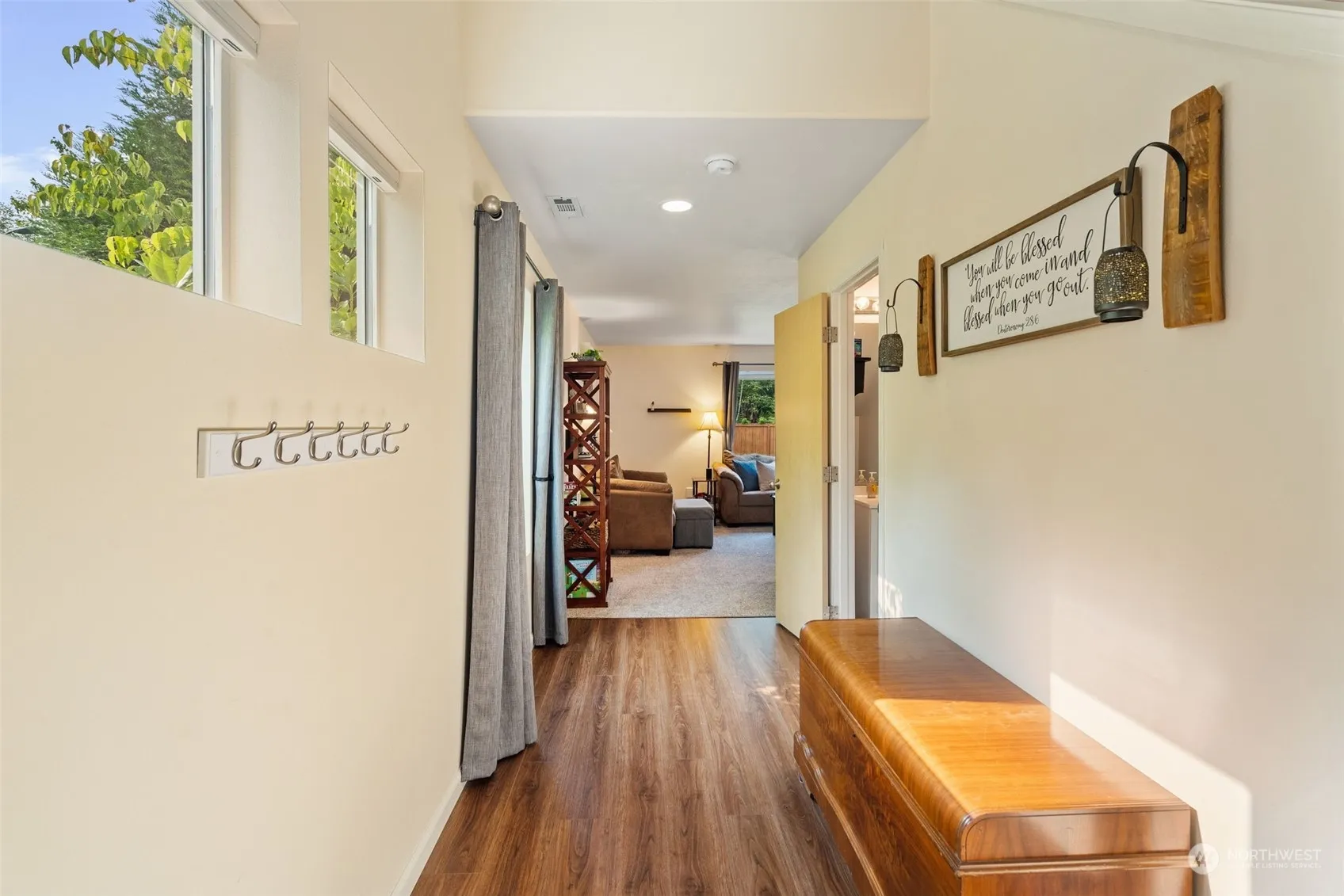 Welcome home to the picturesque Skagit Highlands Community! This delightful 3-BD, 1.5-BA residence offers 1,420 SF of stylish & comfortable living space, perfectly blending modern updates w/ charming features. Step inside to discover an open floorplan for everyday living & entertaining. Recent updates include newer laminate plank flooring & plush newer carpet. Step outside through the sliding doors to a fully fenced backyard. The newer composite decking w/ a covered area is ideal for year-round enjoyment, rain or shine. The landscaped backyard adds a touch of nature & tranquility, creating your own personal retreat. Nestled on a desirable corner lot, you’ll appreciate the added privacy & open space that backs up to serene surroundings.