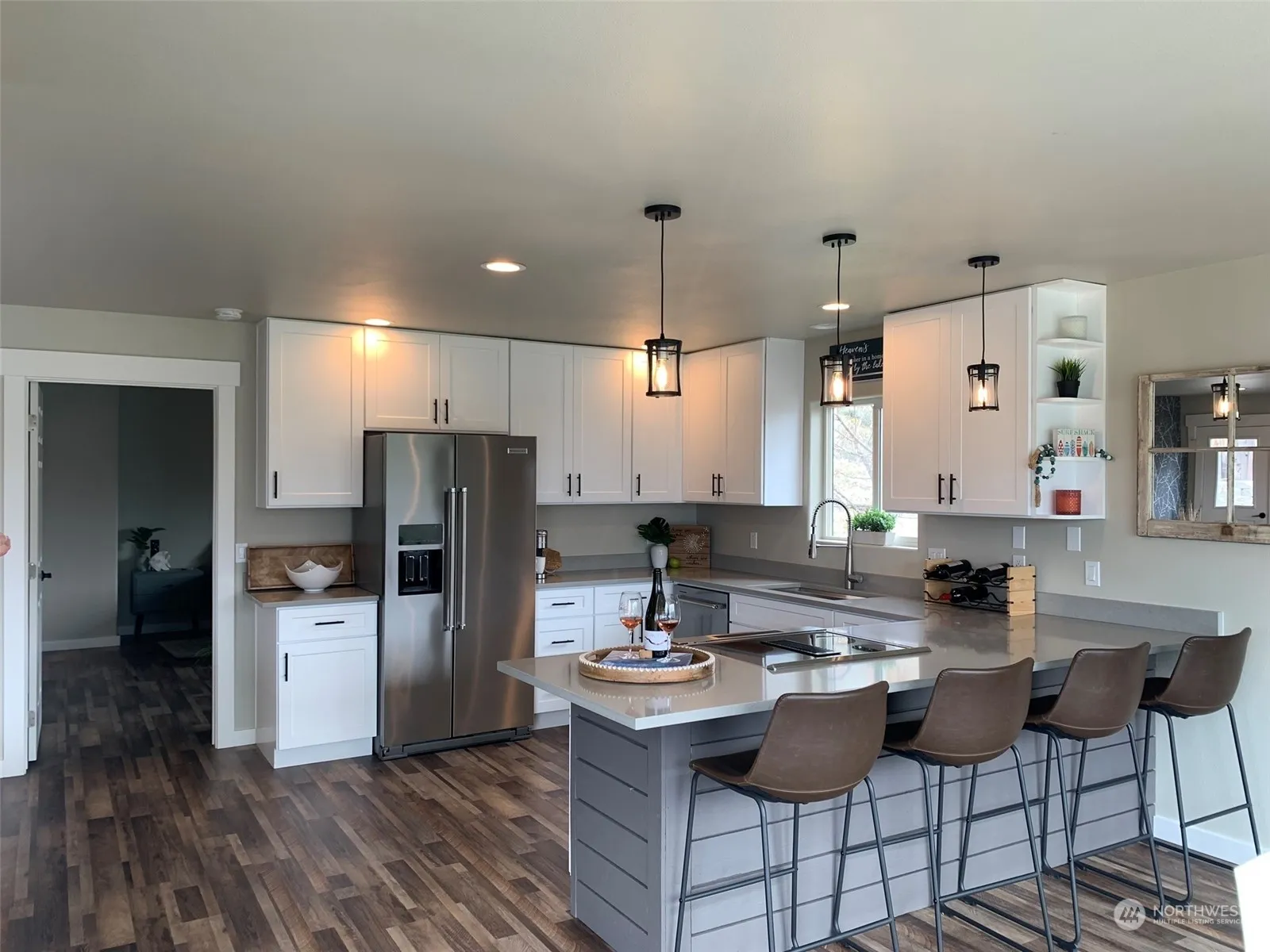 The lake life is ready for you! This large home has been fabulously renovated and is located within the coveted Chelan Hills neighborhood with access to community waterfront amenities: two swimming pools, beach front, day use park, private boat launch, buoys, day use docks, pickleball courts, and a BBQ area. The renovations include professional-grade appliances, 100% waterproof flooring, new lighting fixtures, quartz countertops, new HVAC, and more! The basement is configured as a separate apartment with private garage bay, kitchenette, bath with shower, and living room/bedroom for long-term rental opportunity. Estimated $1500/month rental. Gorgeous view of lake and Chelan Butte. Only five minutes from downtown Chelan!