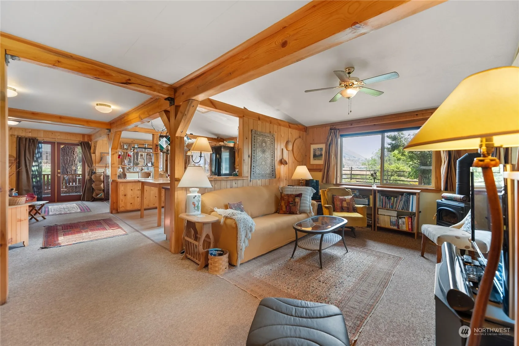 Enjoy living in this private sanctuary with lush gardens in the heart of Winthrop. This large lot home has well established landscaping with secluded sitting areas all within walking distance to Winthrop. The historic home was renovated in 2002 with R-49 insulation in attics, exterior wrapped in Thermax, new siding & roofing, an open floor plan. Home has wood & propane heat and recently installed ductless heating and cooling along with new kitchen floor and dishwasher. Primary bedroom is large. Detached garage includes a large, insulated studio space. There is ample off-street parking and a separate a cold storage building. If you are looking for in town living in a very quiet area with privacy don’t miss this home!