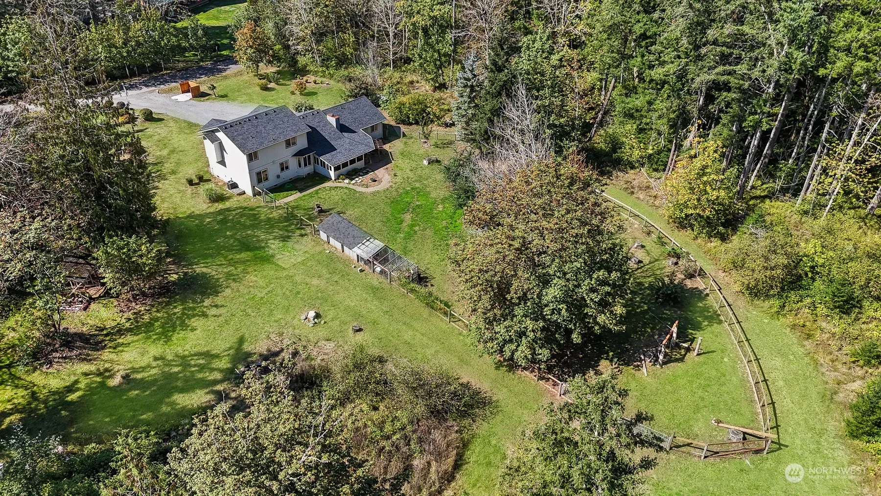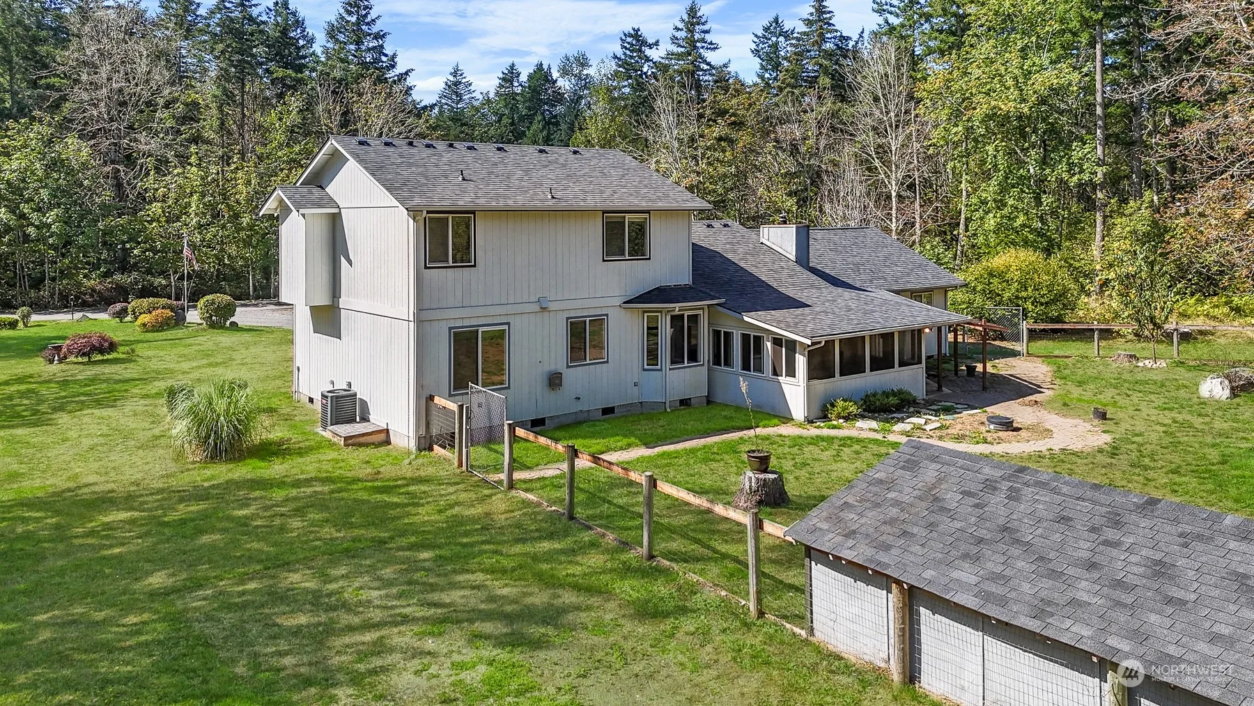 Highly motivated Seller! Fabulous three bedroom find with brand new 30yr roof! Opportunity knocks: attached Mother-In-Law unit with separate entrance, perfect for a possible rental potential. Granite counters and stainless appliances in Kitchen opening to Family rm w/wood fireplace. Real hardwood flooring; bay windows; French doors. Primary Suite is finished w/private bath & walk-in closet. Enjoy the sun all year around in enclosed patio sun room. Sitting on over two acres with fenced yard ready for your critters. Tucked away on paved dead-end street, minutes from Lake Lawrence access. Bring your boat & fishing rod (the lake is stocked!)! Easy commute to Yelm, Olympia, & JBLM.