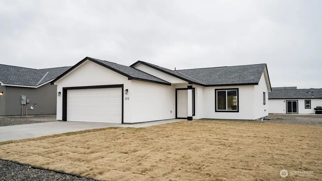 Fully completed, move in ready!! 3 bedroom, 2 bath, 1166 sq. ft. Inside, you’ll be greeted by an open floor plan with vaulted ceilings that seamlessly connects the dining, kitchen, and living areas. The kitchen is adorned with durable LVP flooring, & equipped with solid wood, soft-close cabinets providing ample storage, complemented by laminate countertops. Quality carpeting with 8 lb padding in the living spaces. The exterior boasts two car attached garage, stucco siding. All images may vary. Photos are from previously built home. Photos may include upgrades/furnishings not included in base price.