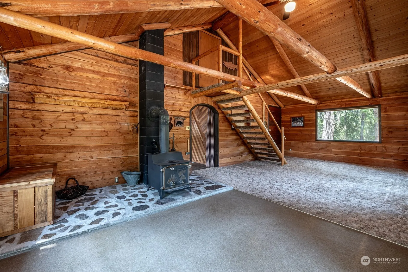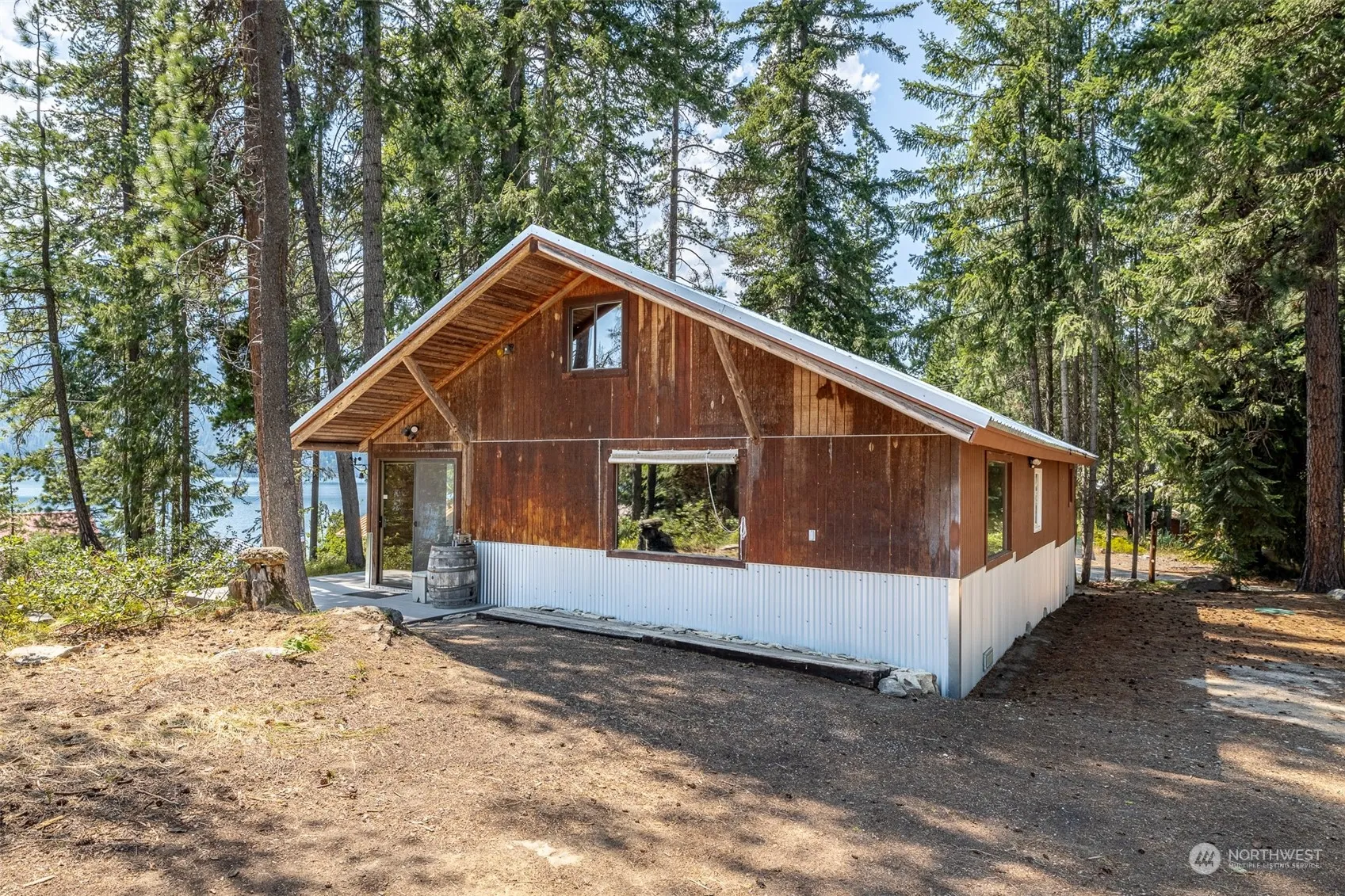 Quintessential 2-bedroom/1-bath cabin with stunning views of Lake Wenatchee! This charming getaway sits on a level parcel with excellent year-round access. Features two separate living rooms, log timbers, rough-cut wood paneling, and a classic wood stove. Well-maintained and updated with several new finishes including vinyl plank flooring, kitchen appliances, bathroom, metal siding, composite decking, and a new roof. Relax on the fantastic deck facing the lake, and North Shore Dr is ideal for leisurely weekend strolls. Quality outbuildings for storing recreation toys or setting up a small workshop.