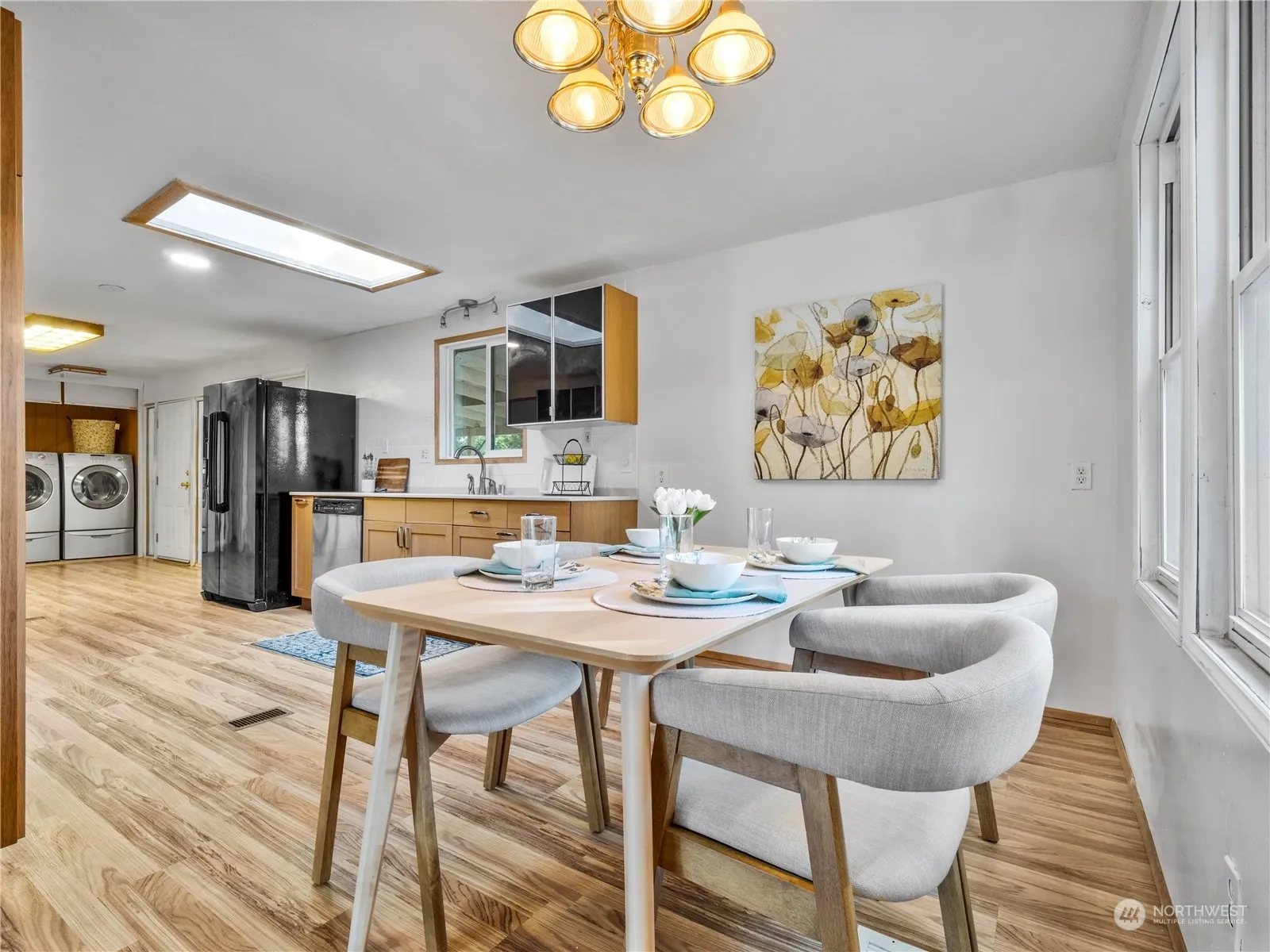 Welcome home to this one level, 3 bedroom, 1.75 bathroom gem nestled in the desirable community of Nisqually Pines! With 1,440 square feet of comfortable living space, this home sits on a spacious 15,682 square foot lot. The kitchen has been updated with Corian countertops, stylish subway tile backsplash, slow-close cabinetry and a sleek smooth top range. The added skylight fills the space with natural light. Entertain on the shaded back patio, perfect for grilling and summer gatherings. The 2-car garage w/shop needs a little TLC, offering great potential for your customization. The community is perfect for outdoor enthusiasts…enjoy access to the beautiful river park, scenic trails, club house w/outdoor pool, playgrounds & numerous parks.