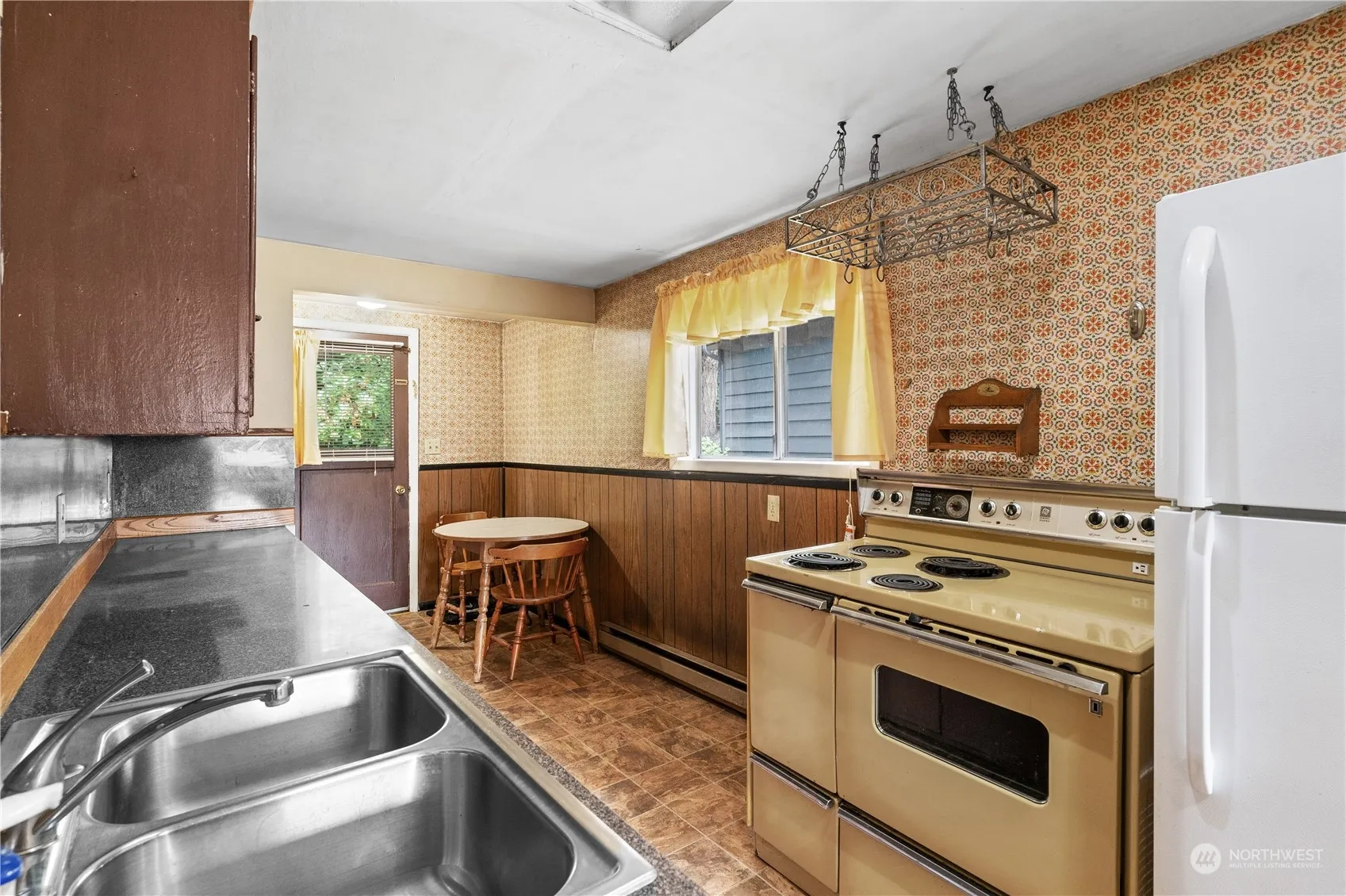 Welcome to beautiful beach view living at this private cozy cottage tucked away in a desirable quiet neighborhood; minutes from Bainbridge Island! This property shares access to beach access on James Street (~100 ft away) and cute neighborhood park and public boat launch.Sit out on your covered front porch sipping coffee watching Alaskan cruise ships. Fully fenced yard a back deck w/ privacy, storage shed and firewood storage. Great Income property (airbnb/rental). Only 15 minutes from North Kitsap ferries (Bainbridge and Kingston) primary bedroom with cedar panel and woodburning stove in large window living room. Rare Gem with opportunity to make yours doesnt pop up often!