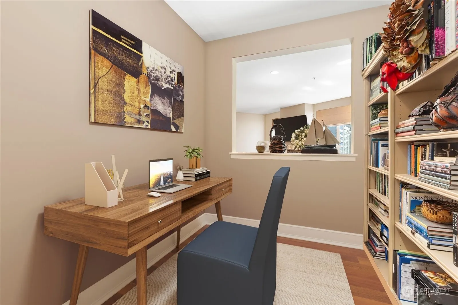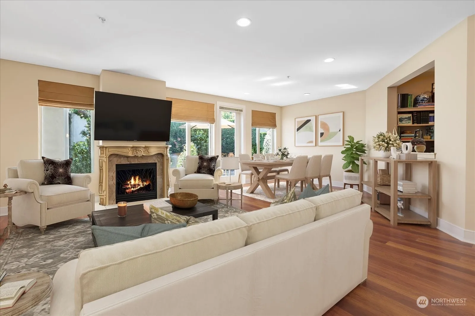 A grand layout awaits your discerning eye in this beautiful one level oasis at coveted Pt. Edwards. Marble floor entry meets engineered hardwood in living spaces & kitchen. Gas fireplace w/ customized surround centers Great room, generous designated dining area with finishes to perfection. Den opens to living room & it’s built-in bookshelf. Excellent storage w/i the condo- sep. laundry, pantry, deep hall closet, & walk-in closets in both bdrms. Extra storage in garage! Primary bedroom is ensuite w/ dual sink vanities, shower & linen storage. Add the outside courtyard splendor with it’s SE facing terrace, the community amenities of pools, clubhouses, guest suites, work-out venues & 23 acres of parklike grounds & you have a scored lifestyle!