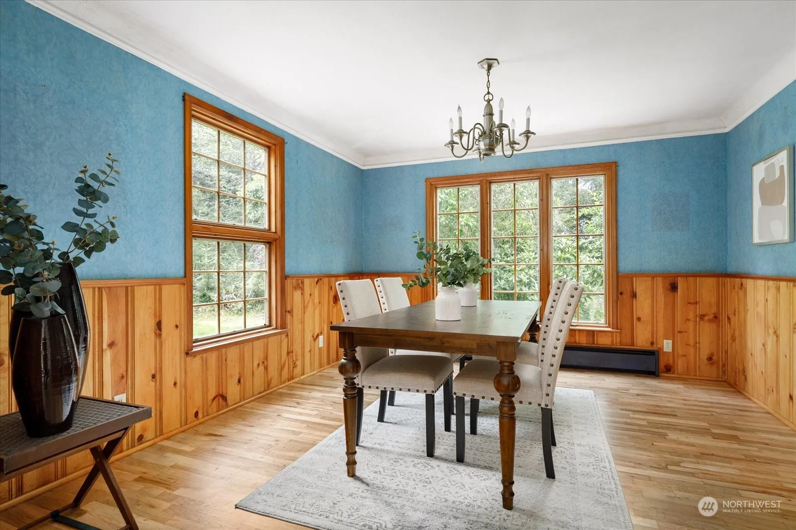 A country retreat set on 4.95 acres–beyond city limits yet mere minutes from work & play. Blending timeless charm w/a dash of whimsy, the 2170 asf is brimming w/unique details. Featuring; a spacious living rm w/freshly refinished h/w flrs & wall of windows perfectly framing the bucolic setting + a separate family rm complete w/wood stove–adds versatility to function. The kitchen is open & inviting w/pine planked ceiling, oak cabinetry & sunny dining nook. Key highlights: full basement + SHOP, recently insulated/cleaned crawlspace & a BRAND NEW ROOF–wow! Explore the peaceful & park-like grounds w/fenced orchard! Add in the gated entry, circular drive, 2-car garage, cement siding, generator-ready & more? Privacy. Possibilities. Perfection.