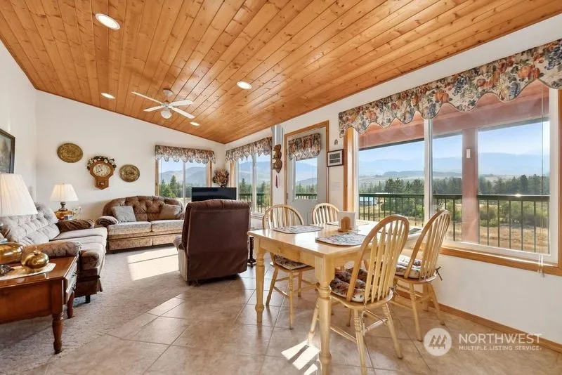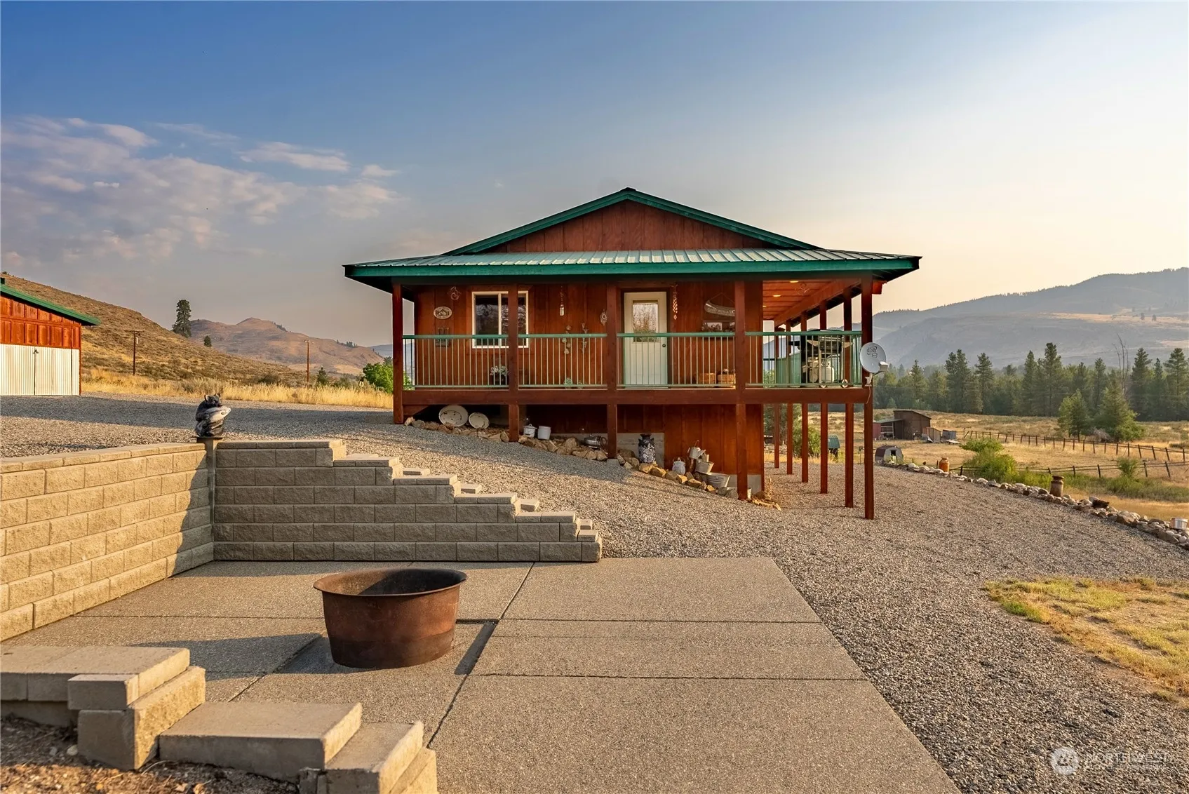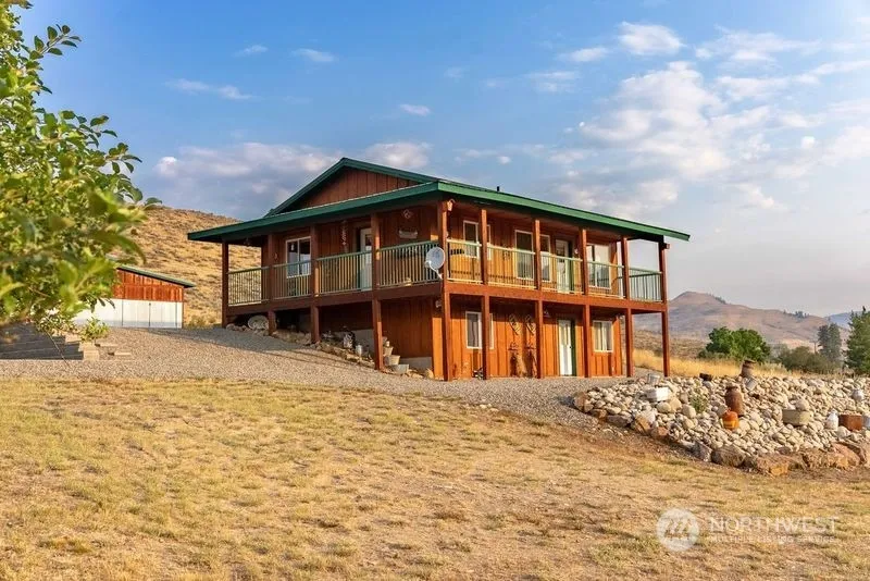 Giddy-up to this Winthrop home partner! Craftsman Cabin offers total 1,152 SF 2 bed/ 1 full bath (784 sf) Plus unfinished (384 sf) Walk-out daylight basement Studio bedroom. Sparkling clean easy-care ceramic tile floors, wall-to-wall carpeted bedrooms. Shared Full Bathroom. Washer/Dryer. Gleaming pine-wood ceiling. Kitchen w/all appliances, Dining & L.R. open floor plan. Mtn. Views from every window. Wood cabinets. Solid wood doors. Utility room. Covered decks are a pleasure to enjoy Summer/Winter alike. Super low maintenance. Outdoor area to gather. Gravel driveway, plenty of parking. Access to River to dip your toes in water & have a cool swim. Own this dream home to unwind & plan your recreation fun in a peaceful setting. This is it!