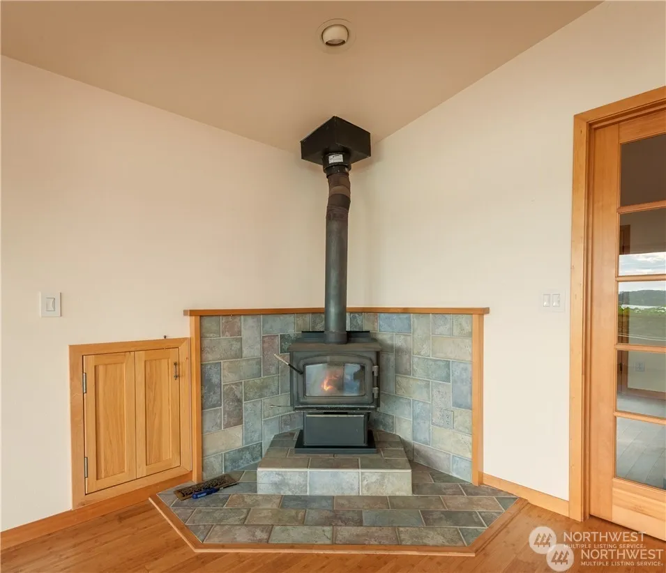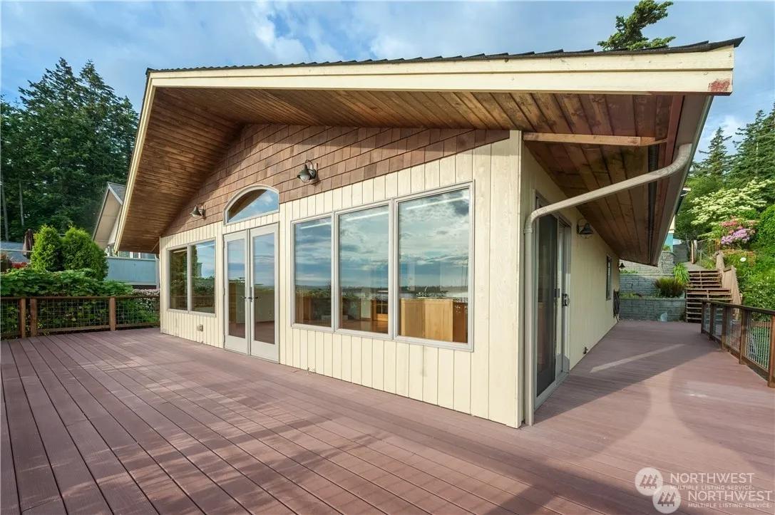 Intimate & unobstructed stunning water view in this two-bedroom waterfront cabin tucked in close to the beach (stairs from the yard lead to an excellent crabbing & clamming beach!). This stout home was completely remodeled in 2005. Wood built-ins, bamboo floors, Anderson wood-wrapped window wall & french doors lead to a deck & a million dollar view of Mt. Baker, Hales Passage,& Canadian mountains. Additionally, there is a detached building with w/ an artist studio/workshop AND a guest suite with three-quarter bath which both take advantage of the view. Lovely terraced yard with enough space to grow your own vegetables, flowers and herbs.One car garage & off-street parking. Excellent location close to everything.Downsize without compromise!