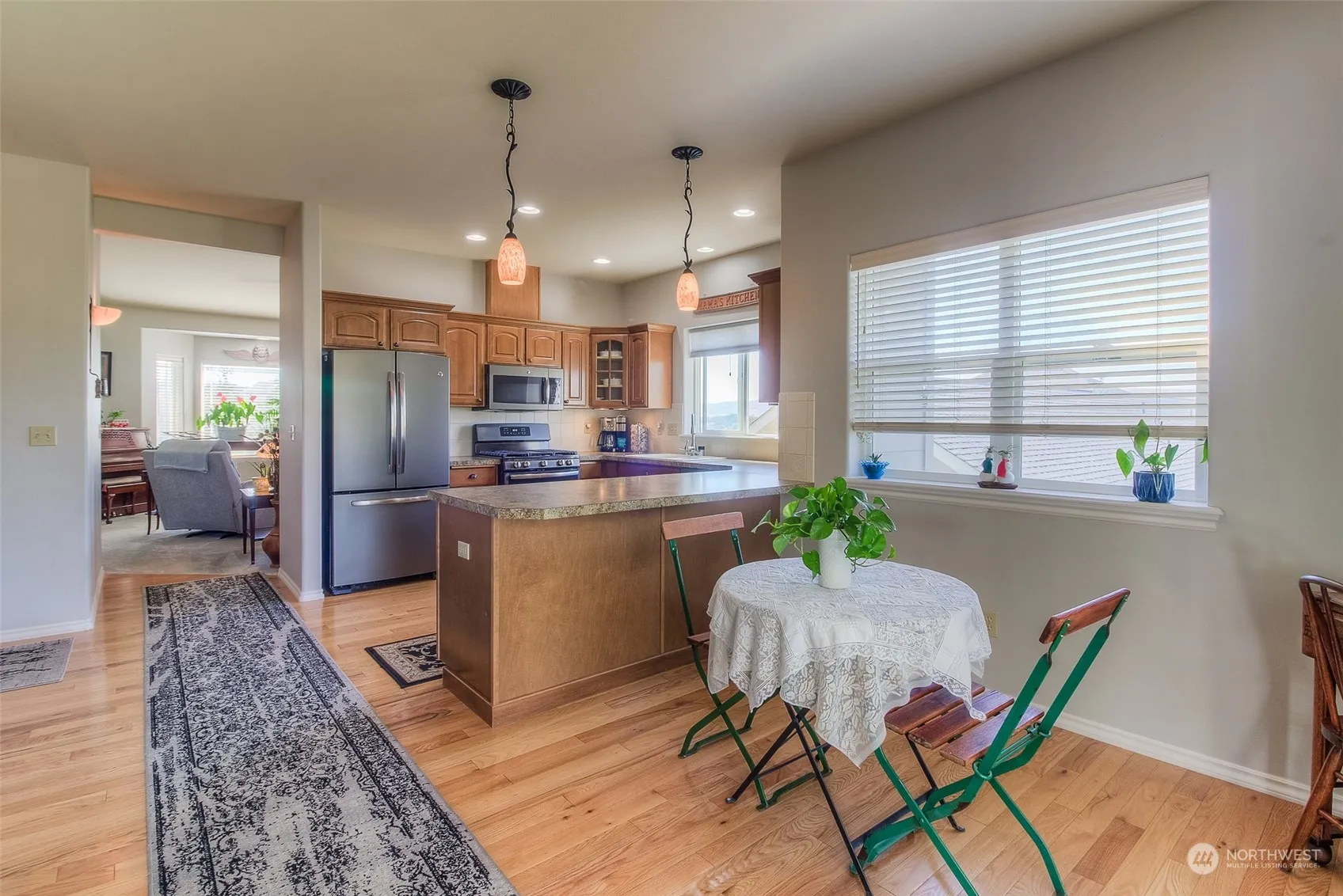 Find the perfect home for any stage of life, whether you’re starting out or seeking a peaceful life. This charming one-story, common-wall residence combines convenience and style. Enter into a spacious living room with vaulted ceilings, offering a bright, airy feel. The pristine kitchen features modern amenities, an eating bar, a pantry, on-demand hot water, and a dining area. The private master suite includes a generous walk-in closet for ample storage. A large laundry/mud room off the garage adds practicality. Designed for easy living, the open floor plan flows naturally. The dining area’s patio door opens to a beautifully landscaped backyard, adjacent to a neighbor’s open space, creating a serene retreat.