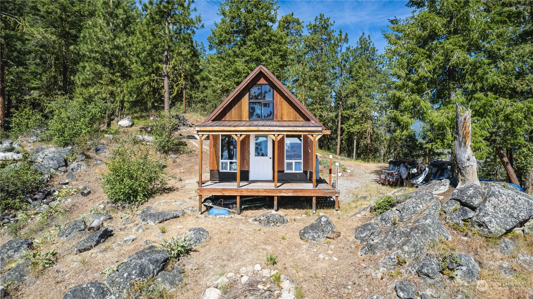 Escape to Serenity on your own private 20 acre retreat.This charming 14×14 off-grid cabin boasts million dollar views at a fraction of the cost. Relax while taking in the breathtaking panoramas of Lake Chelan, Wapato Point, Manson, the State Park and much more. Exterior features include refurbished barn wood over plywood, windows throughout, a covered front deck for taking in the views. Interior is framed for bathroom, kitchen and living space just need finishing touches. The finished sleeping loft includes custom car decking wood floors. Stay warm with the propane wall heater, solar power and water holding tank are already in place. Structure is ready for you to customize your own personal retreat. Call Agent for Directions!