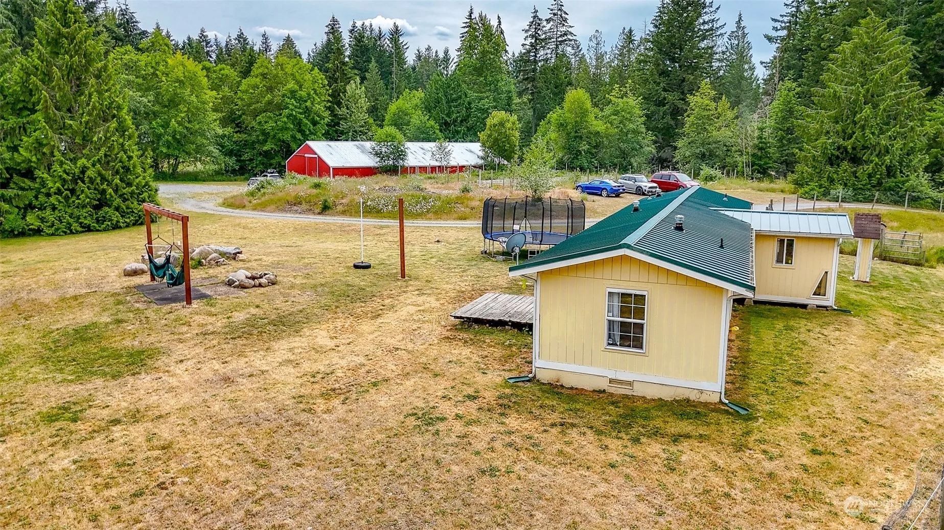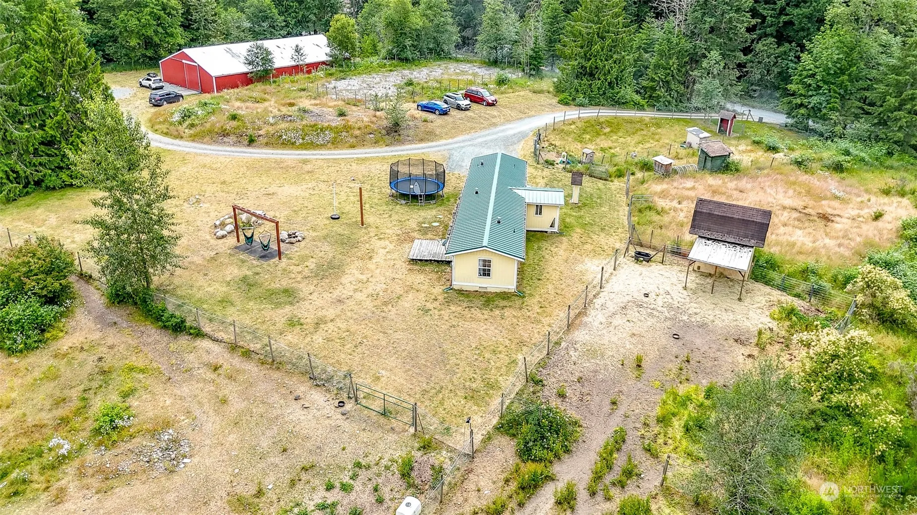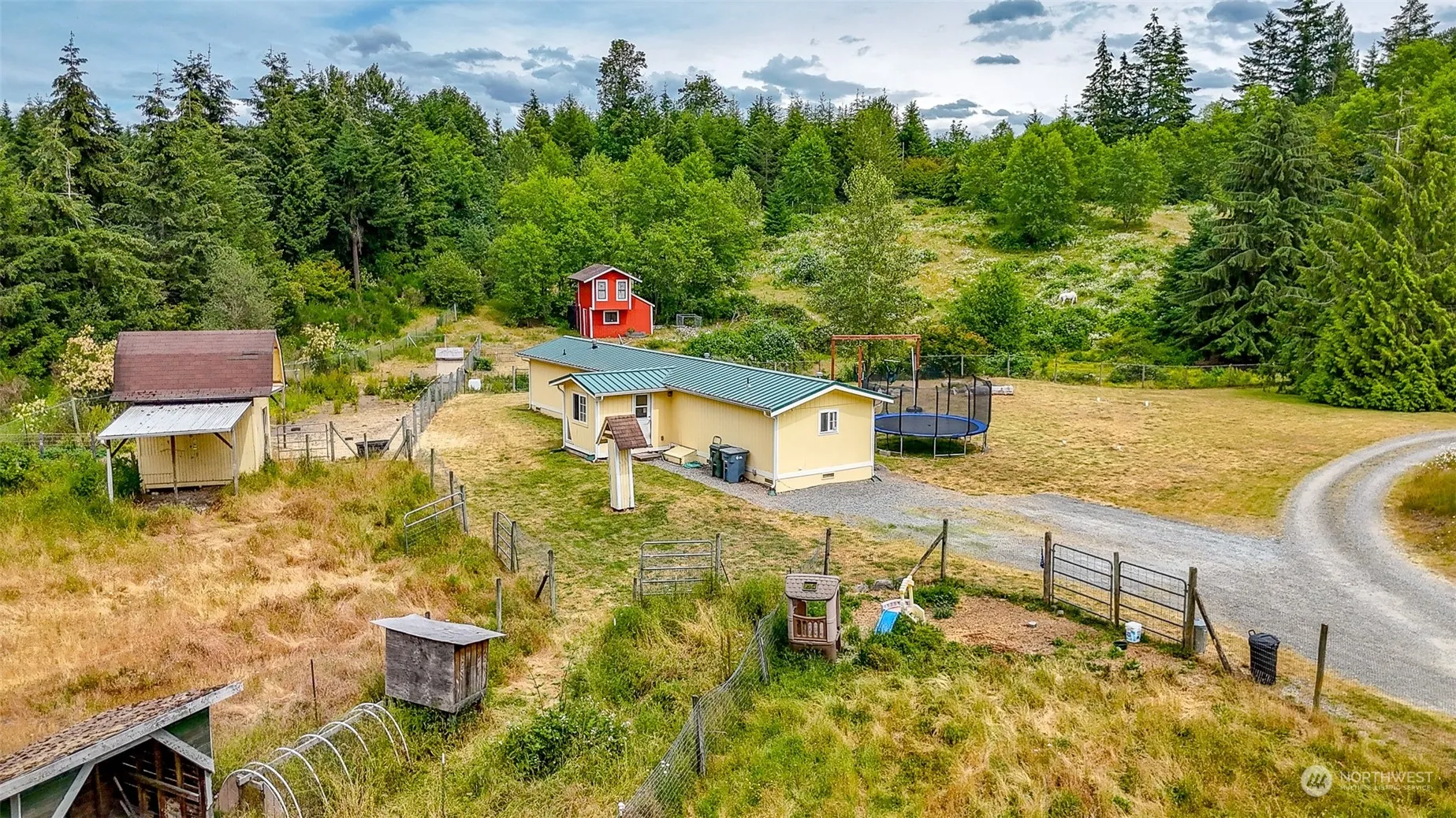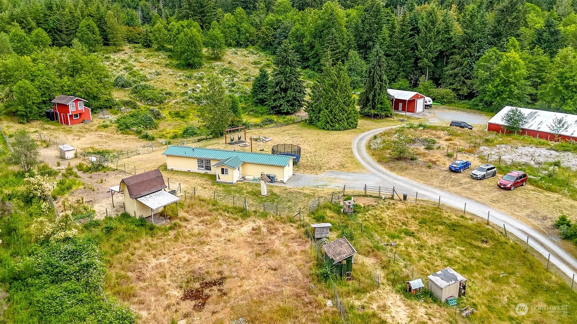 Welcome to your very own private 5.27 acres. Boasting fully fenced acreage to build your dream home w/a 4 bedroom septic, fully fenced and cross fenced. There is a perfect building site that sits atop the hill and has views of the Olympic Mts. Separate 800+/- sq ft shop w/lift and W/D hookup, .75 bath, septic tank, and power. 2 lean-to’s, 2 separate full RV hookups by the shop, additional 4000 sqft pole building with 7 unfinished stalls inside. Arena space with power could easily be brought back to life or turned into a gardener’s dream space. This home also has two 425-gallon holding tanks and 3500 gallons of cistern storage.Well piping was replaced in 2023. Buyer to verify all information.