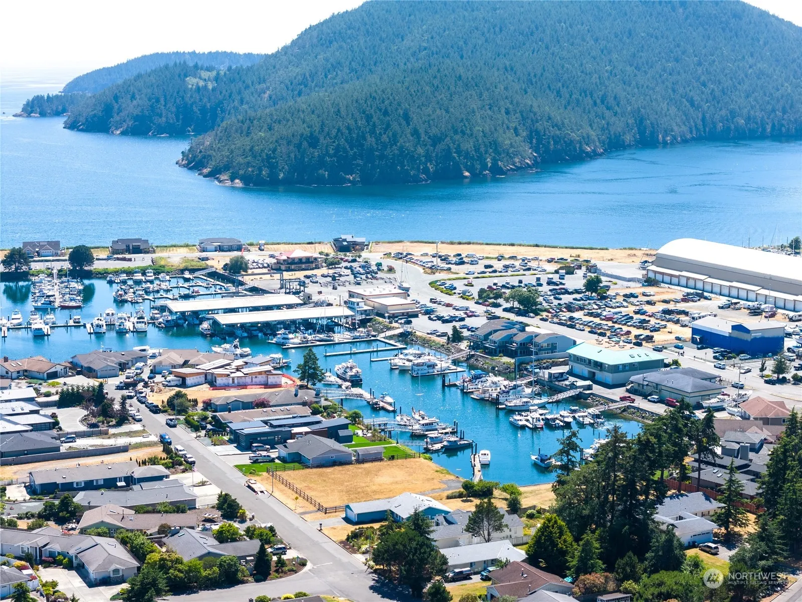 This custom home with beautiful architecture has great privacy, while still capturing distant views of Port Townsend and the Olympic Mountains framed by madrona and fir trees. This quality built home is elevated above the norm with its quality materials including cedar siding, solid core doors, expose glue lam beams and expansive eaves. Beyond the South wall of windows is a deck that wraps around to an extremely private back deck area with hot tub and outdoor shower. The 26’ deep garage has a 9 foot tall garage door that will accommodate a sprinter Van. There is a small carport behind the main level. A 34’moorage slip is available in the Marina 3 minutes away. Skyline amenities are included.