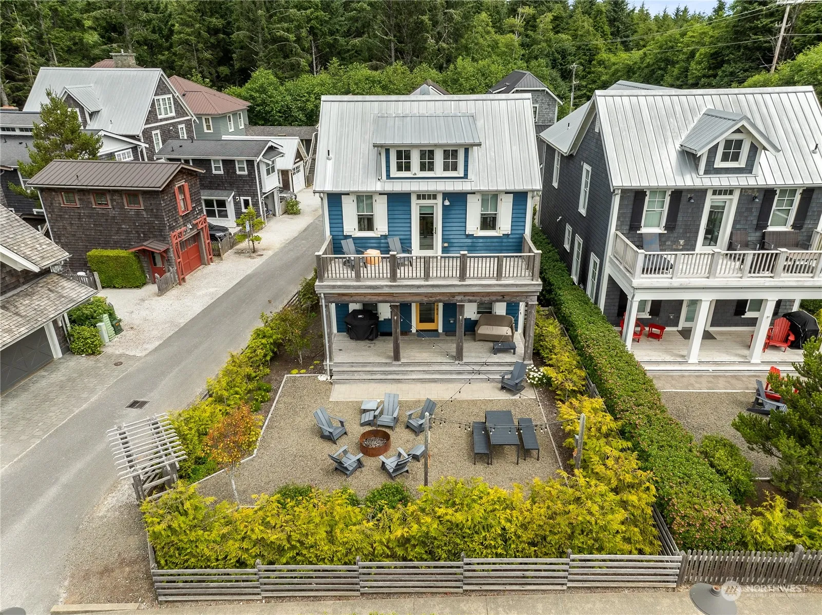 Located just steps from the Northwest Glen beach trail, Blue Heaven offers connectivity to the beach and Town Center alike. Be welcomed inside from the covered front porch or the attached one car garage into the thoughtfully designed main floor. Upstairs is host to a large primary bedroom with a walkout balcony and ensuite bathroom, two guest bedrooms, a full bath, and a media room. Outside you will find a spacious entertaining area complete with a hot tub and firepit.