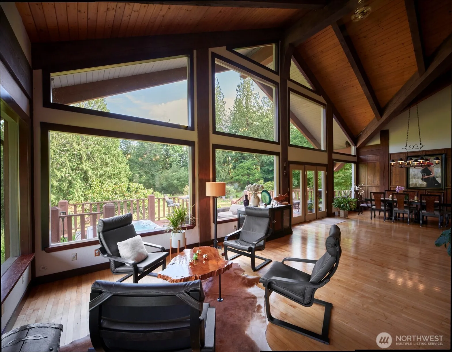 Absolutely amazing property w/river frontage & usable acreage. 3 horse stables. Come check out this home that has 20ft beam ceilings that was made from their own trees on the property. Fantastic quality & craftsmanship.The massive rock fireplace is designed off the Timberline lodge fireplace.This 5 bedroom home w/primary on main level has views out of every window. Large deck w/hot tub to sit back & relax while you overlook the Coweeman river. You can catch Coho & Steel head. You actually own half of the river. 40×60 cedar barn with 3 hay loft. 8 acres of fenced pasture. Still there is more. Art studio w/power & water to it. Extremely peaceful property. Opportunity to also purchase additional acreage for $100,000 every additional 10 acres.