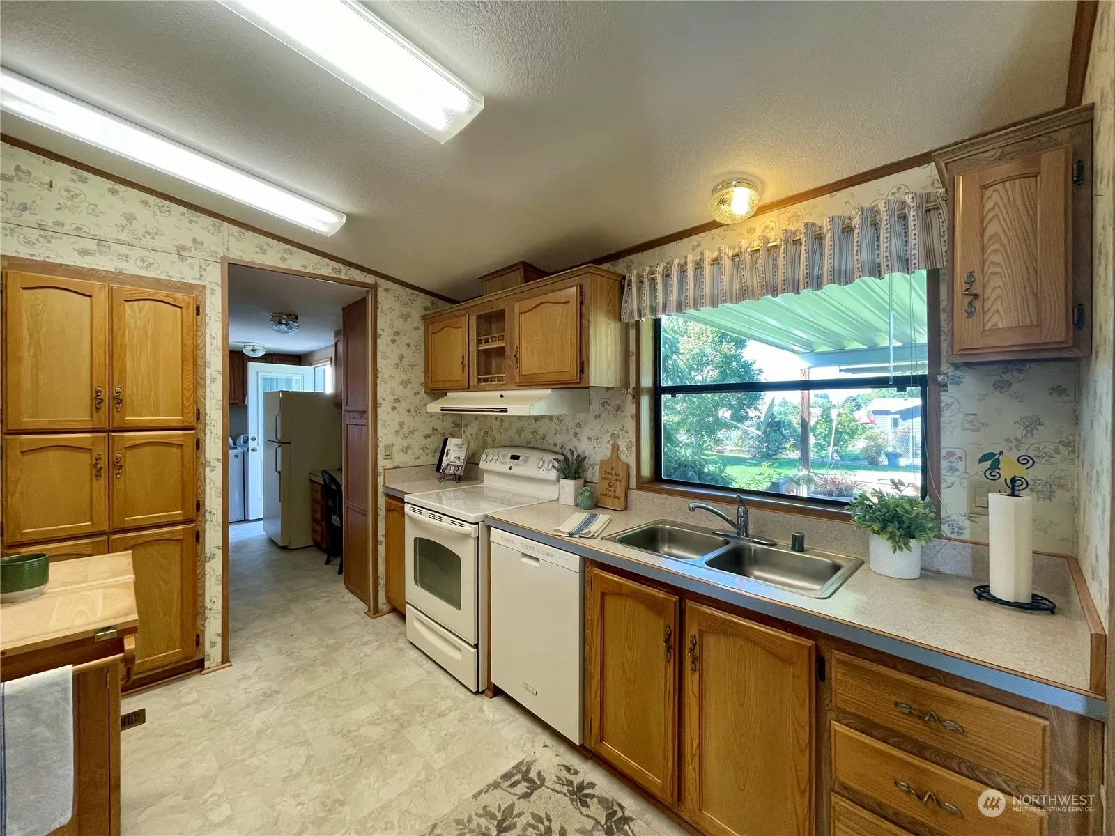 Discover comfortable living in this meticulously maintained home! Entertain effortlessly in the vaulted ceiling living, dining, & kitchen areas. The spacious layout includes two bedrooms plus a den/office (ideal for remote work) that could easily be used as a third bedroom. The primary bedroom offers a large walk-in closet and an en-suite bath that includes a remodeled tiled walk-in shower. All plumbing and vinyl flooring in the house was replaced in 2021. All appliances (including separate upright fridge and freezer in the garage) convey with the home to make it move-in ready. The detached garage features plenty of room for projects. There’s lots of room for parking on this lrg corner lot! large RV carport, dog run, heated studio & UGS.