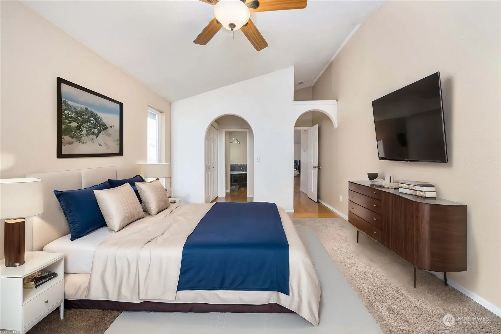 Discover this stunning 2148 sq ft home boasting 22 new solar panels and a fully fenced lot with a 2-car garage. Below, find 2 beds with a mini kitchen and full bath, ideal as an ADU/separation. Upstairs features a spacious living area, updated kitchen with vaulted ceilings, and a bright, fully encapsulated front deck. The back yard under the deck is a quaint sanctuary. Enjoy a large back deck accessible from the master suite and kitchen. Luxurious 5-piece master bath with a huge soaking tub and new tankless water heater to fill it. Conveniently located near highways, Downtown, and JBLM, this home offers comfort, style, and versatile living spaces.