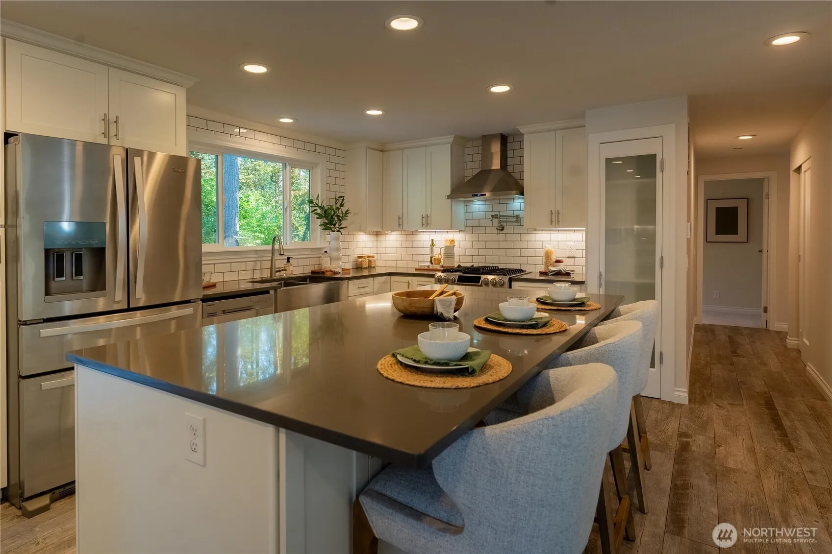 Elegantly updated residence in desirable Education Hill designed to combine sophistication, comfort, & flexibility. Positioned on a premier corner lot, this home is bathed in natural light & offers both privacy & a serene setting. Main level boasts an impressive open concept layout perfect for entertaining or everyday living. A designer kitchen with sleek finishes flows seamlessly into the dining & living areas. Lower level features a rec room that opens directly to a beautifully landscaped, low-maintenance outdoor oasis complete with patio, deck, hot tub & lighting. A private suite with its own entrance provides versatile options for guests, extended living or work-from-home. Walking distance to top-rated schools, parks & trails.