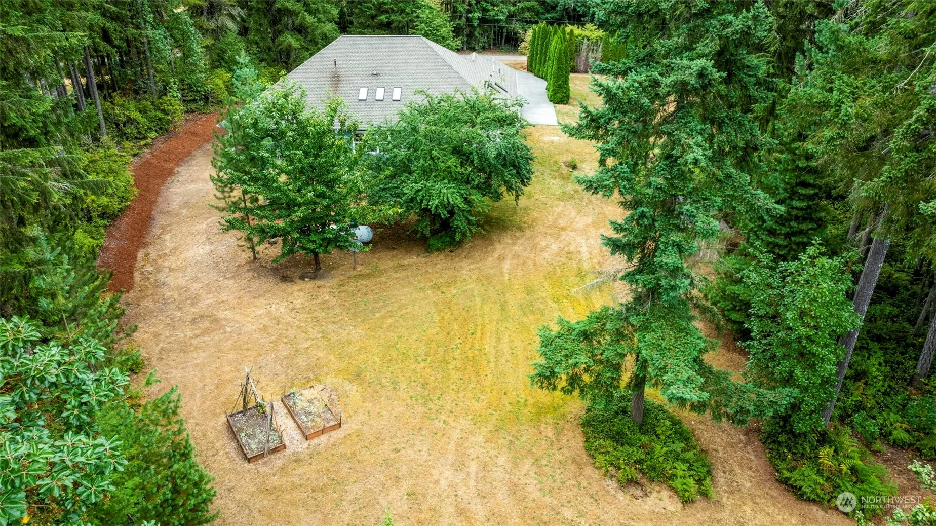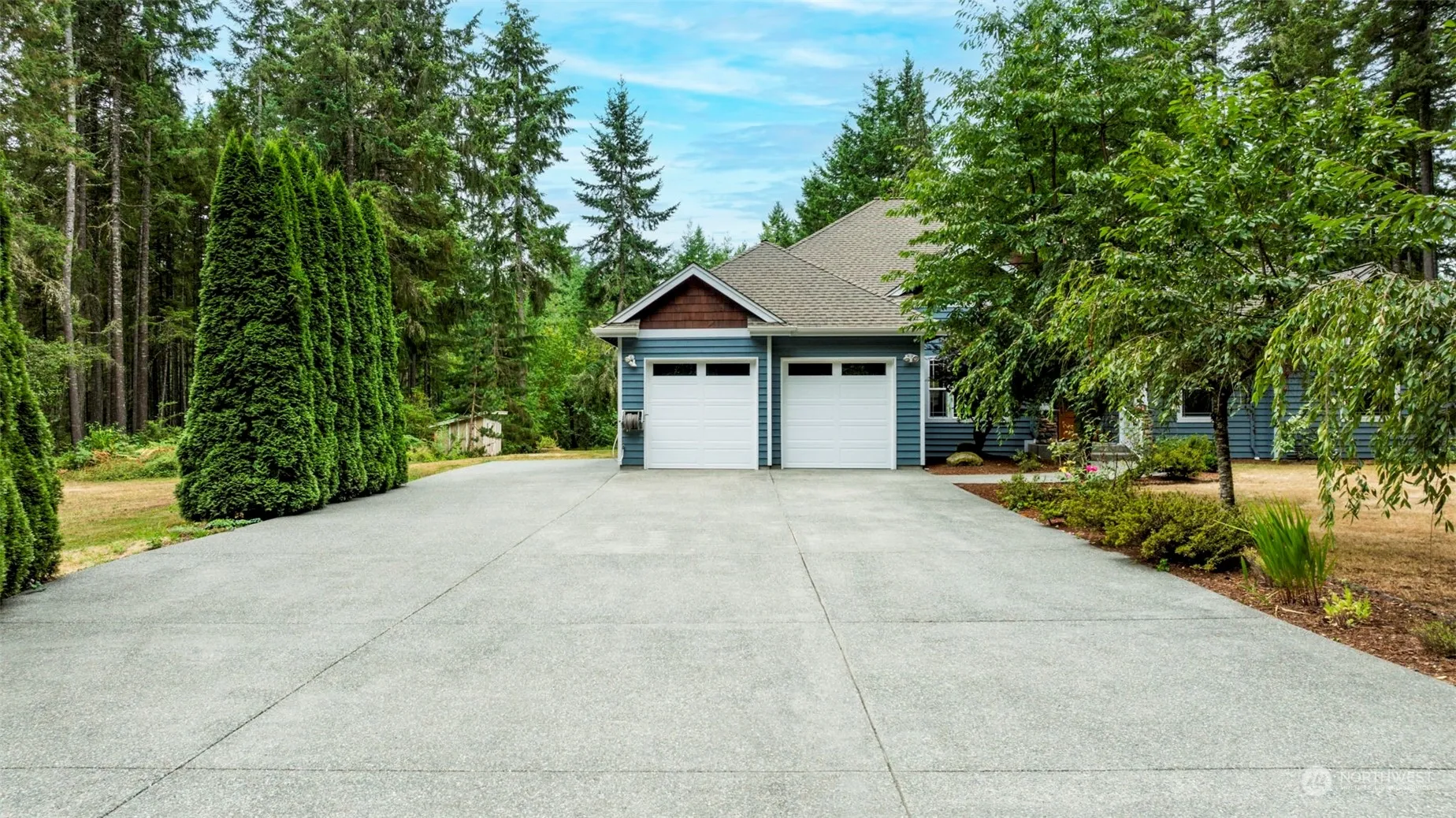 Nestled on 5 SERENE ACRES, this charming single-level home offers ultimate privacy and comfort. Conveniently located just minutes from historic downtown Poulsbo. 3 spacious bedrooms plus an office! Enjoy your mornings on the covered porch, overlooking your expansive garden space. Fruit trees too! Step into the chef’s kitchen, equipped w/ ample counter space. Custom columns add a touch of elegance & warmth to the adjacent dining room. Spacious primary suite complete w/ 5 piece bath, walk-in closet & private deck thoughtfully located on the opposite side of the home, ensuring a tranquil retreat. Heat your home this winter with the efficient pellet stove & gas fireplace. Central Vac system. Brand new carpet! There’s even space to add an ADU.
