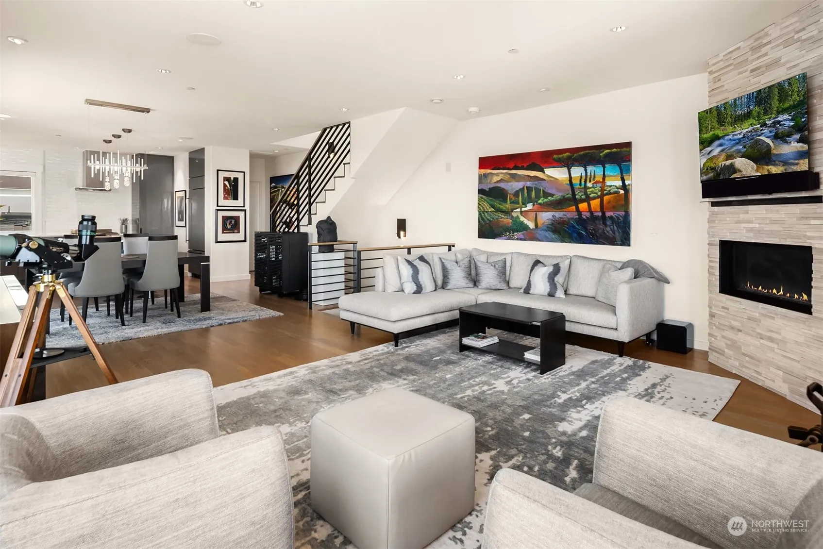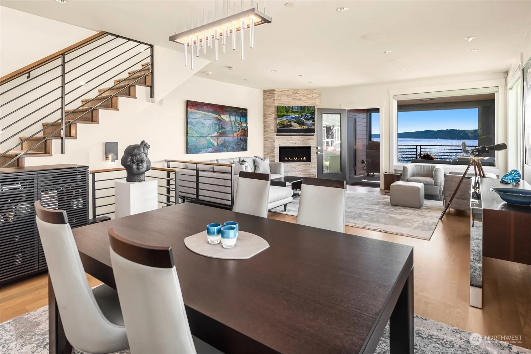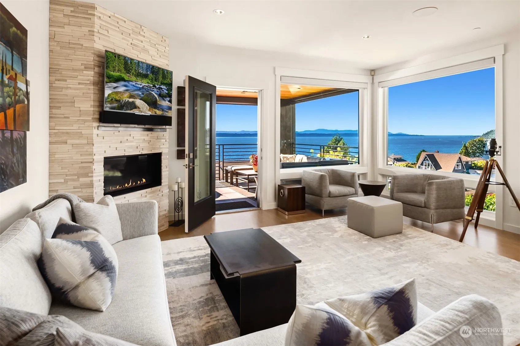 A masterpiece of elegance and modern luxury, this stunning townhome is perfectly perched to offer breathtaking views of the Sound and Olympic Mountains. With exquisite finishes, this property is a seamless blend of comfort and style throughout. The spacious layout includes a wonderful open floor plan and a gourmet kitchen with top-of-the-line appliances. Step out to any of the (3) private decks and be captivated by the panoramic views; the perfect spot for a morning coffee, dining al fresco or just relax and soak in the scenery. Rare 2+ car garage, expansive storage room, central A/C, Hunter Douglas remote shades, oak hardwoods and so much more. Nestled in a secluded and private location, this home is truly an exceptional living experience.