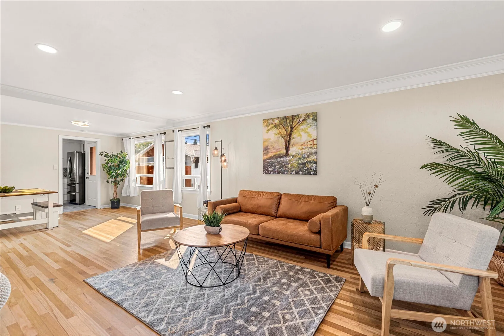 1940s charm with modern updates! Large picture windows fill the living area with natural light, highlighting hardwood floors and original hardware. Main level features 2 nicely sized bedrooms and a full bath with tile shower, newer tub, and updated vanity. Kitchen is light, bright, and moderately updated. Updates include newer electrical, fresh exterior paint, and more. Lower level offers a flexible space with a closet and large windows—perfect as a family room or 3rd bedroom—plus ¾ bath and laundry. Fully fenced backyard with garden beds and adorable curb appeal. Pre-inspection with repairs available.