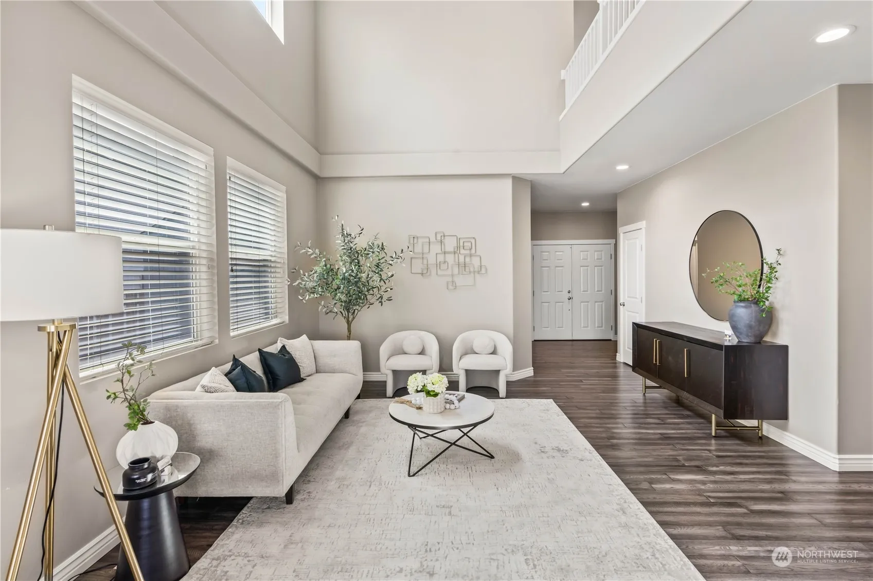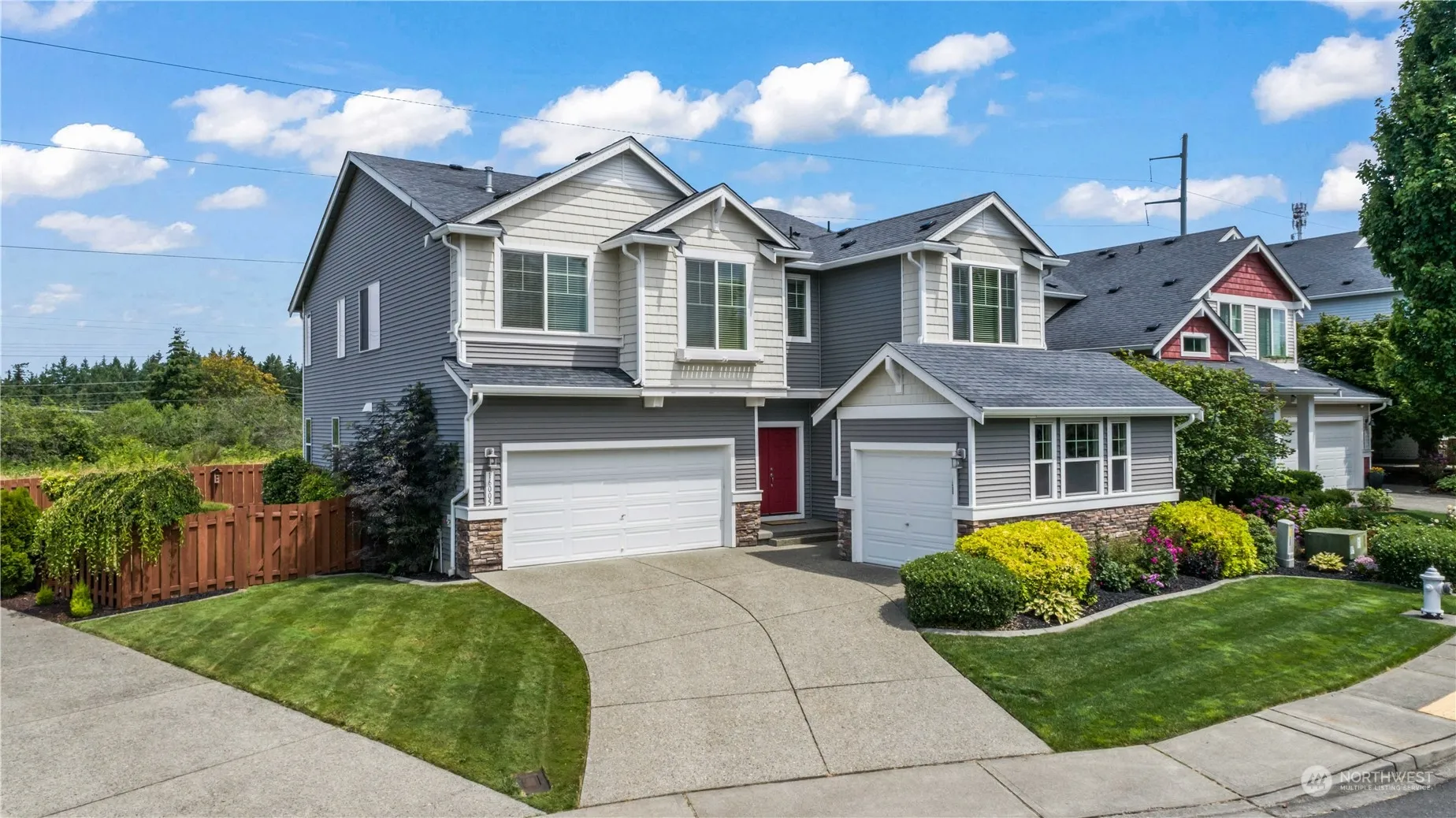 Seize the chance to own this stunning SMART HOUSE in the sought-after neighborhood of The Estates! This spacious home features 5 bedrooms, including a main-floor bedroom ideal for multi-generational living. The primary suite offers 2 walk-in closets and a luxurious 5-piece ensuite. Enjoy updated bathrooms with quartz countertops. The main floor impresses with hickory hardwoods, custom built-ins, and a cozy gas fireplace. Embrace modern living with smart switches, outlets, and Alexa-connected appliances. Recent upgrades include newer appliances and a hot water heater. Relish the maintenance-free yard with a drip system and a 5 zone sprinkler system. Enjoy amazing views and sunsets! Electric car charging port & close to Lakeland town center!