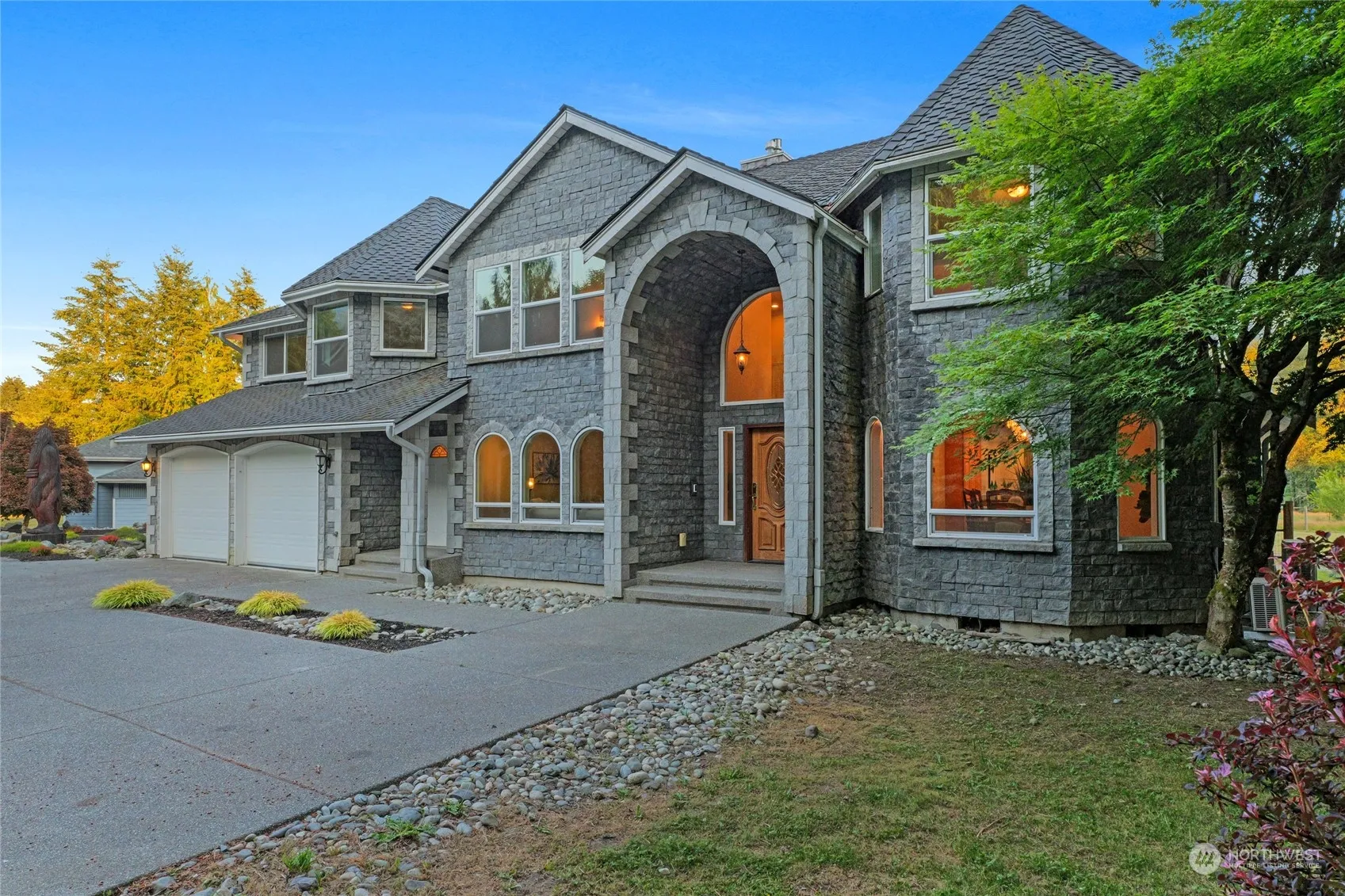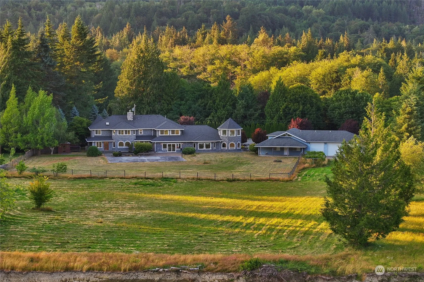 Experience the tranquility & beauty of the North Fork Stillaguamish River living in this exceptional home. Stunning riverfront house nestled on 5.6 acres of land offers the perfect blend of comfort & nature with a breathtaking view of the Cascade mountains. This property boasts a separate dwelling area for added versatility with an additional 3 bay garage good for an RV, hobbies, storage & enough total covered parking for 12 or more cars. Charm from this custom-built home w/ stone is complete with a turret that adds a touch of elegant whimsy. So many features to love, like an outdoor cedar steam sauna, gourmet kitchen w/ upgraded appliances, & expansive great room. Don’t miss the chance to make this dream retreat your own!