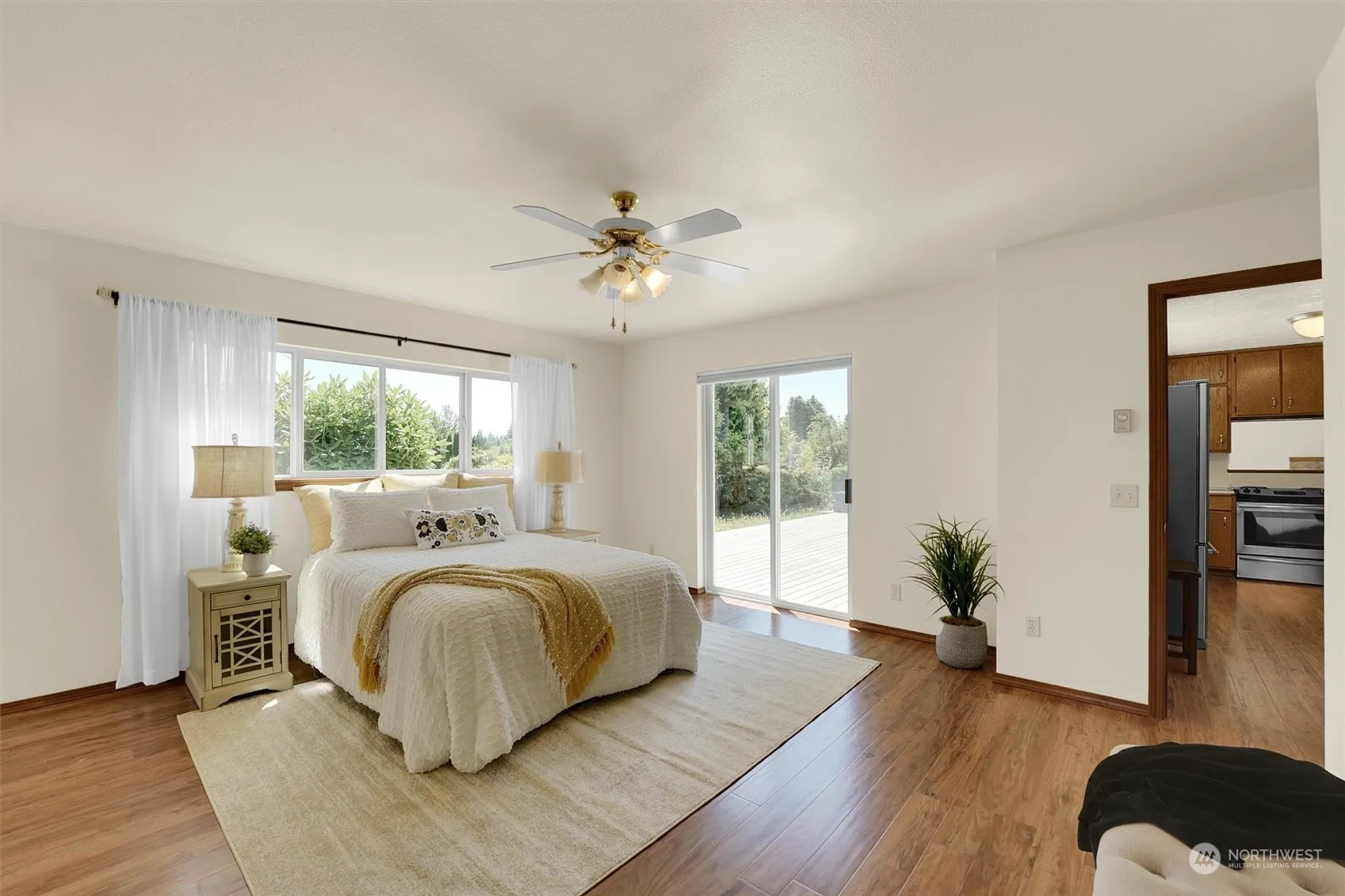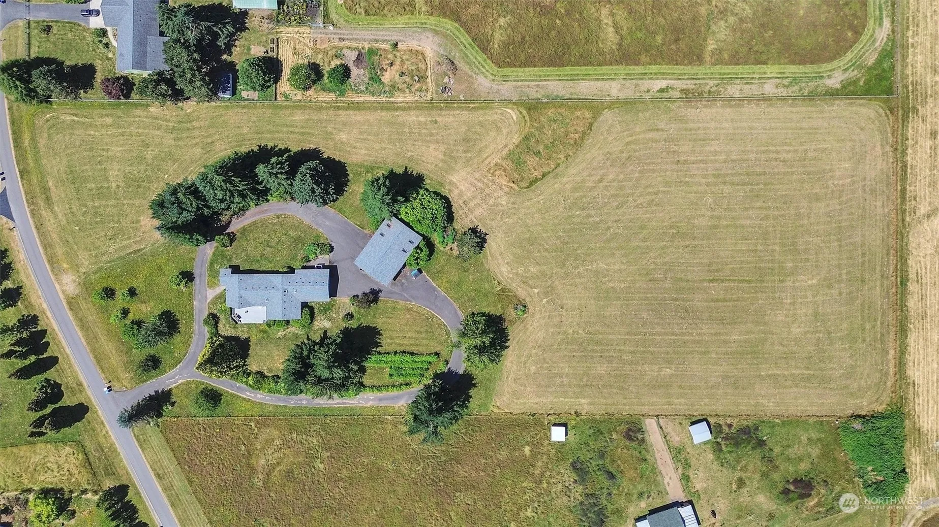 Listing agent is related to Owner Property has 5 level acres in a secluded area in Rochester. This 3 bedroom, 2 bath rambler has a large shop & two bay drive-thru RV storage & dump tank. The home has new flooring, new paint inside & out. There is a circular asphalt driveway. There is a one car attached garage with an adjacent cedar-lined sauna with a shower & a sink & toilet. Both neighboring properties are horse properties. The home next door recently sold for $785,000. The spacious primary bedroom has its own sitting area, a walk-in closet & a full bath with access to the deck. The big living room has a pitched ceiling. The kitchen has plenty of storage and a pantry. Outside there is an orchard with apple, pear & grapes for wine.