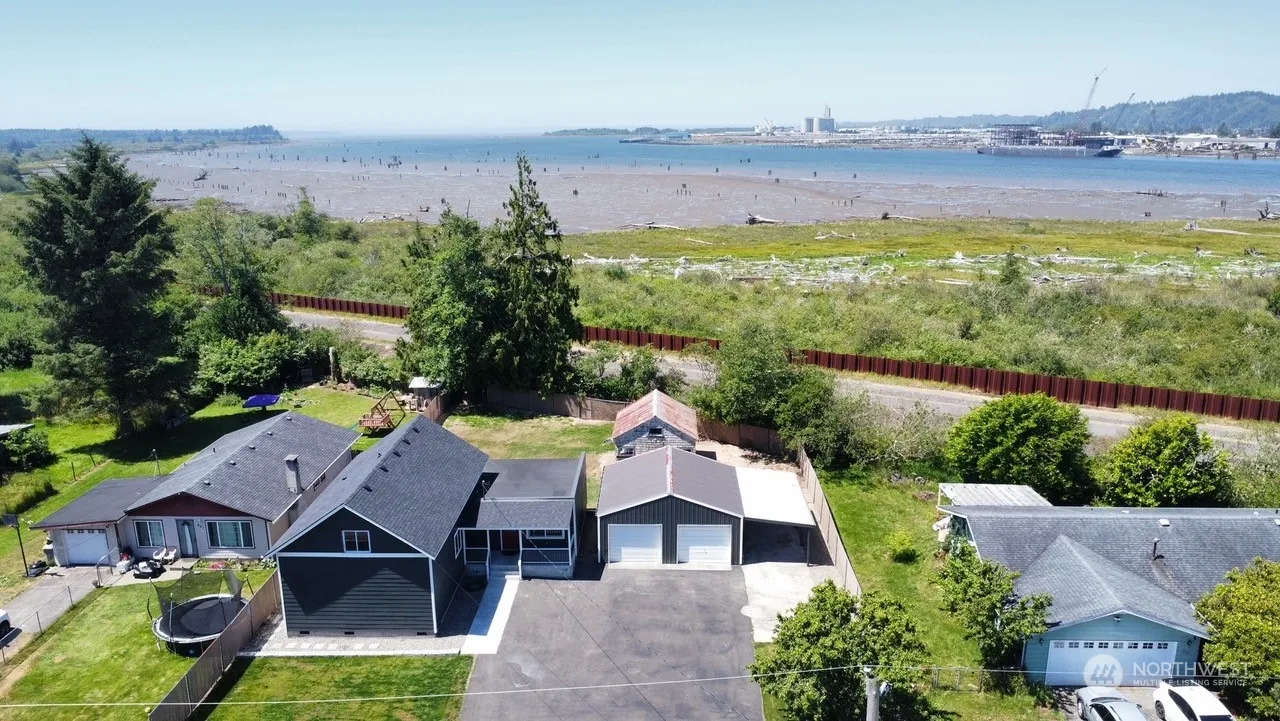 This beautifully remodeled to-the-stud home is like brand new, with over 2,000 sq ft of living space on 12,240 sq ft lot in the up-and-coming Finch Farms neighborhood, backing to the Chehalis River Trail. New gourmet kitchen with a large island, white shaker cabinets, quartz counters. French doors lead to a new deck and fenced yard. Main floor includes a 3/4 bath, two bedrooms, including the primary suite with full bath and walk-in closet. Upstairs, two spacious bedrooms, a bonus space ideal for a playroom or office, along with a half bath. A two-bay shop and carport, ample driveway space for RV parking and more. A fully remodeled home with a new roof, siding, foundation, electrical, plumbing, drywall, flooring, cabinets, and fixtures.