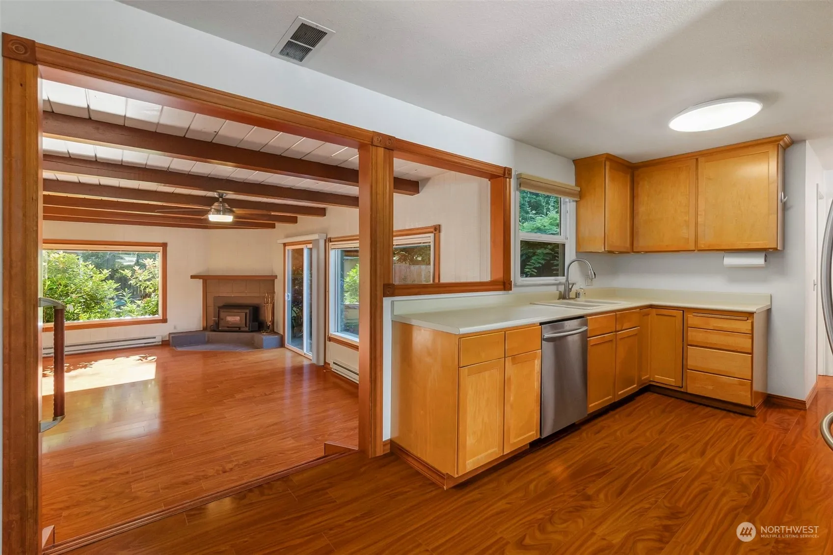 This home has all the quintessential downtown Olympia character you could want! Big window for lots of light, custom wood trim adds unique details to the archway leading from the open-concept kitchen, formal dining and living rooms. Large exposed beams accentuate the living room and fireplace, leading to the fully fenced yard with mature fruit trees and low maintenance upkeep. This 4 bedroom home is move-in ready and great for multigenerational living (easily could make it two separate wings!), adding home office spaces, and ripe for your personal touches to create your forever home! A 5-minute drive to the freeway, and just minutes from a great local community market space with restaurants and fresh produce.