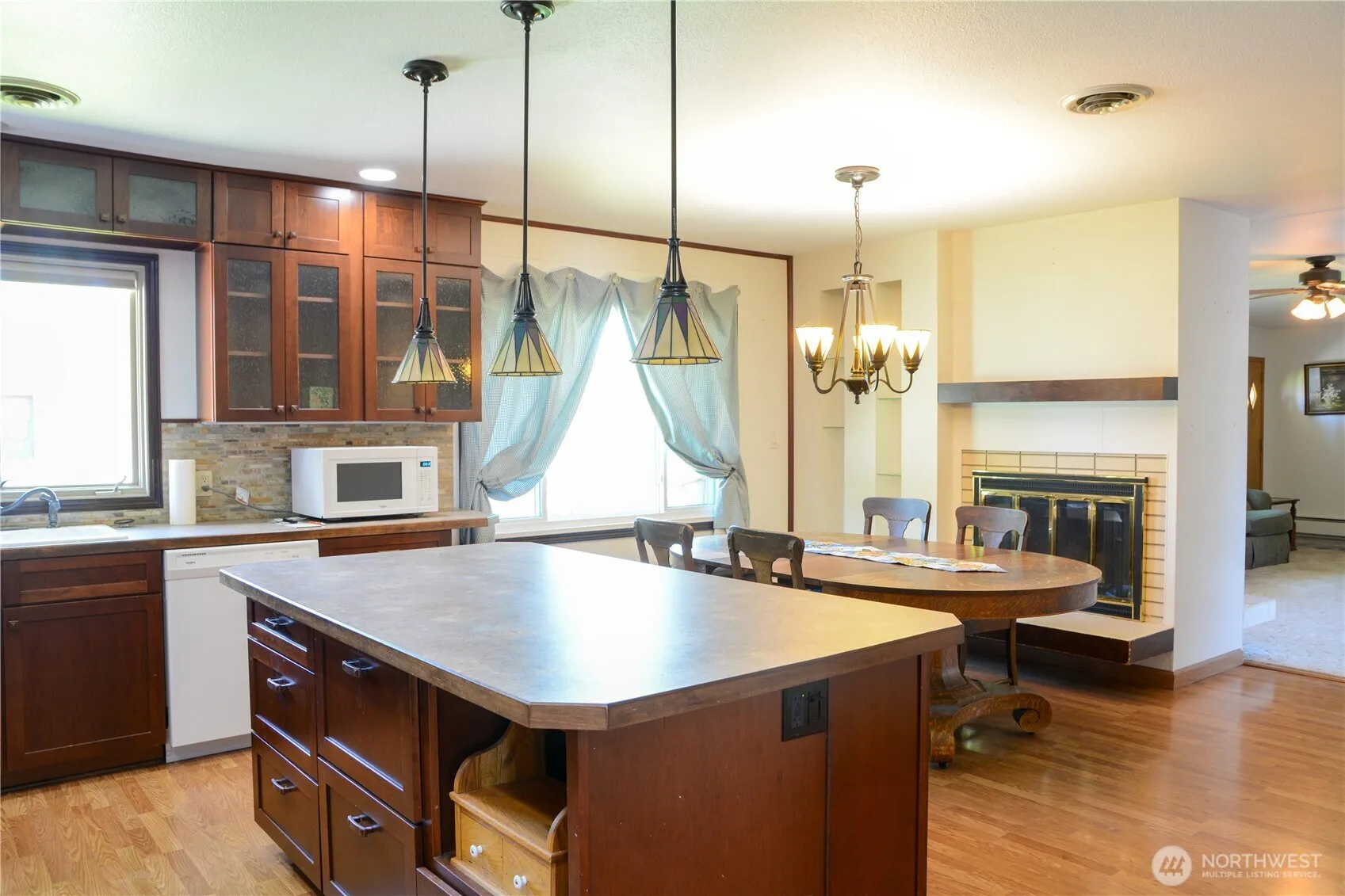 Lots of room in this 3 plus 3 bath home. Custom Kitchen in 2007. New heat pump in 2008. Additional bed/office upstairs. 3/4 bath off of the primary bathroom. Laundry is upstairs. Tons of storage. Wood Fireplace upstairs and downstairs. French doors out to the covered deck with a large nicely landscaped yard. 3 lots total. Attached double car garage and a 27×40 shop. Wet bar and large rec room downstairs. Some updated windows. Quiet part of town.