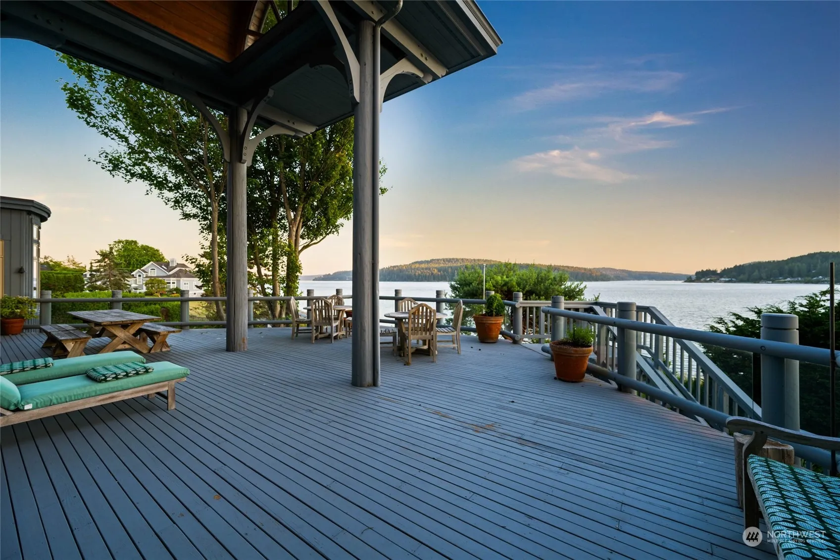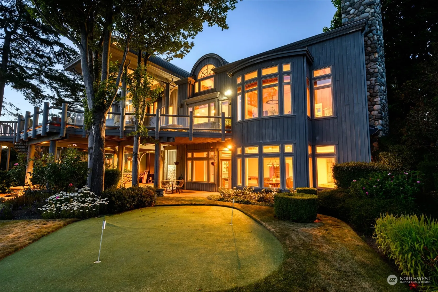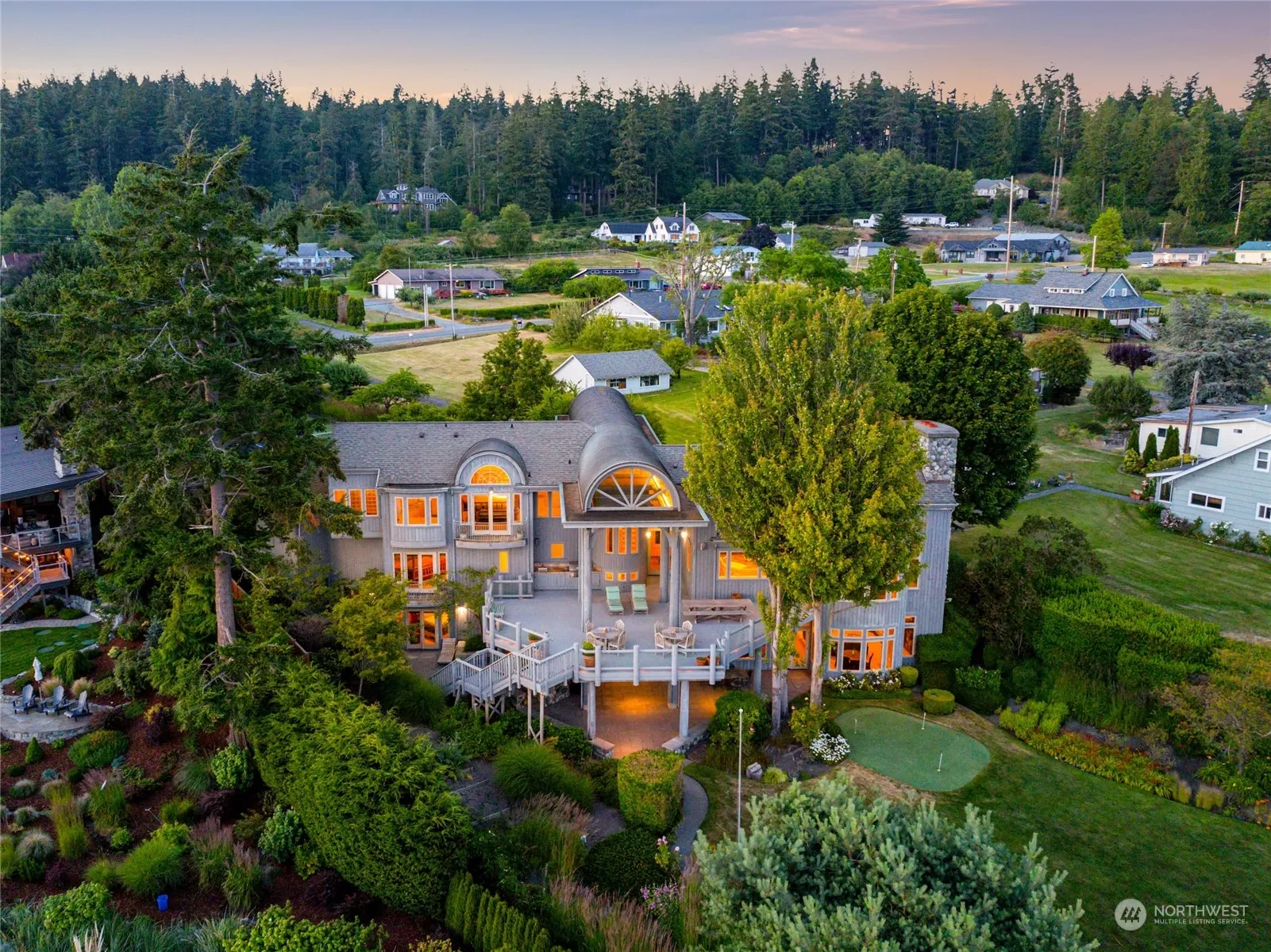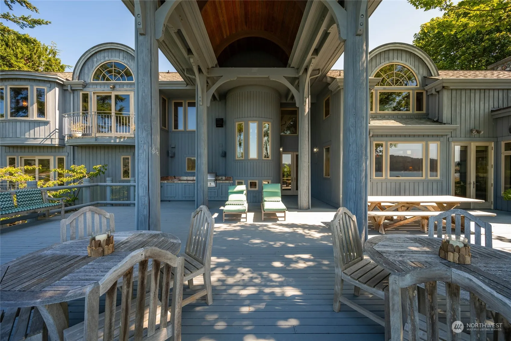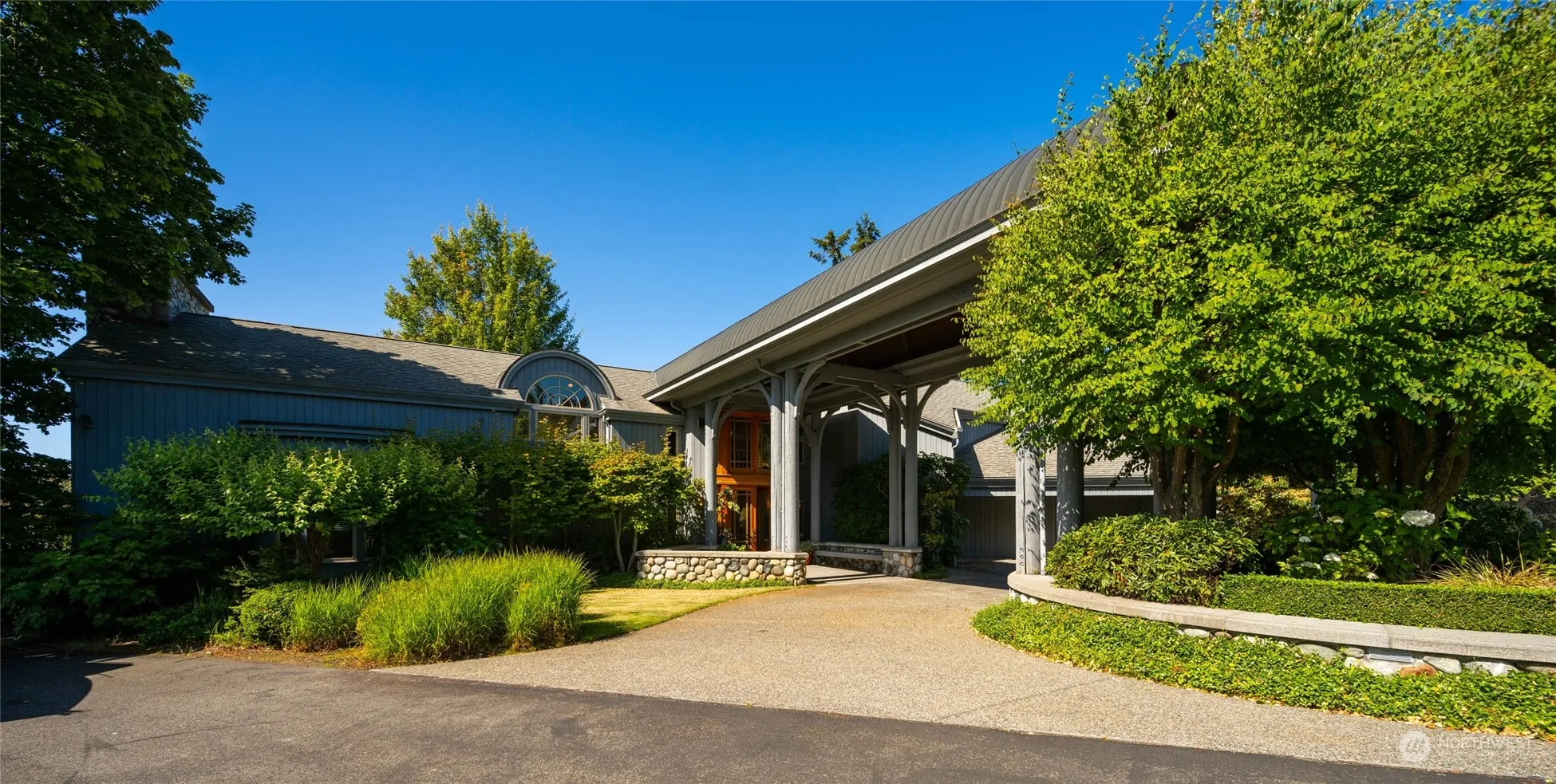 Discover the quintessential Pacific Northwest luxury beach retreat on the Bay. This expansive property features soaring beamed ceilings that start outside & carry to the inside. A magnificent massive fireplace in the main living area creates a warm & inviting atmosphere of rustic charm & elegance. The spacious lower level recreation room & stunning wine cellar offer more space for relaxing & entertaining. The outdoor amenities are endless with a tennis/pickleball court, putting green, fire pit and a voluminous deck with built-in outdoor kitchen. The 143 feet of beachfront is perfect for relaxing, heading out for a paddle, or building beach forts with the driftwood. Create cherished memories for decades to come in this one of a kind estate.